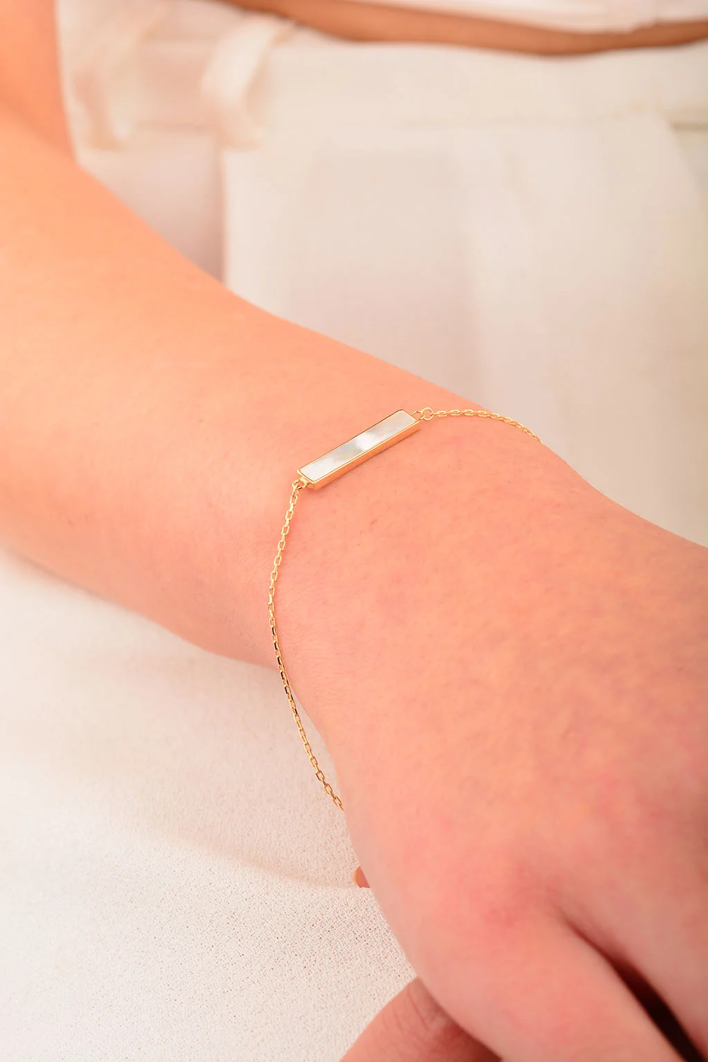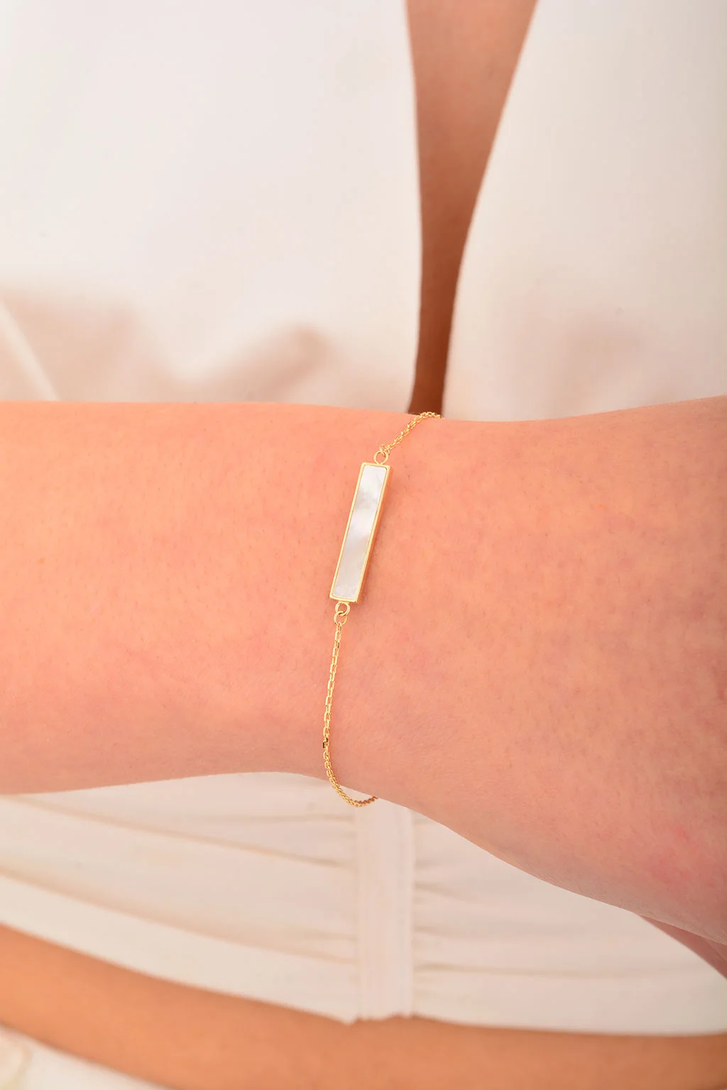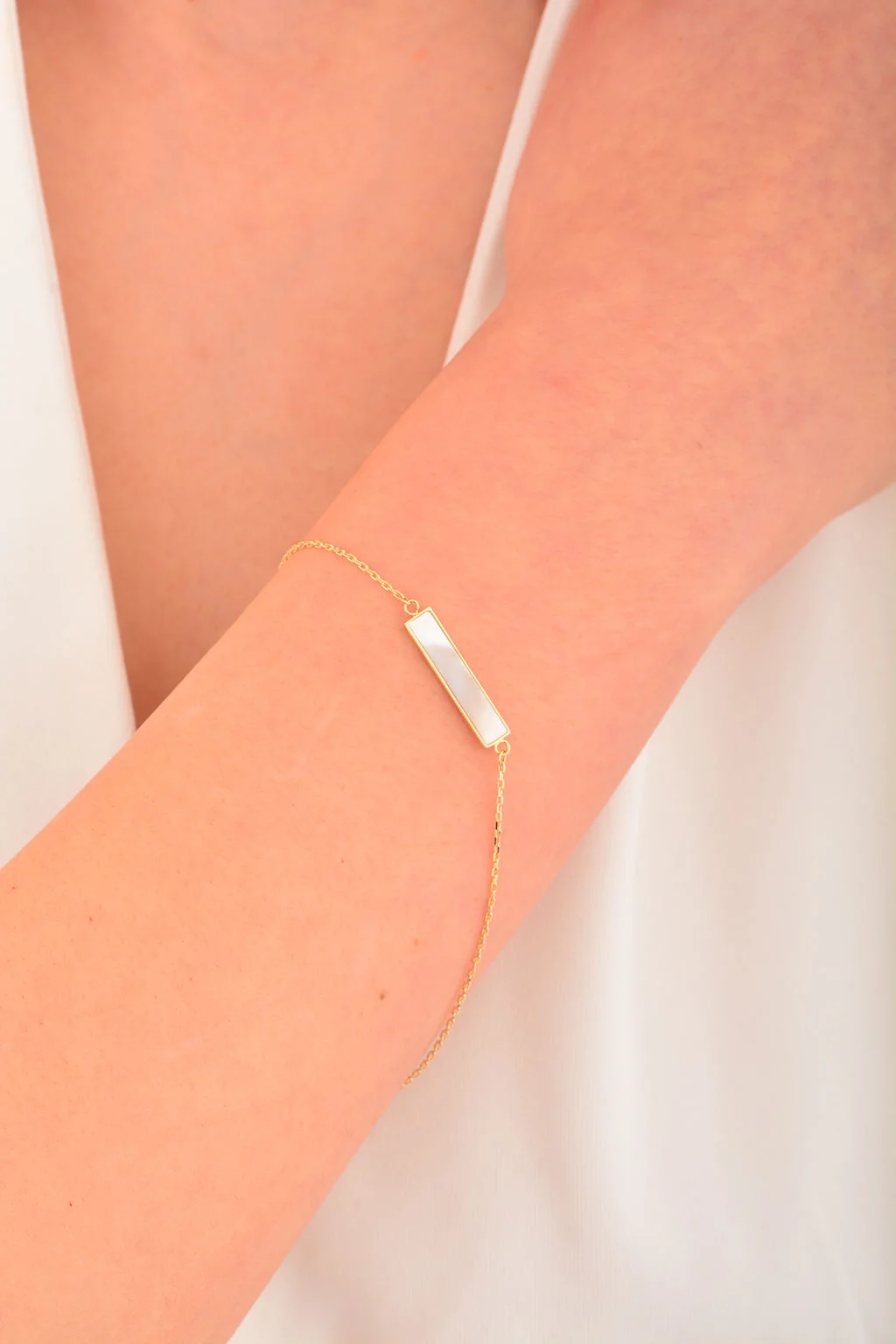 Cebeci 14 Ayar Beyaz Sedefli Altın Bileklik