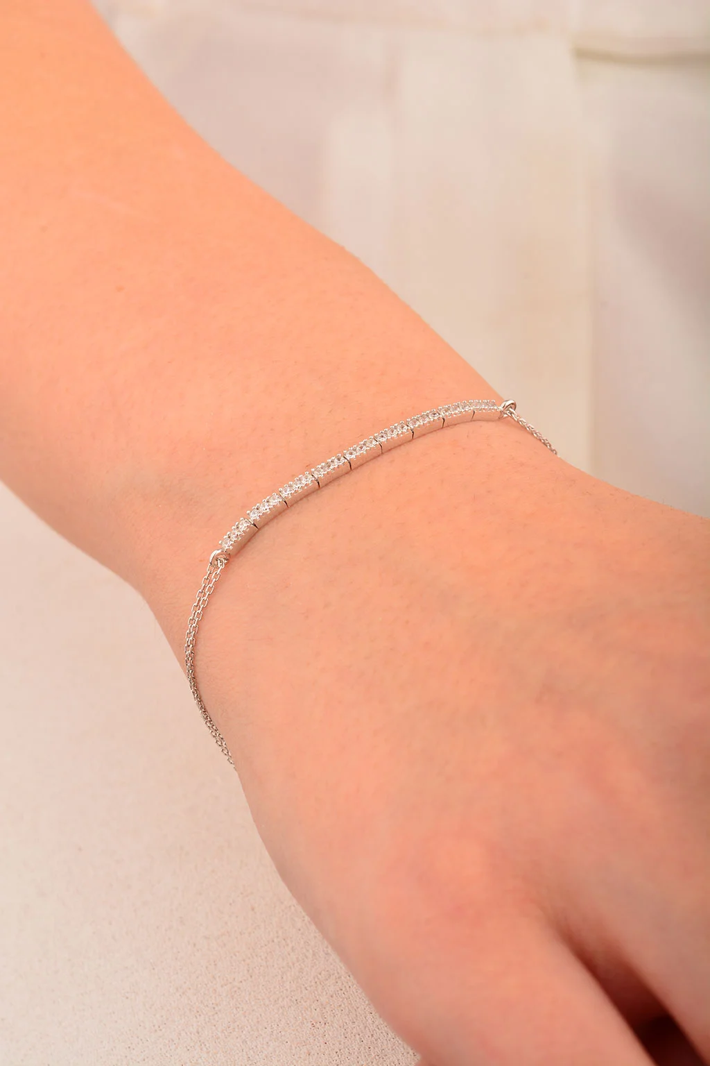 Cebeci 14 Ayar Beyaz Altın Sırataşlı Altın Bileklik