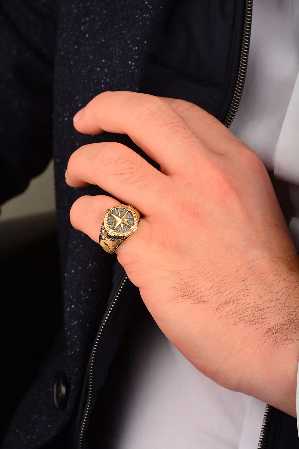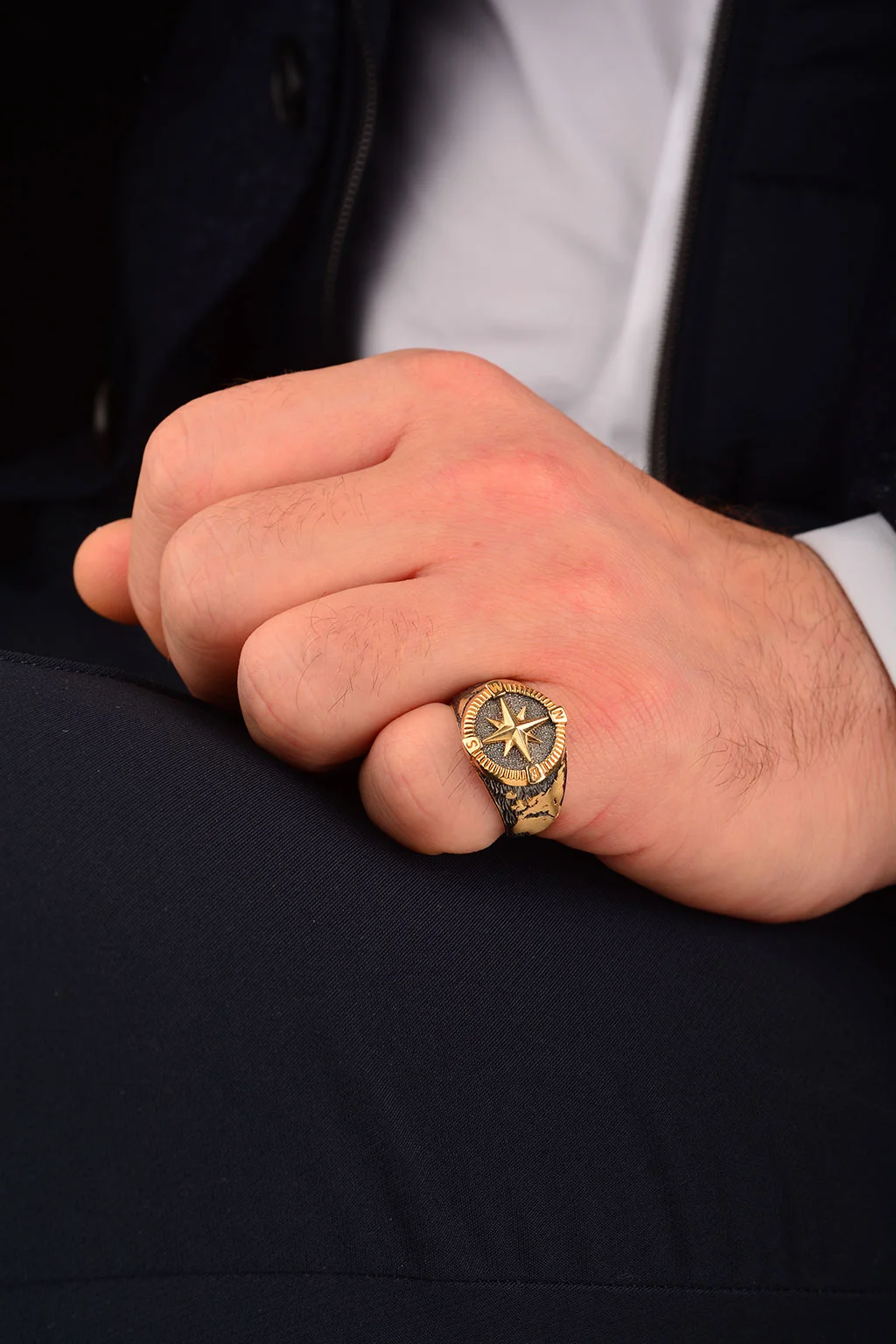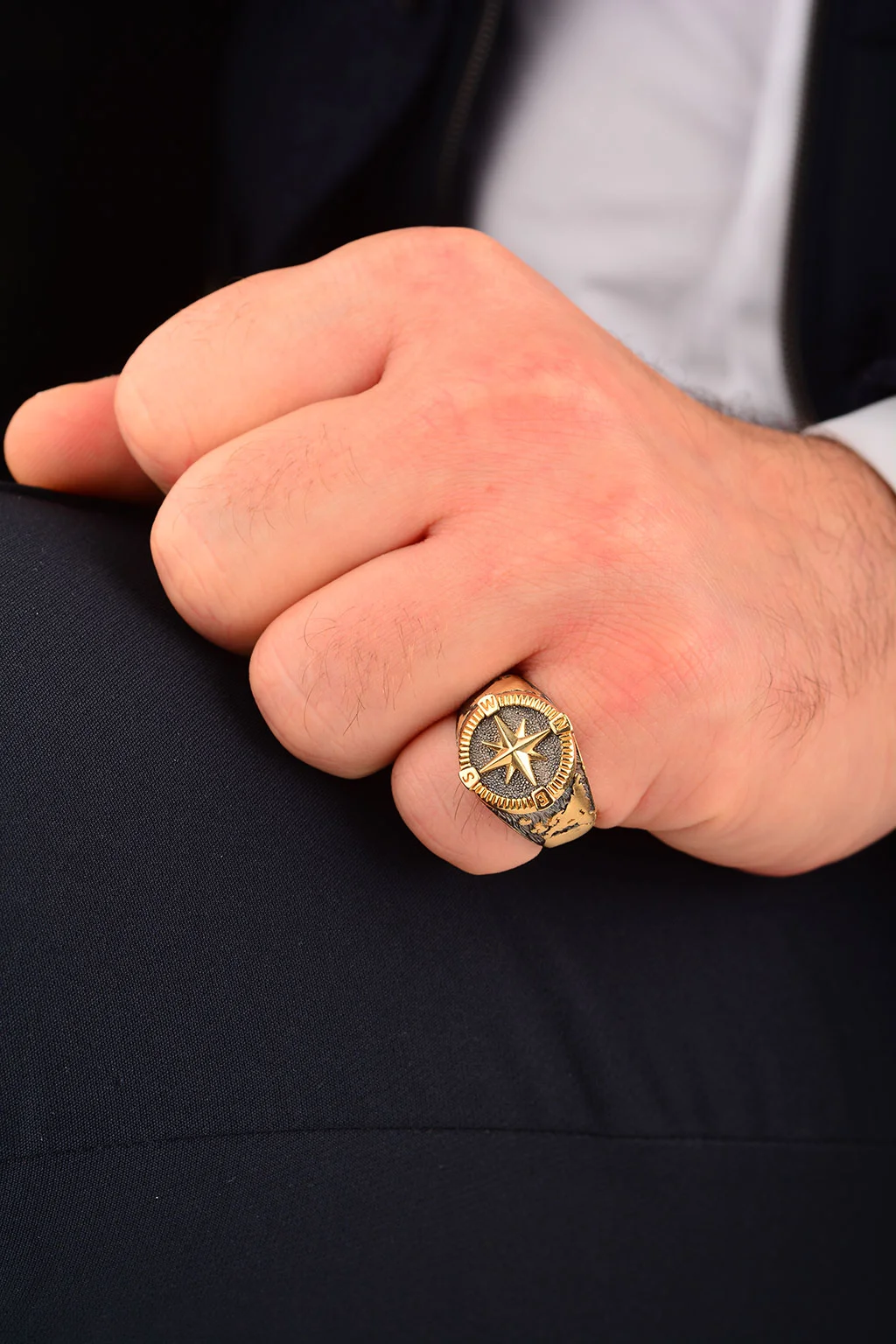 Cebeci 14 Ayar Pusula Erkek Altın Yüzük