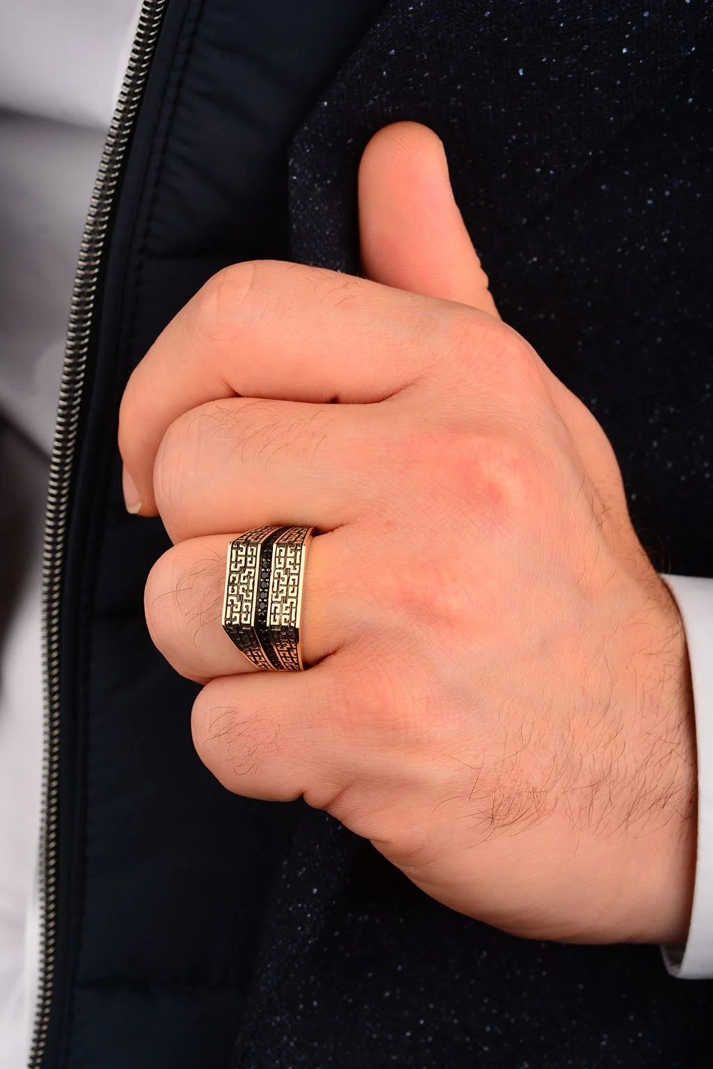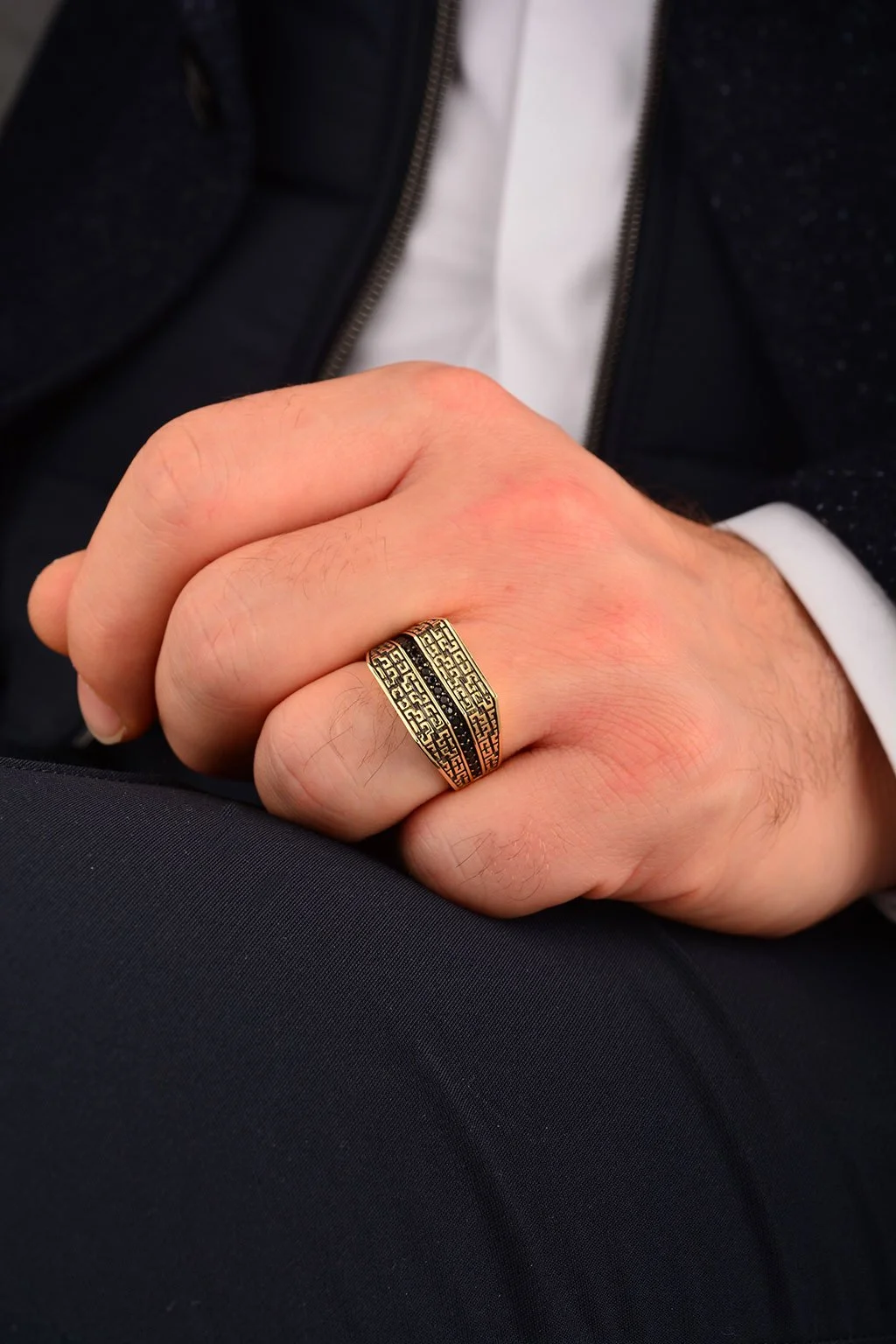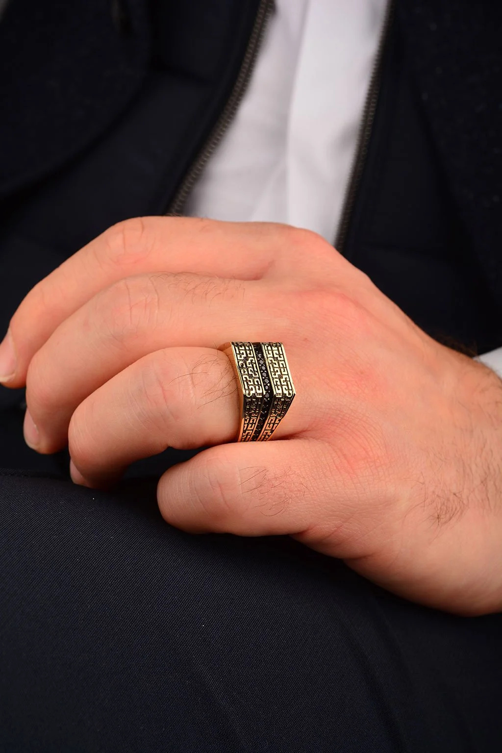 Cebeci 14 Ayar Siyah Taşlı Kare Altın Yüzük
