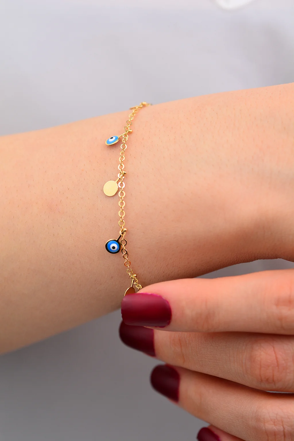 Cebeci 14 Ayar Göz Boncuklu Altın Bileklik