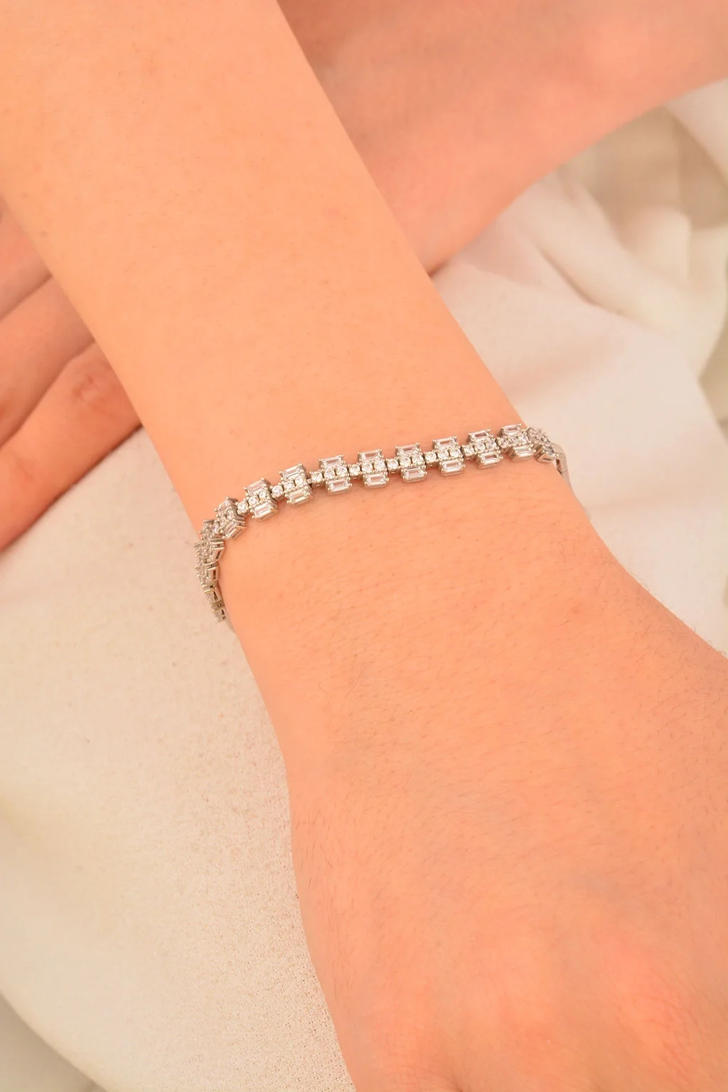 Cebeci 14 Ayar Kare Taşlı Altın Bileklik