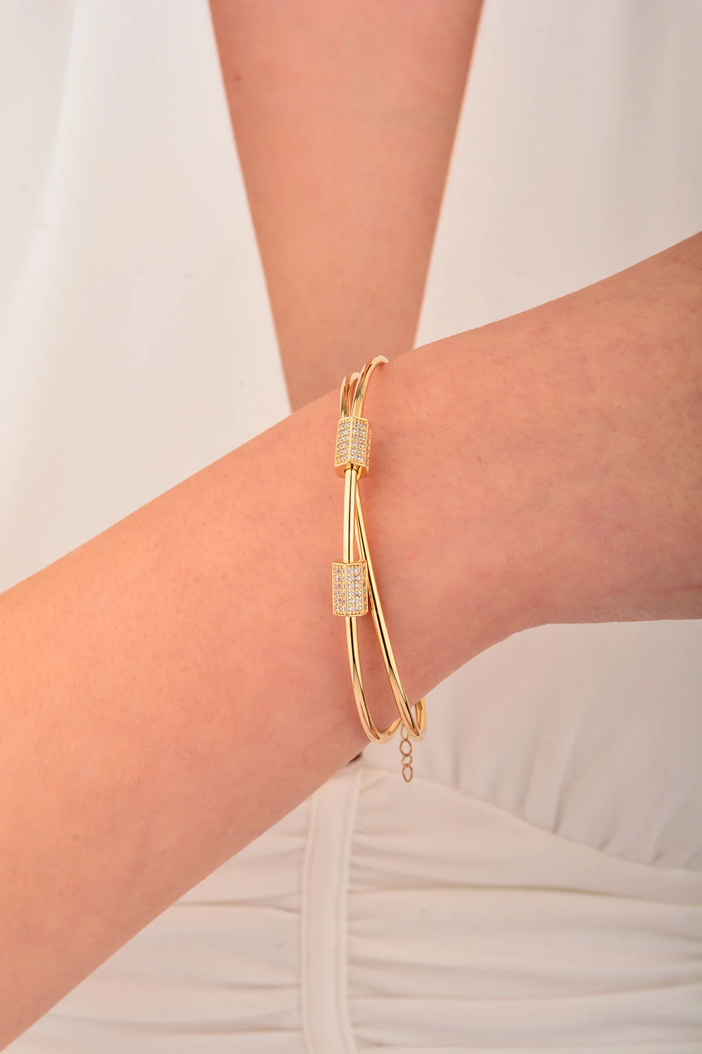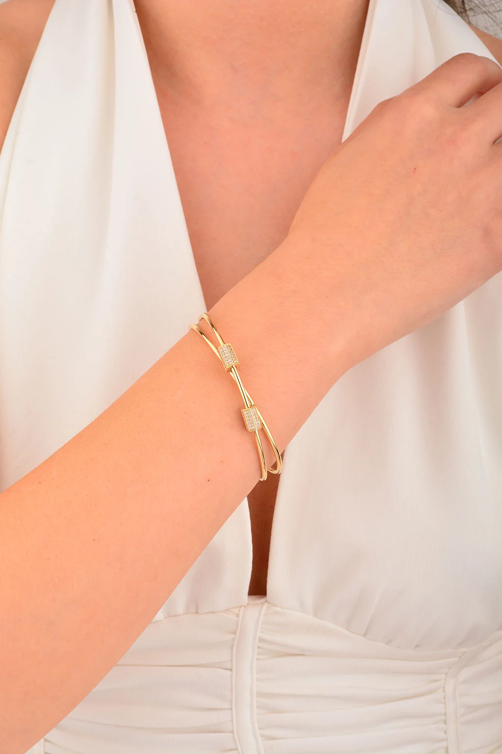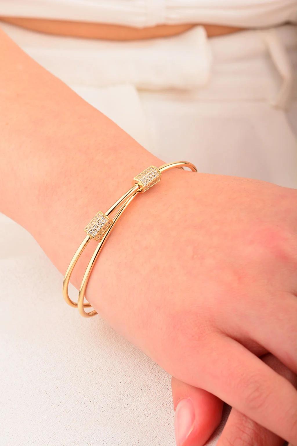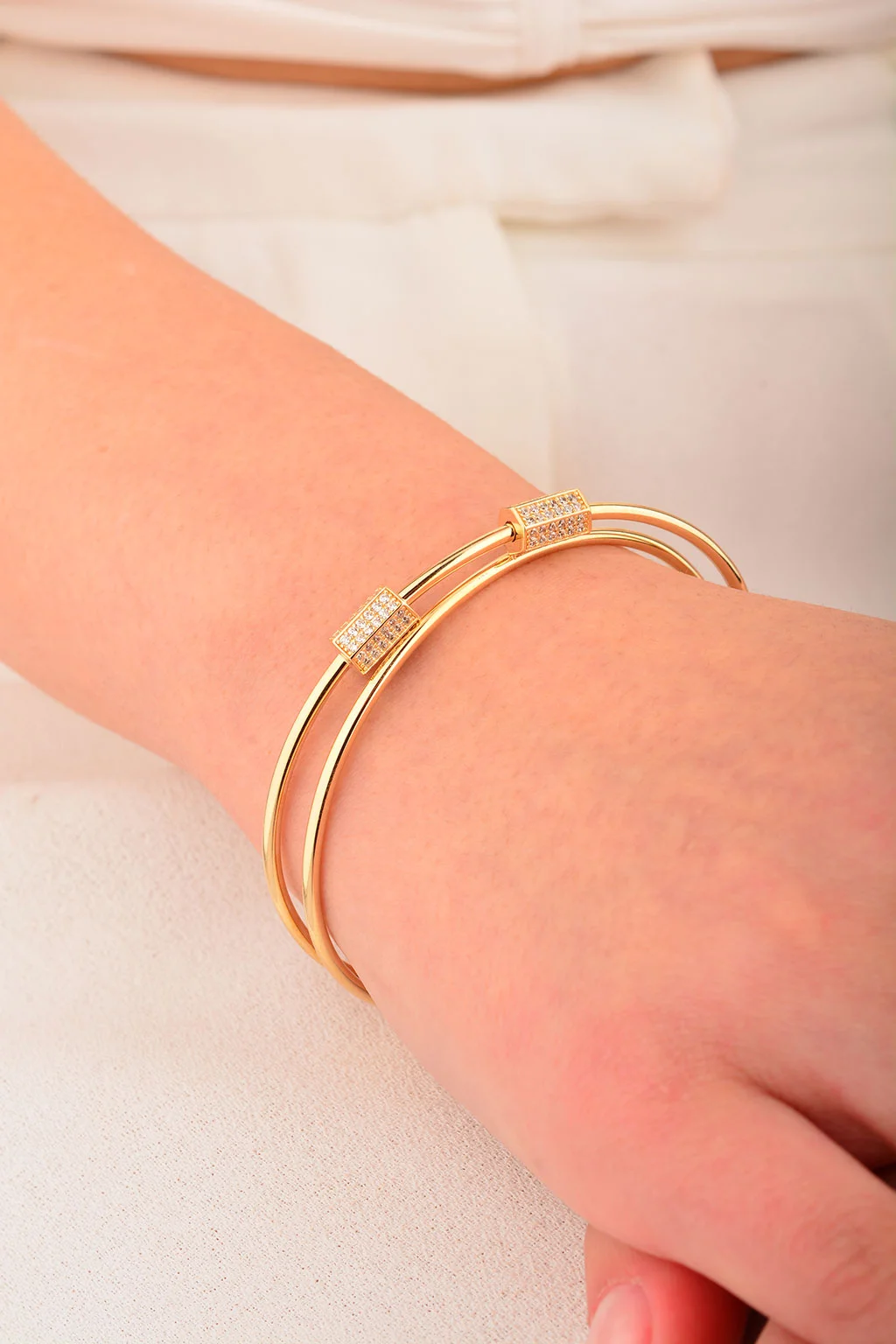 Cebeci 14 Ayar Taşlı Altın Çift Bilezik