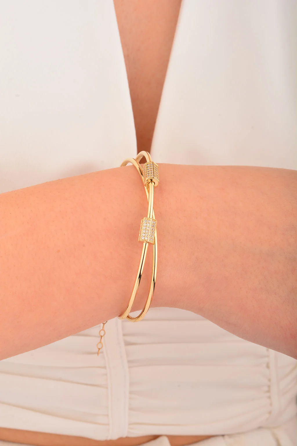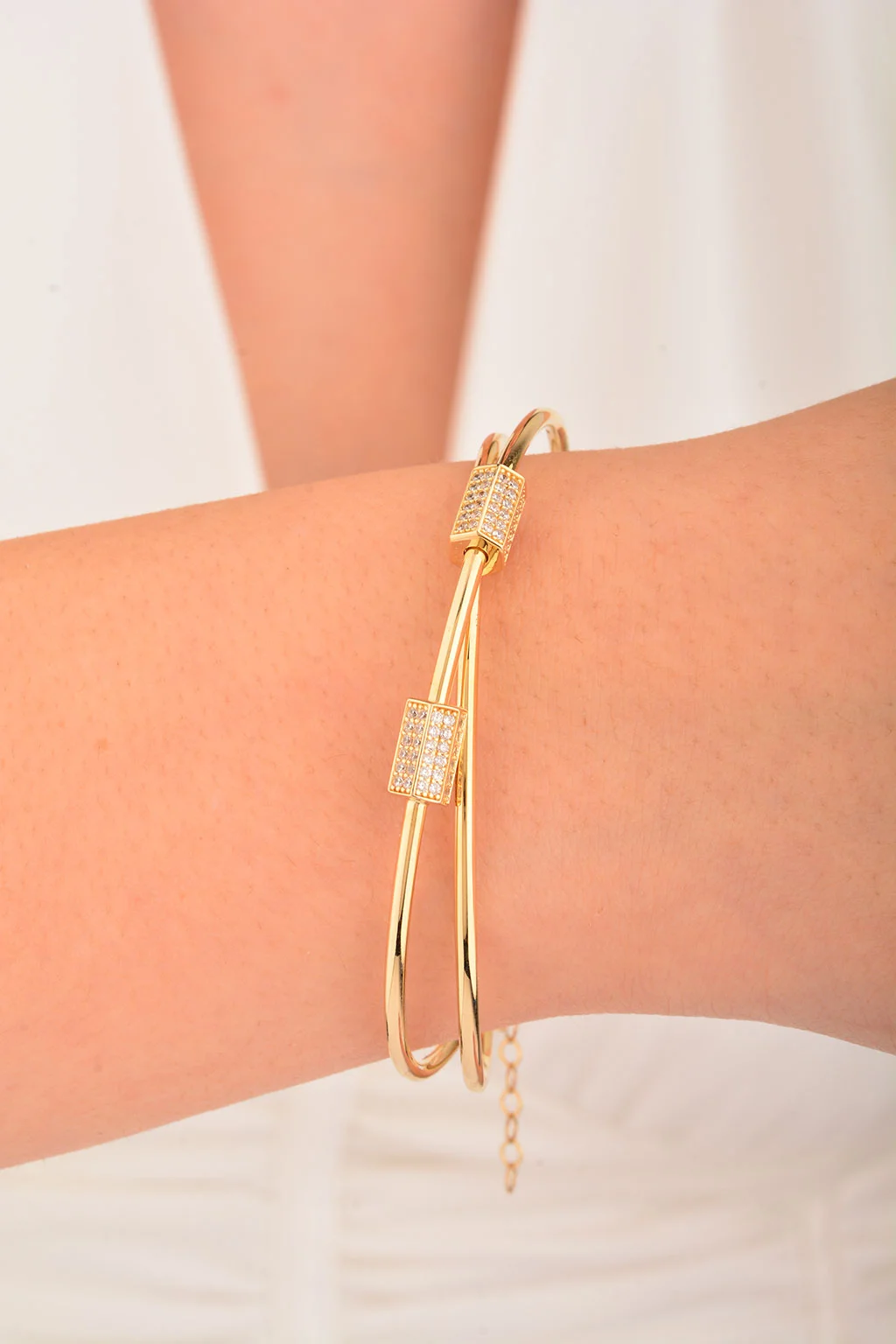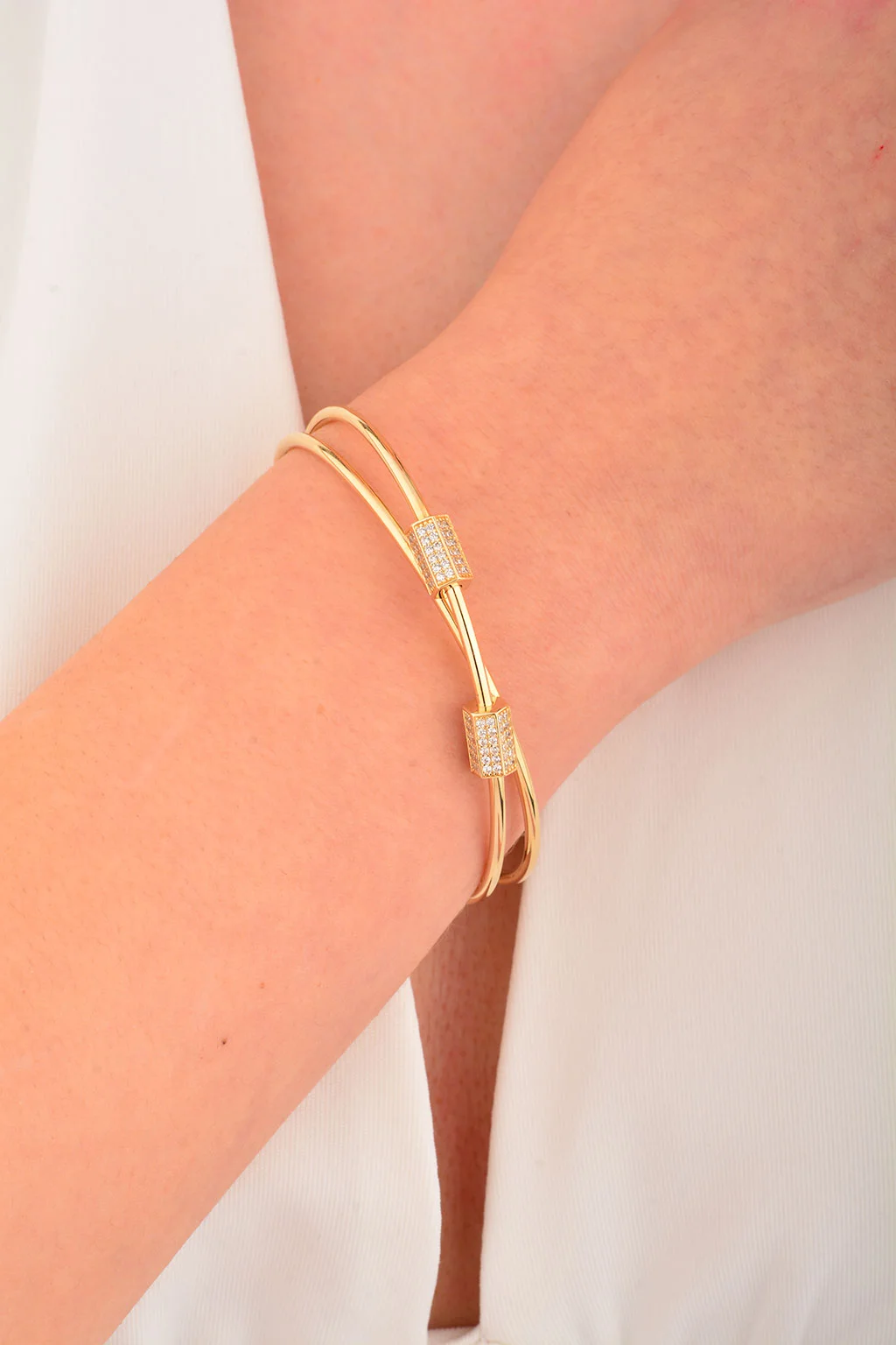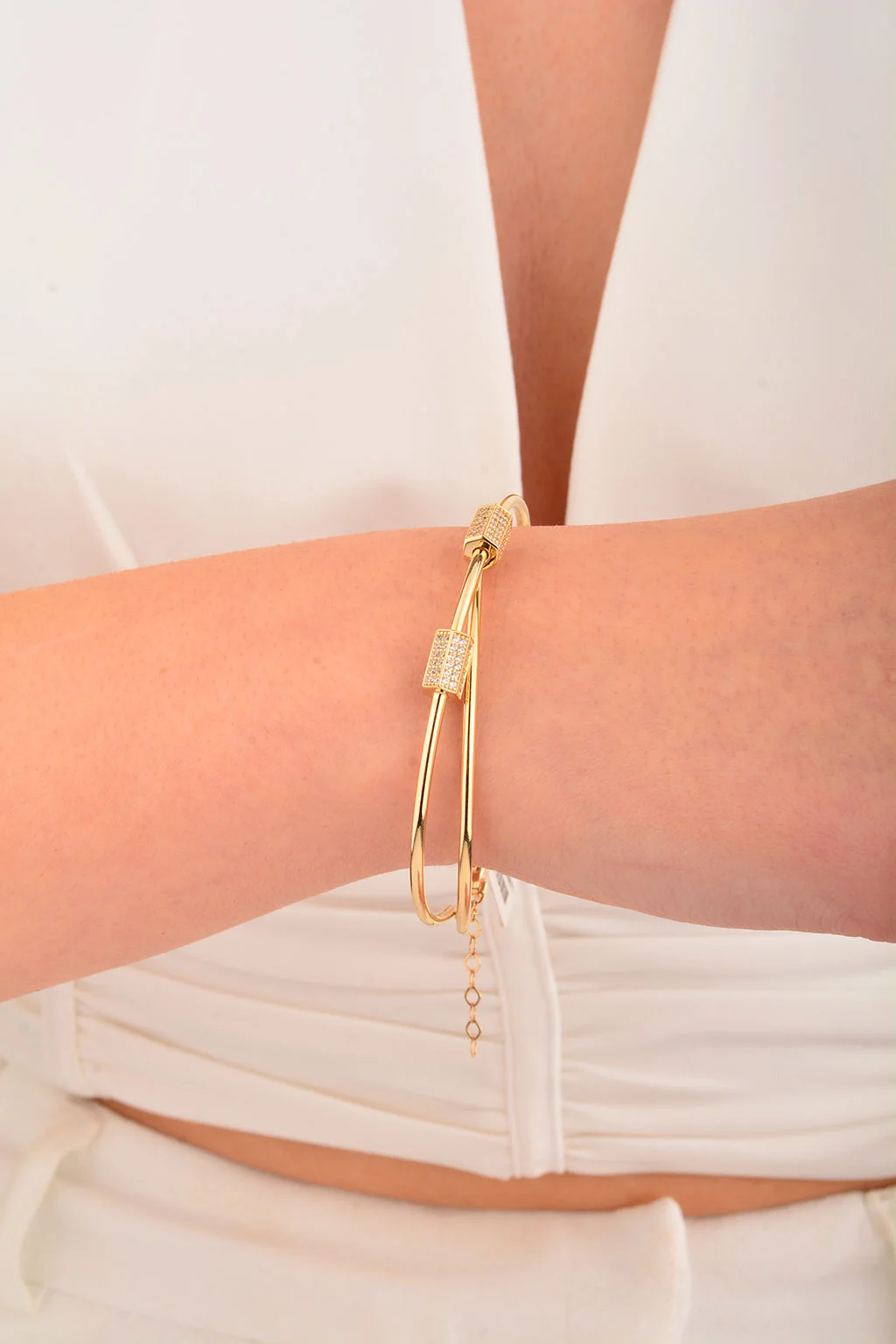Cebeci 14 Ayar Taşlı Altın Çift Bilezik