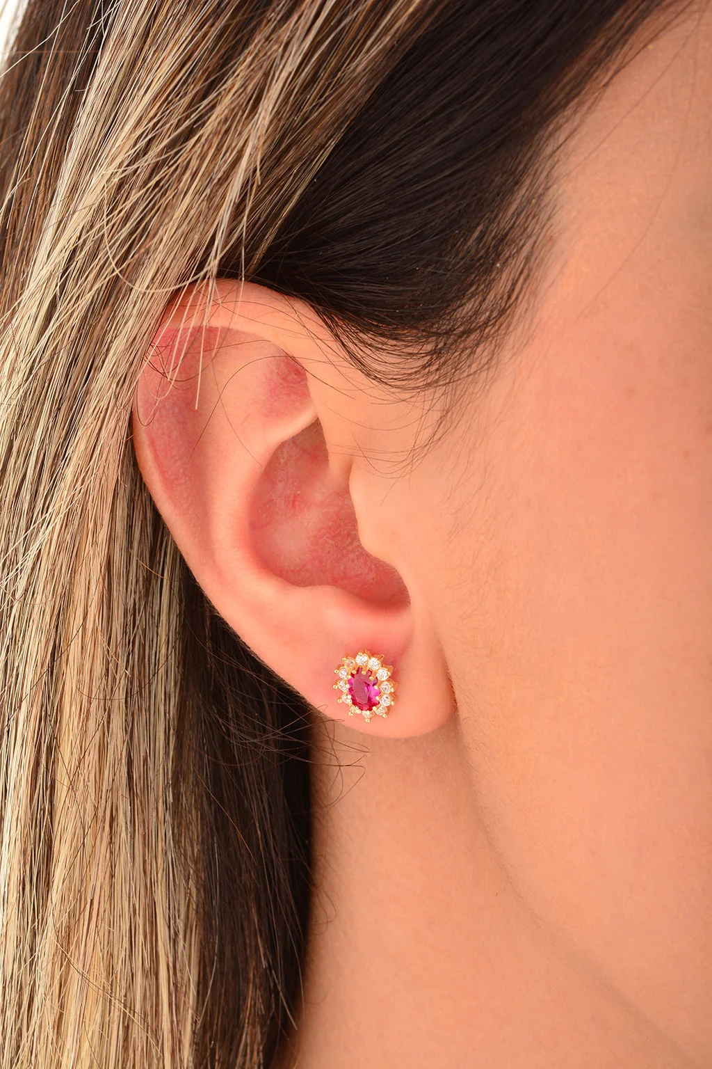 Cebeci 14 Ayar Renkli Taşlı Altın Küpe