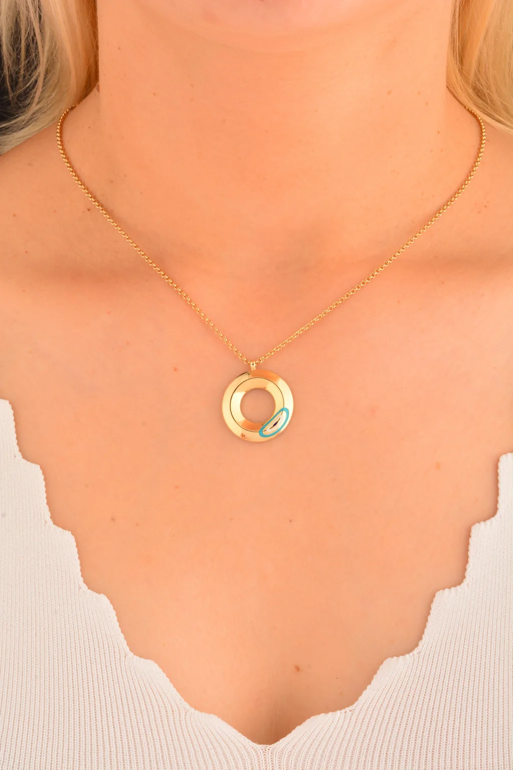 Cebeci 14 Ayar Plaka Göz Halka Altın Kolye