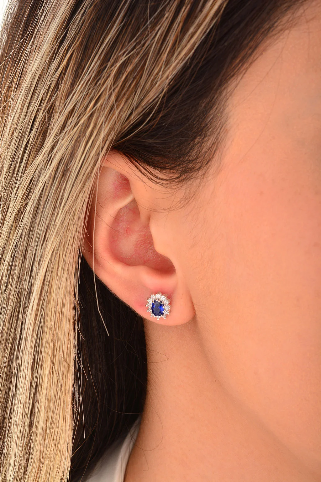 Cebeci 14 Ayar Lacivert Taşlı Altın Küpe