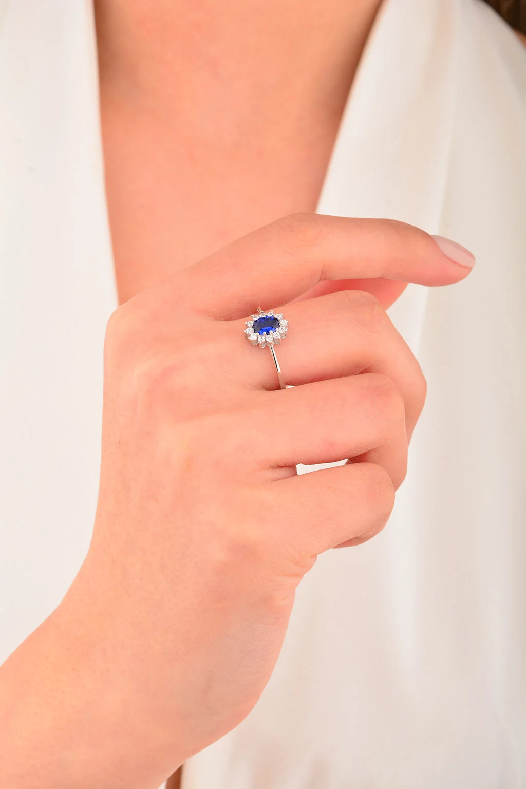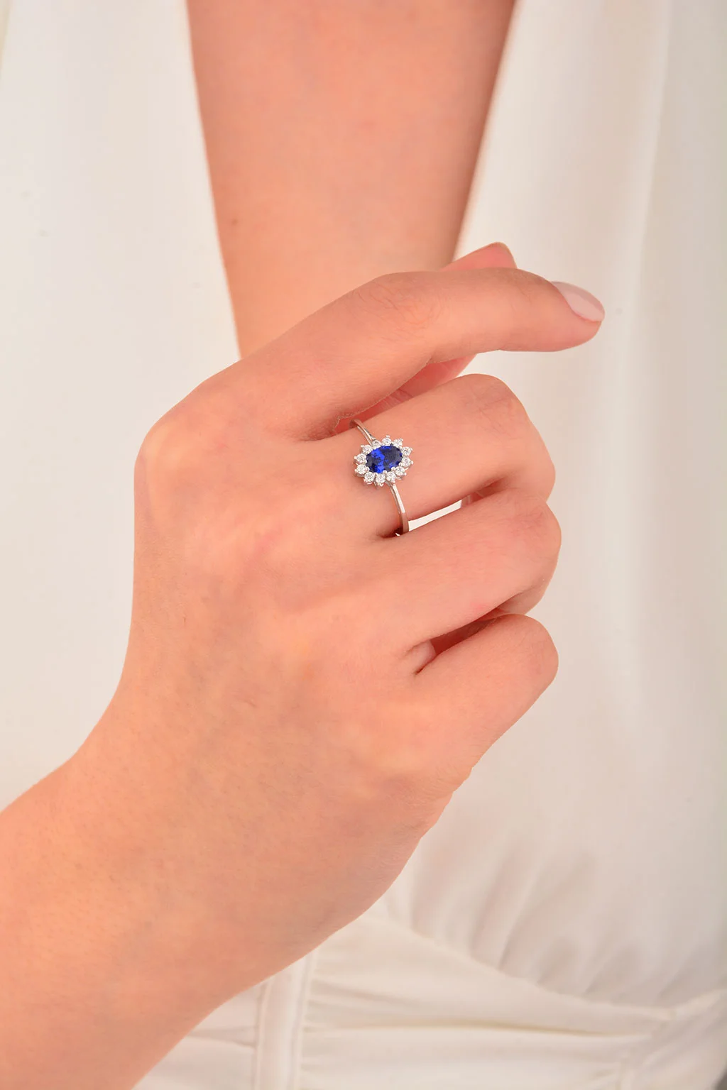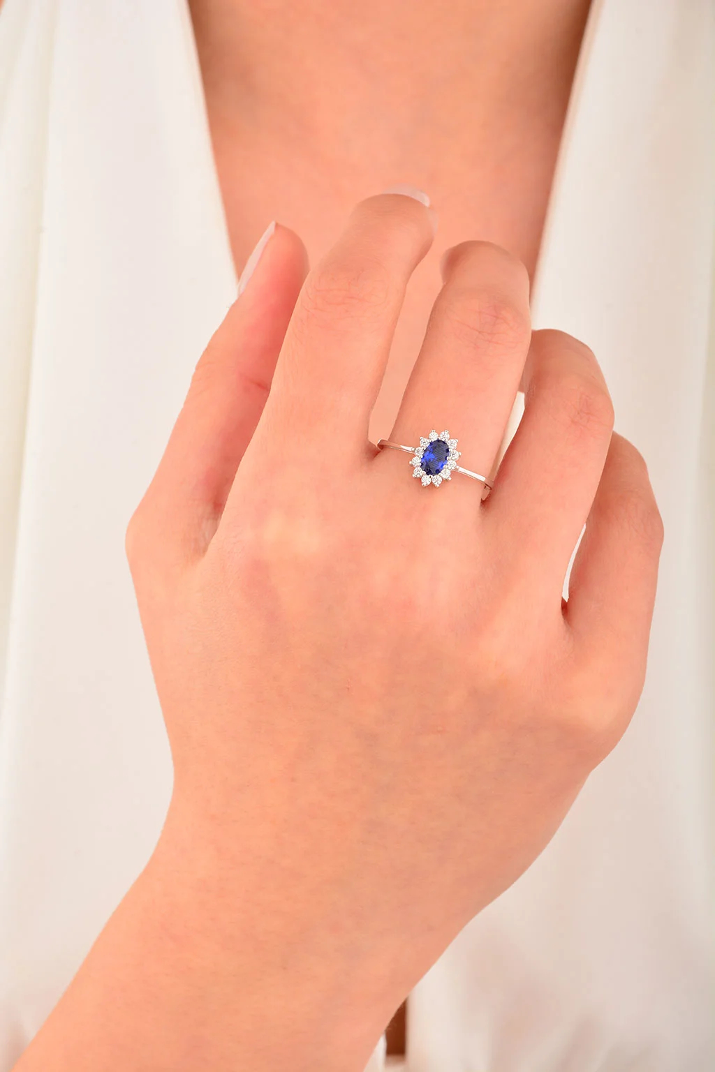 Cebeci 14 Ayar Lacivert Taşlı Çiçek Altın Yüzük