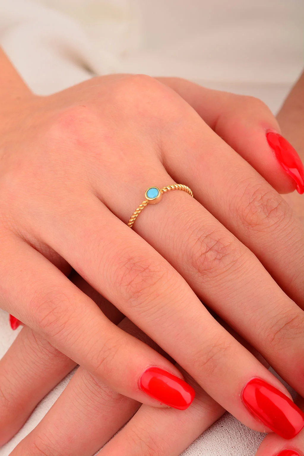 Cebeci 14 Ayar Mavi Taşlı Burgu Altın Yüzük