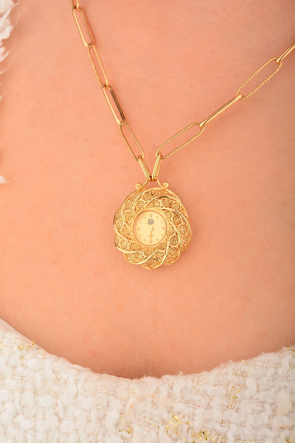 Cebeci 14 Ayar Saat Ataçlı Altın Kolye