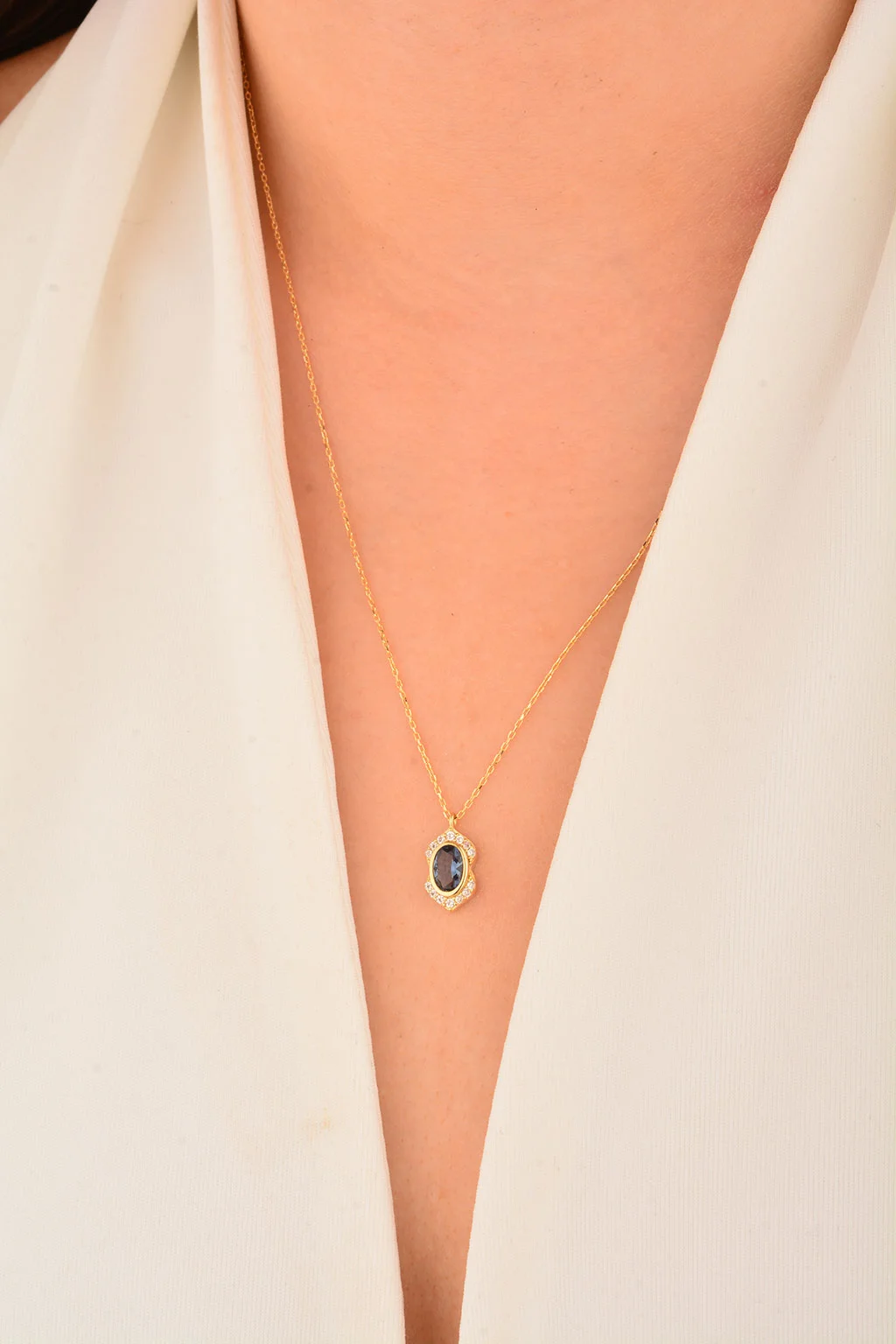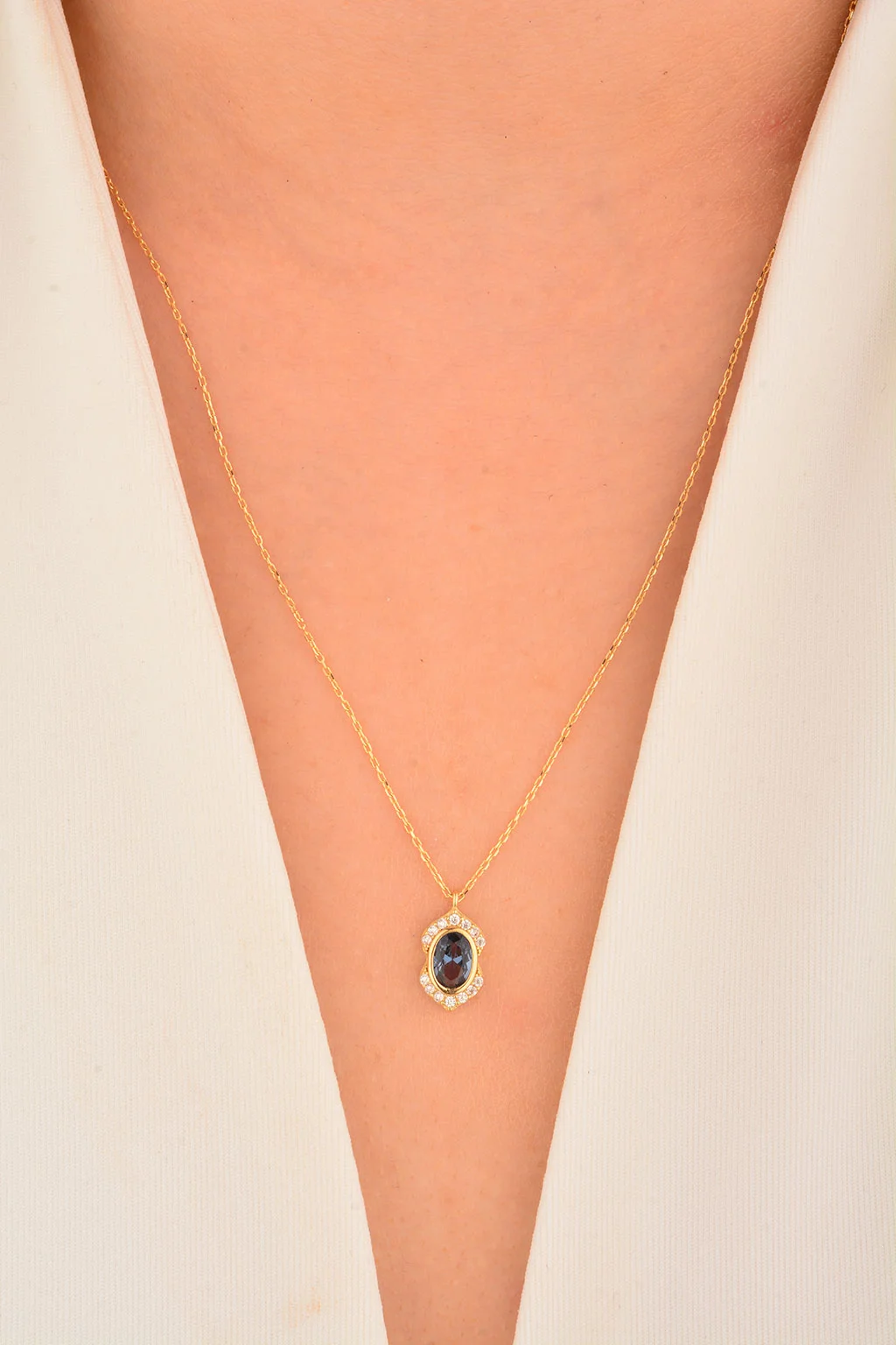 Cebeci 14 Ayar Oval Renkli Taşlı Altın Kolye