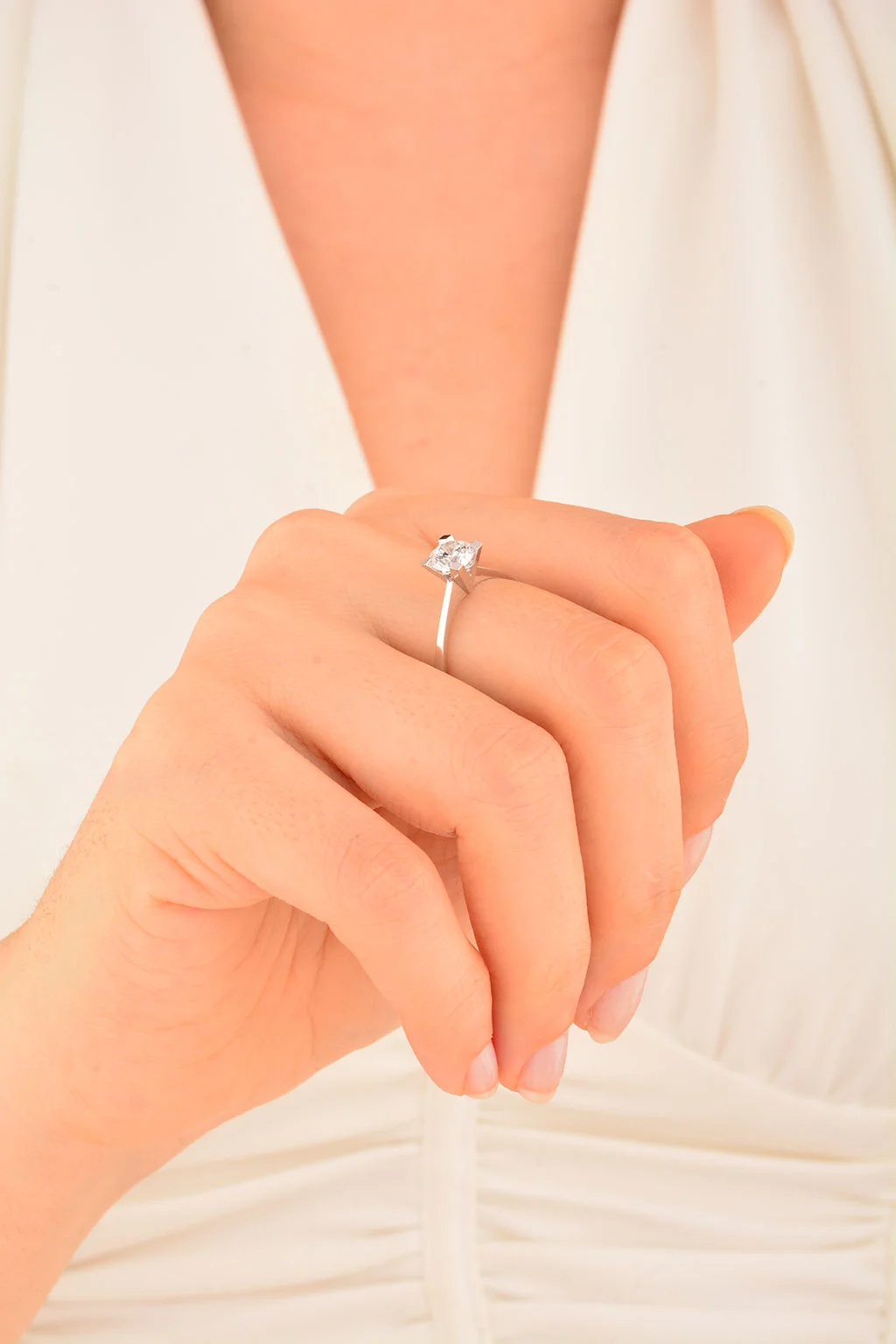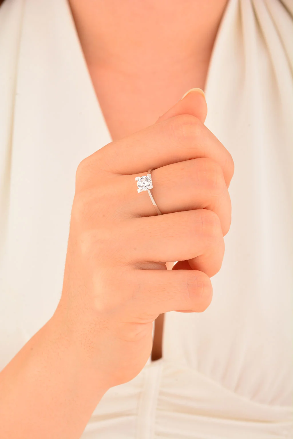 Cebeci 14 Ayar Beyaz Altın Tektaş Altın Yüzük