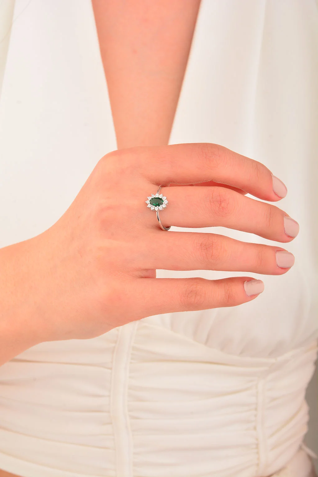 Cebeci 14 Ayar Yeşil Taşlı Çiçek Altın Yüzük