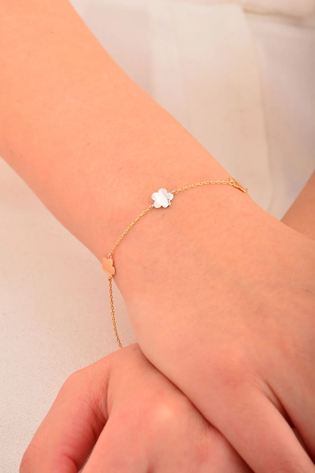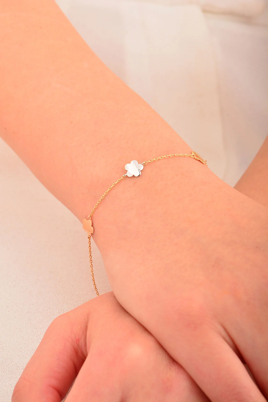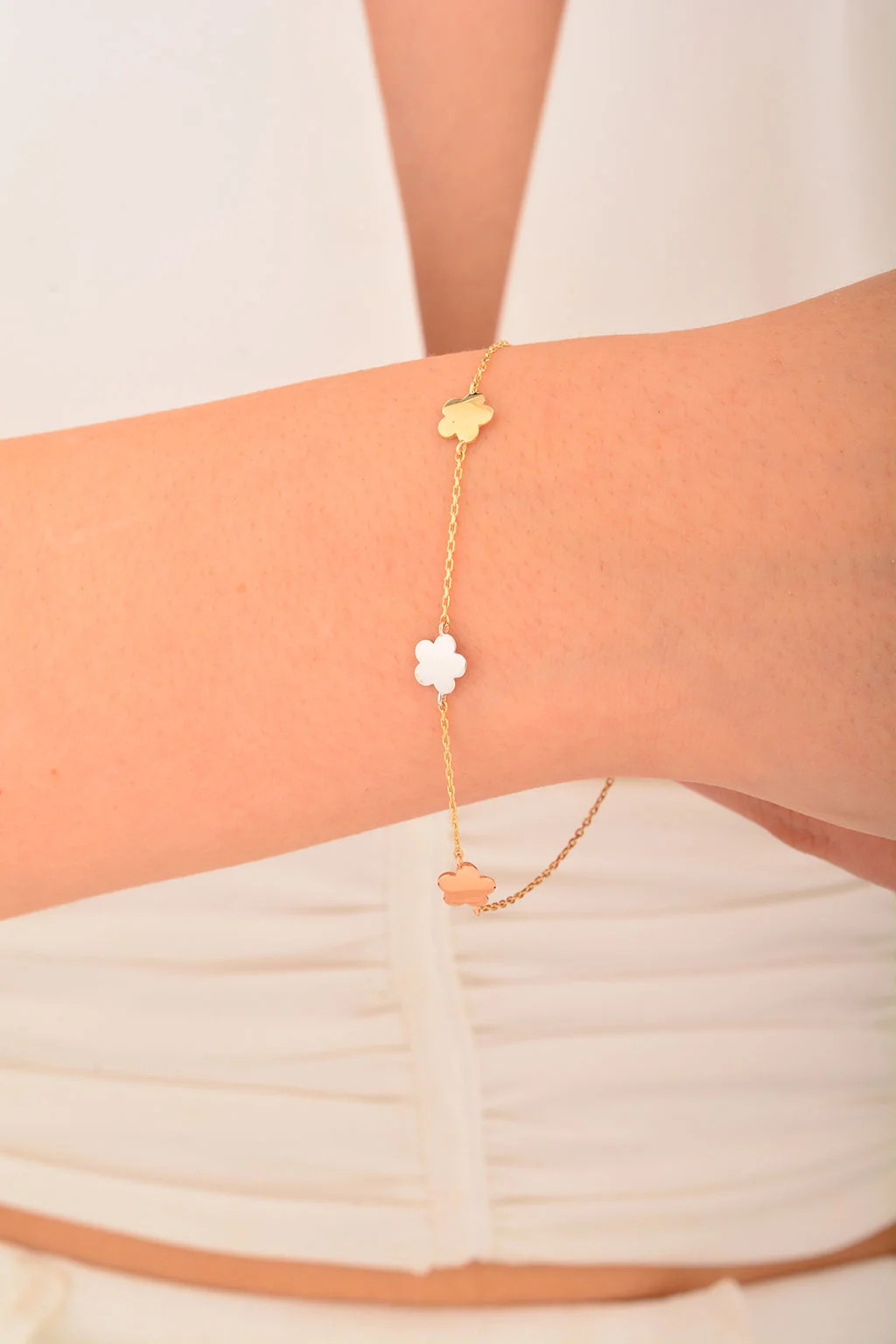 Cebeci 14 Ayar Renkli Çiçek Altın Bileklik