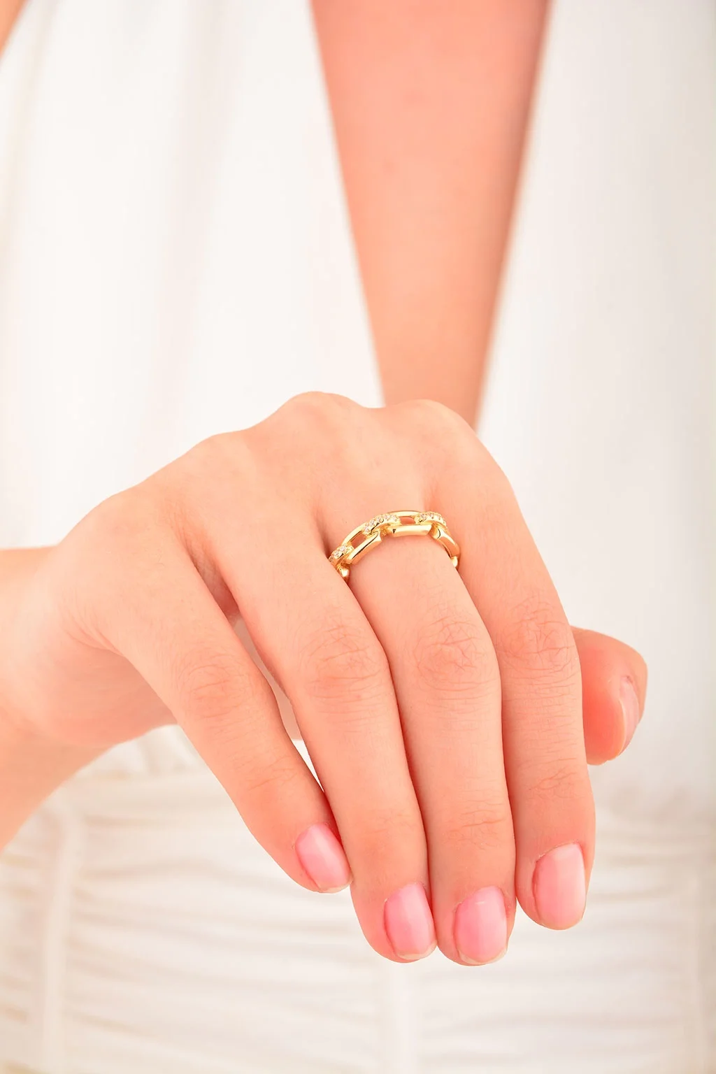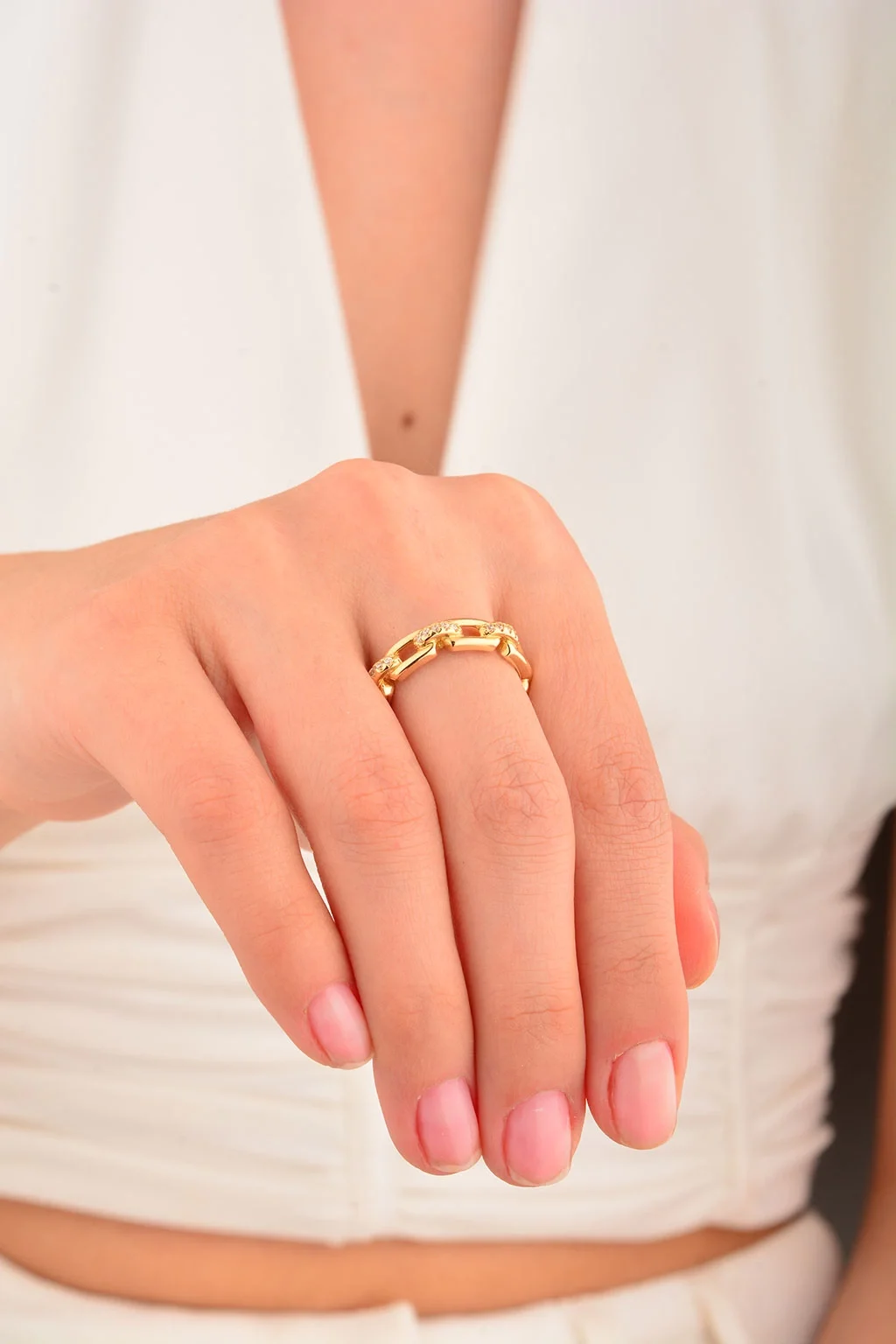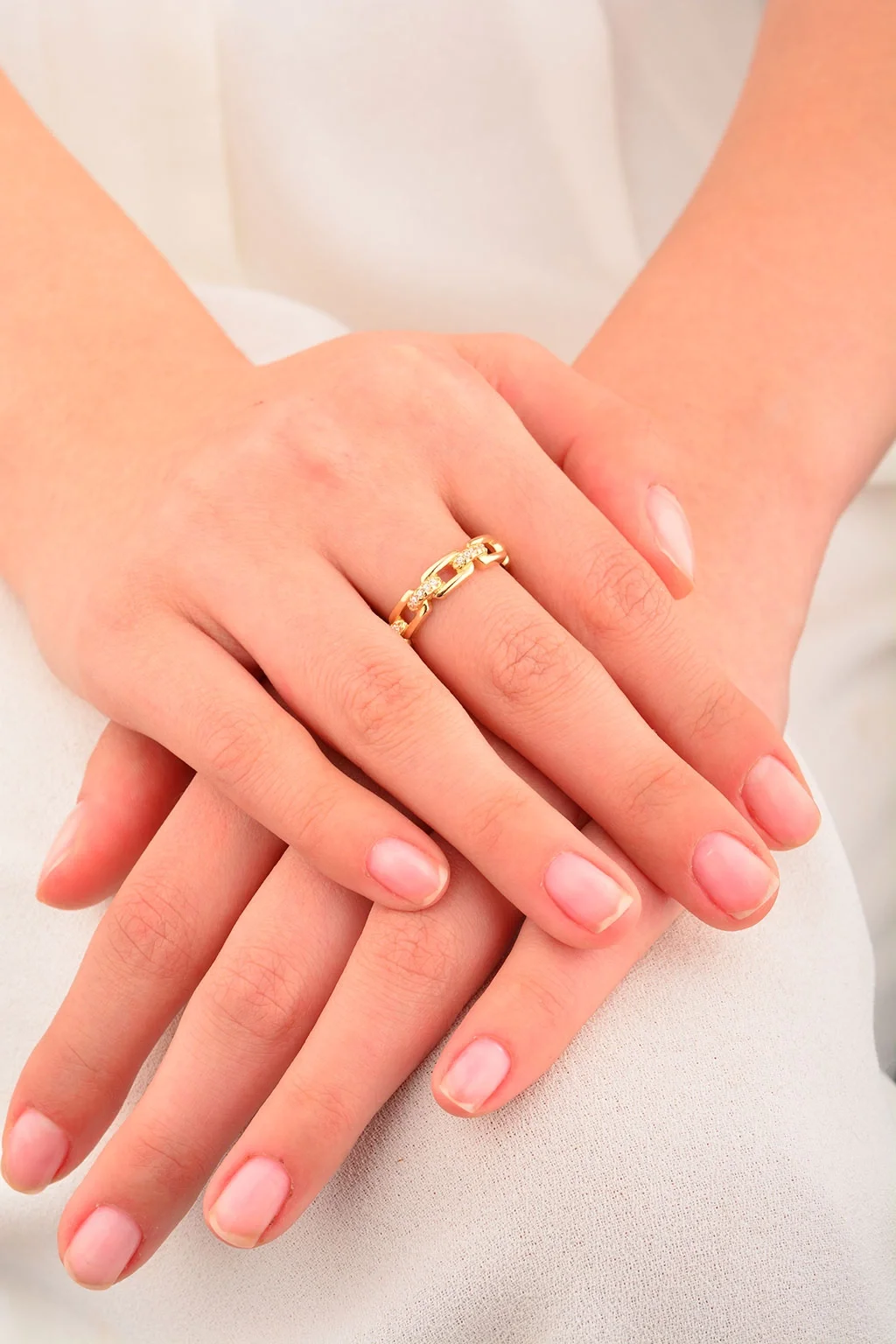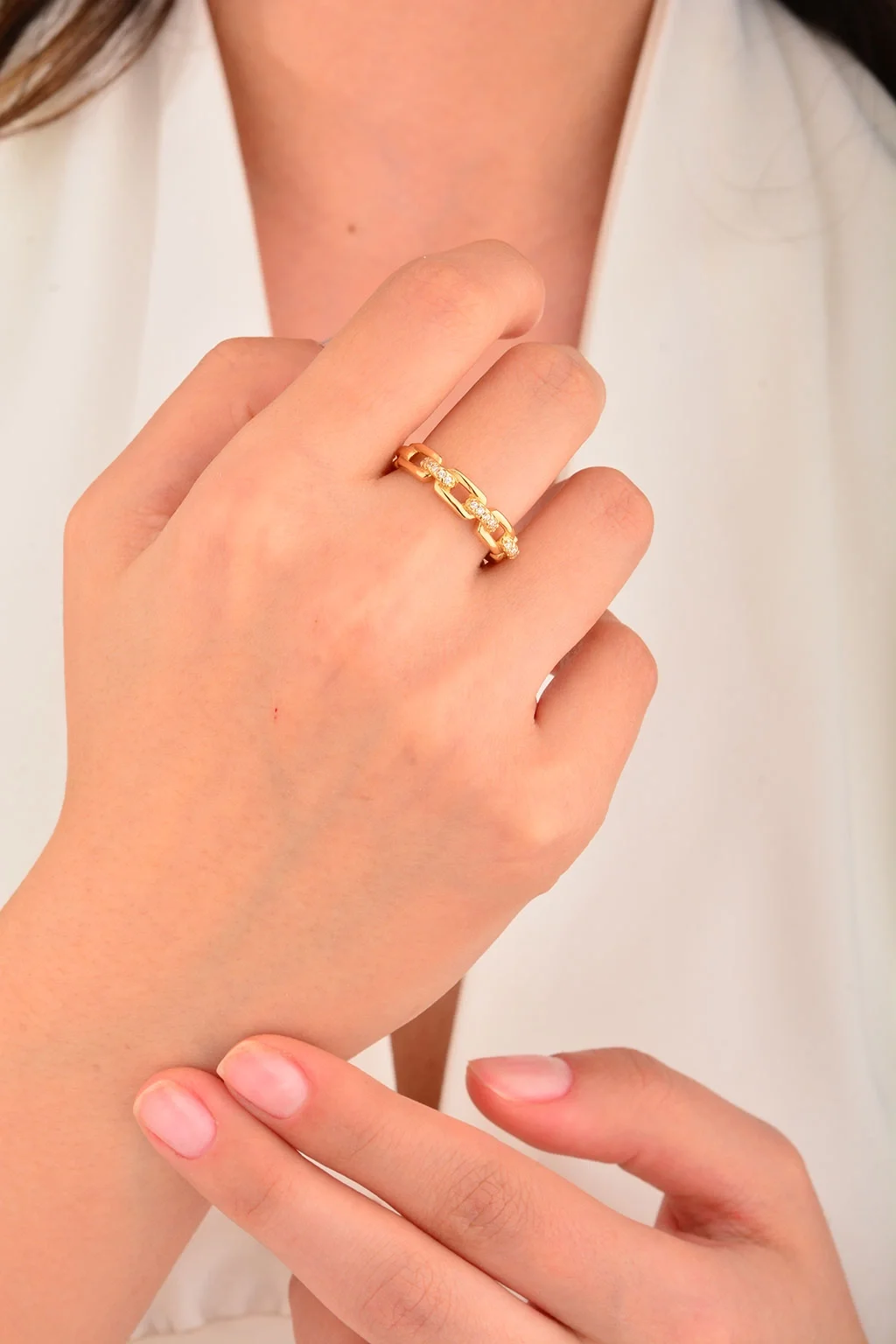 Cebeci 14 Ayar Taşlı Altın Zincir Yüzük
