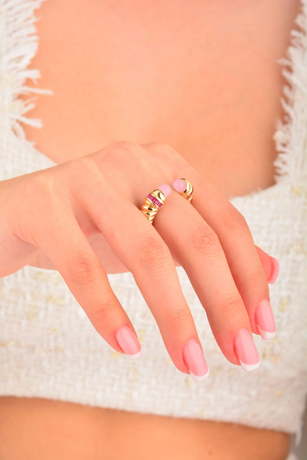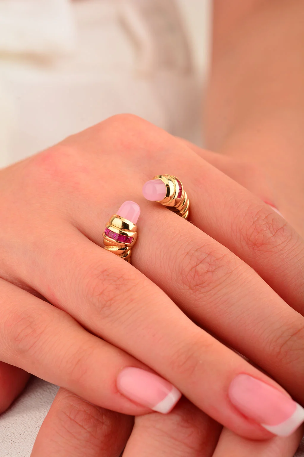 Cebeci 14 Ayar Pembe Taşlı Altın Yüzük