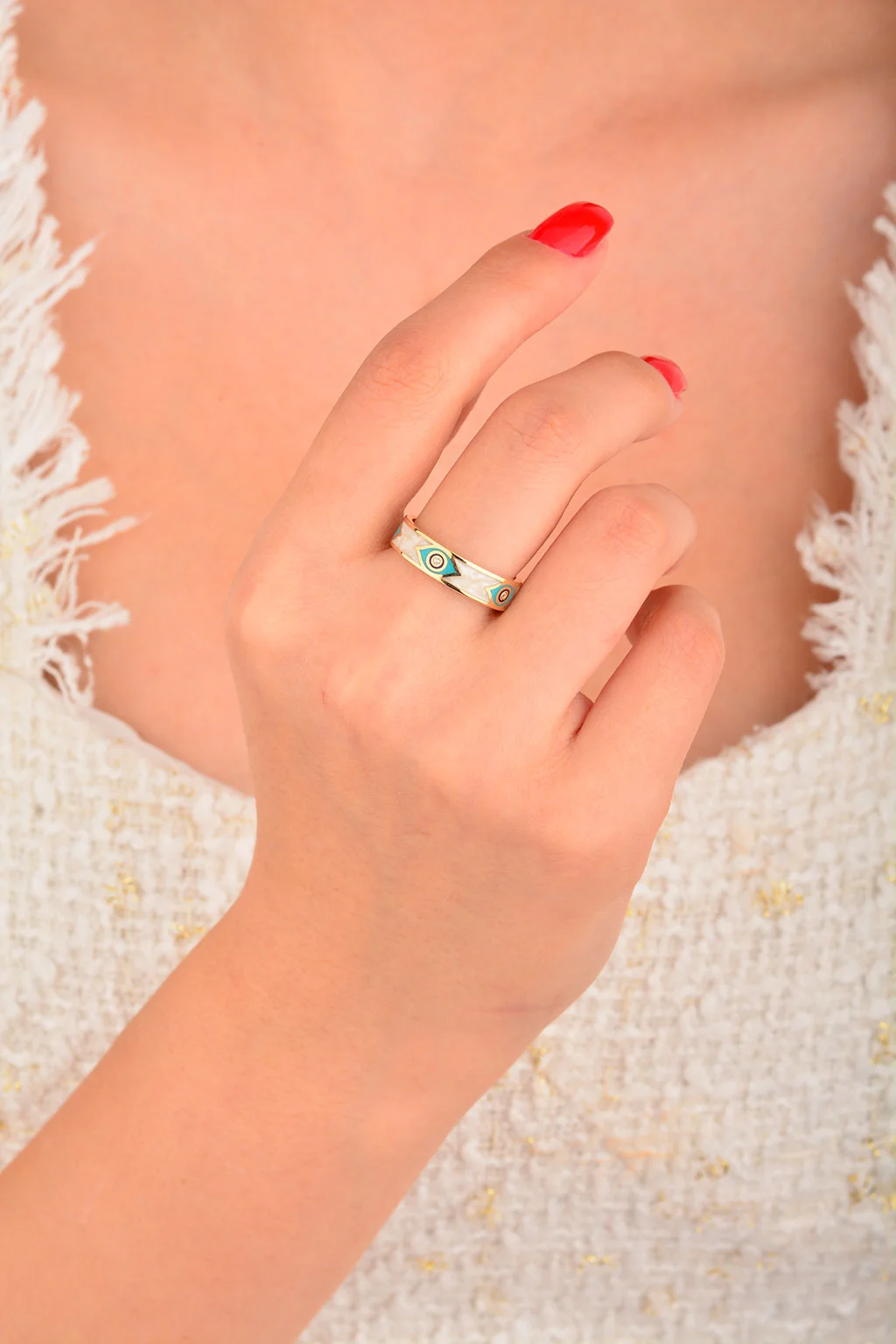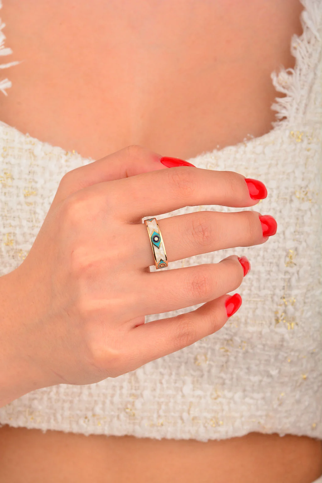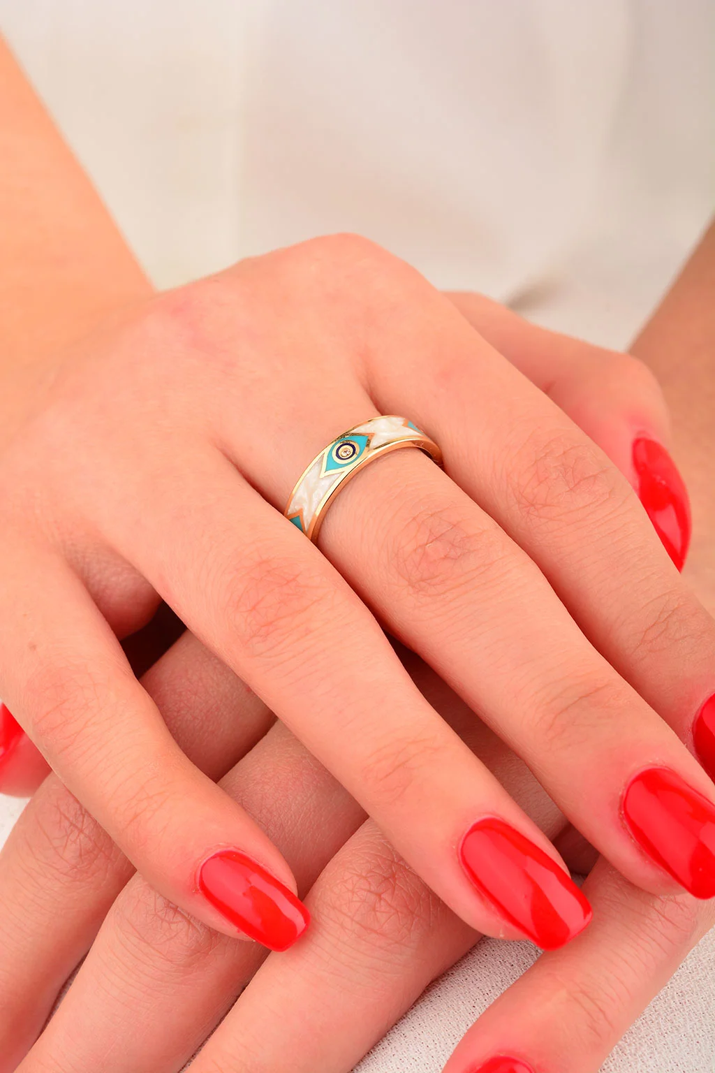 Cebeci 14 Ayar Renkli Sedefli Altın Yüzük