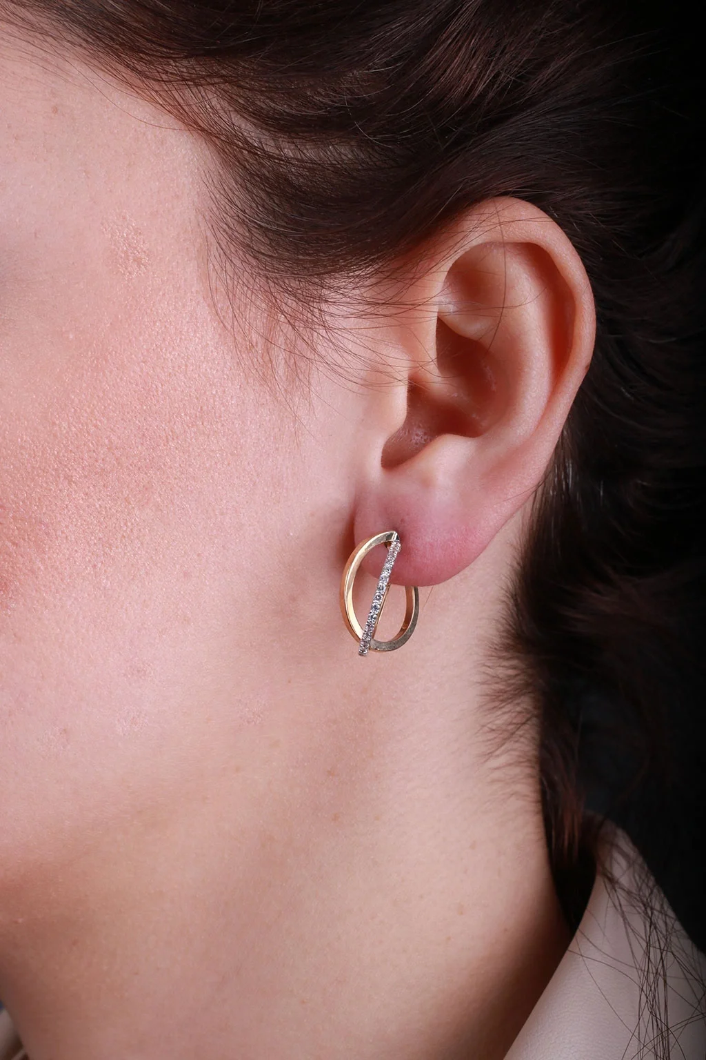 Cebeci 14 Ayar Halkalı Taşlı Altın Küpe