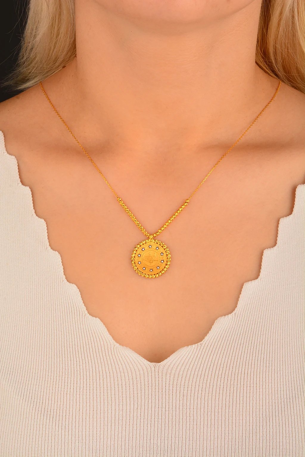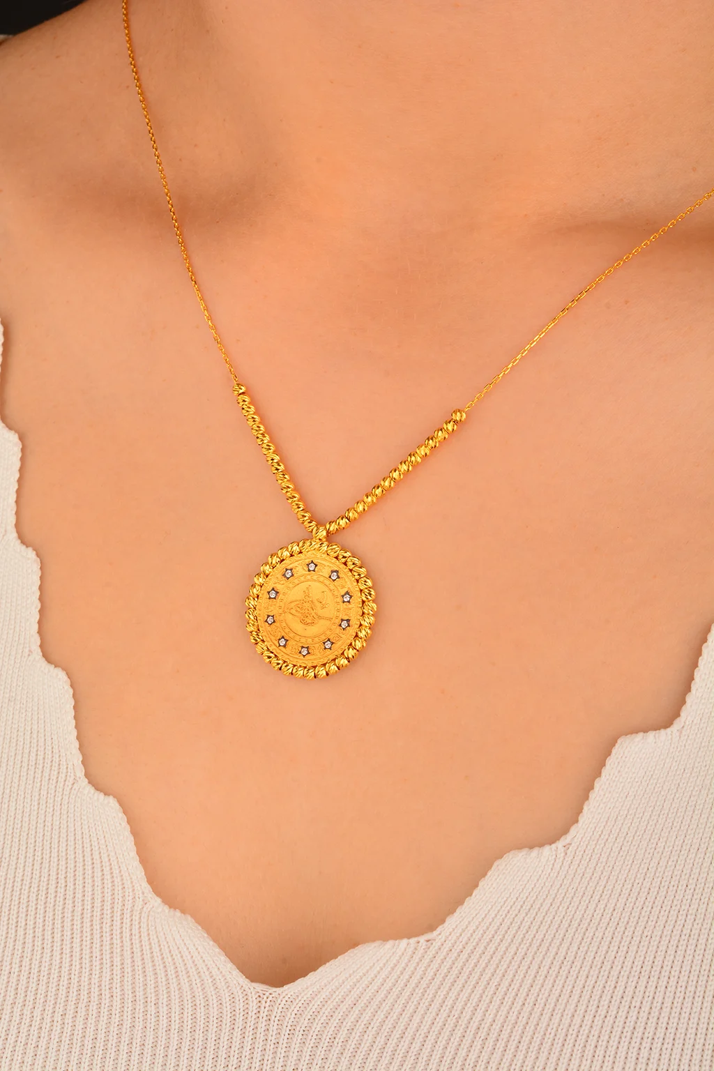 Cebeci 22 Ayar Dorikalı Tuğra Altın Kolye