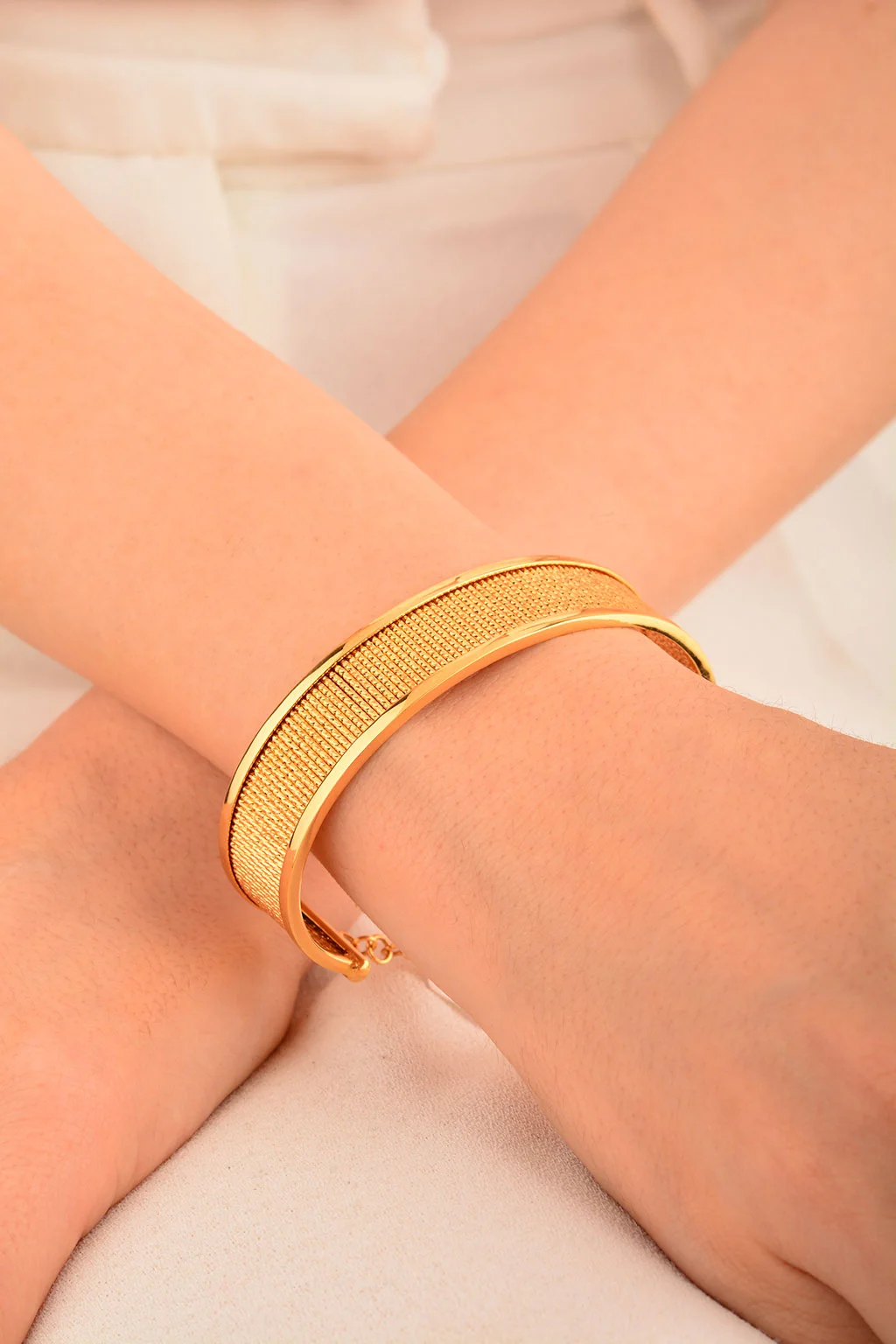 Cebeci 22 Ayar Çizgili Altın Kelepçe Bilezik