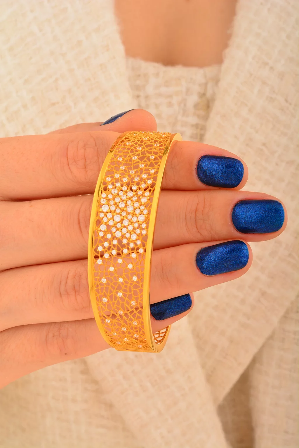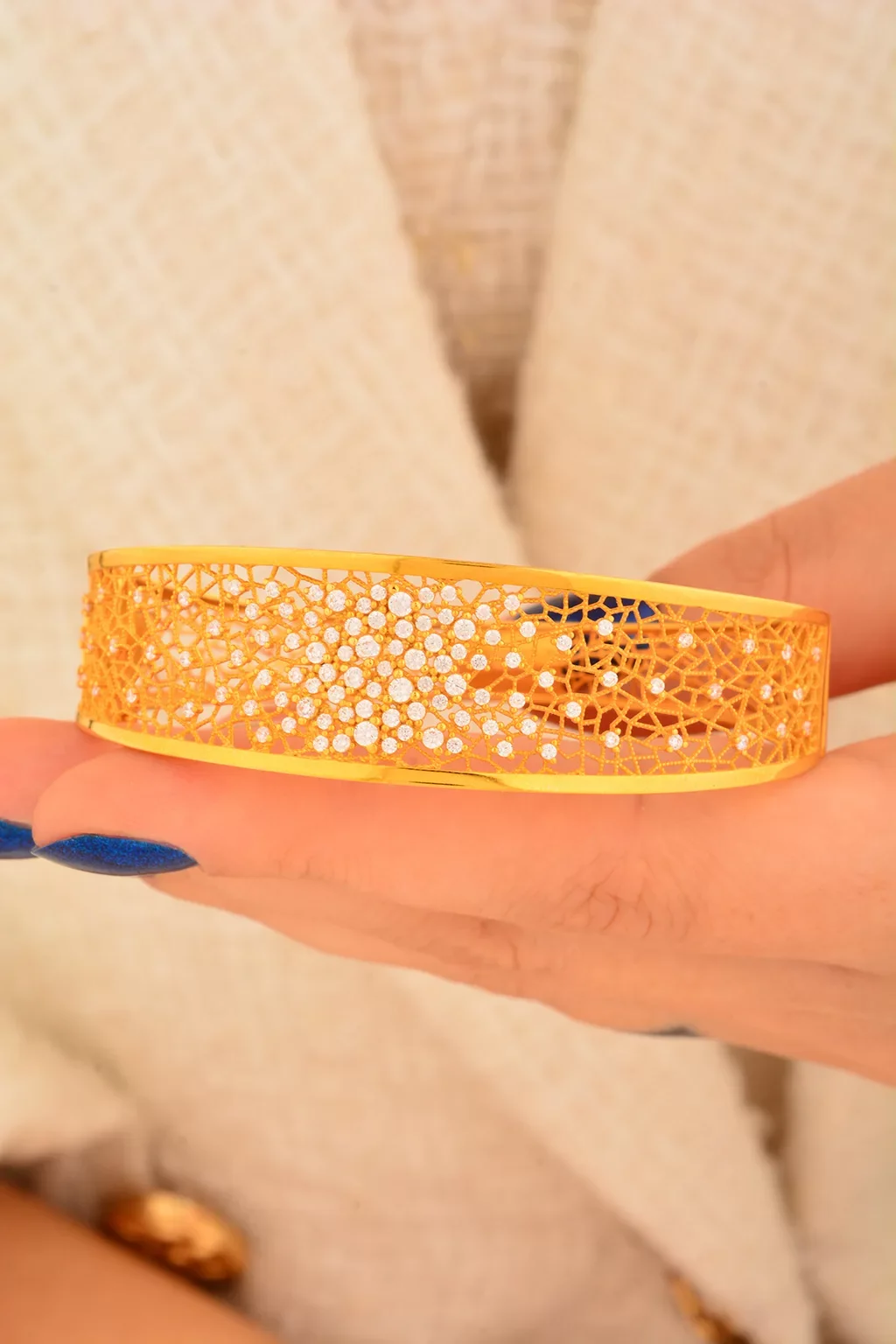 Cebeci 22 Ayar Taşlı Kırık Kelepçe Altın Bilezik