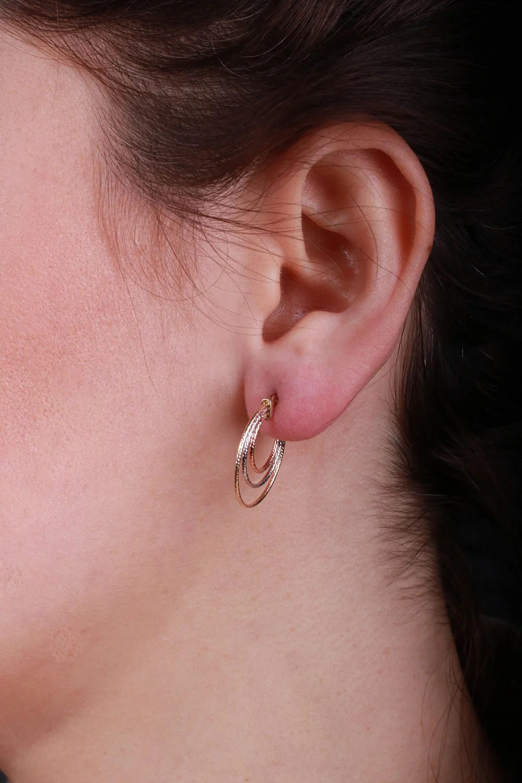 Cebeci 14 Ayar Renkli İç İçe Halka Altın Küpe