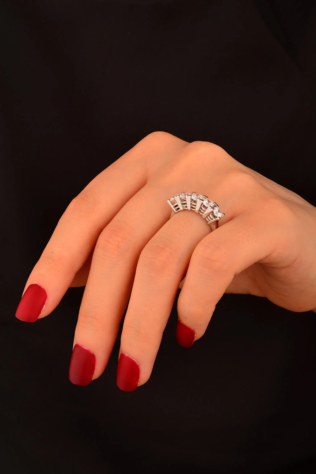 Beş Taş Beyaz Altın Yüzük