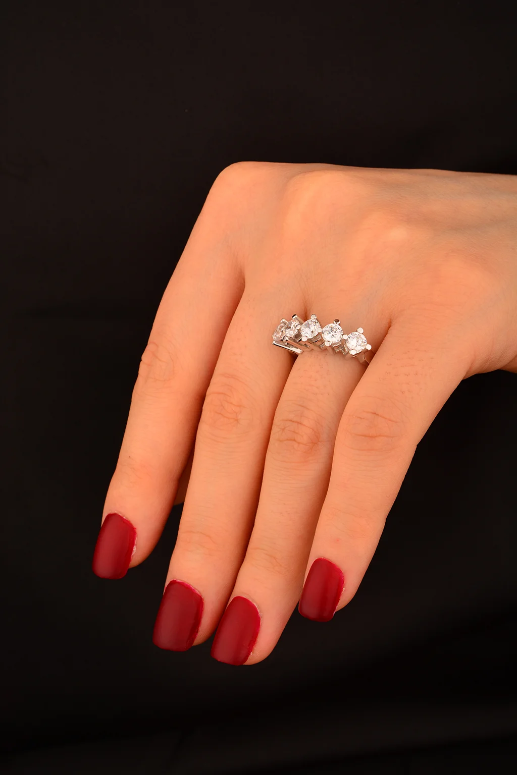 Cebeci 14 Ayar Beyaz Altın Beştaş Yüzük