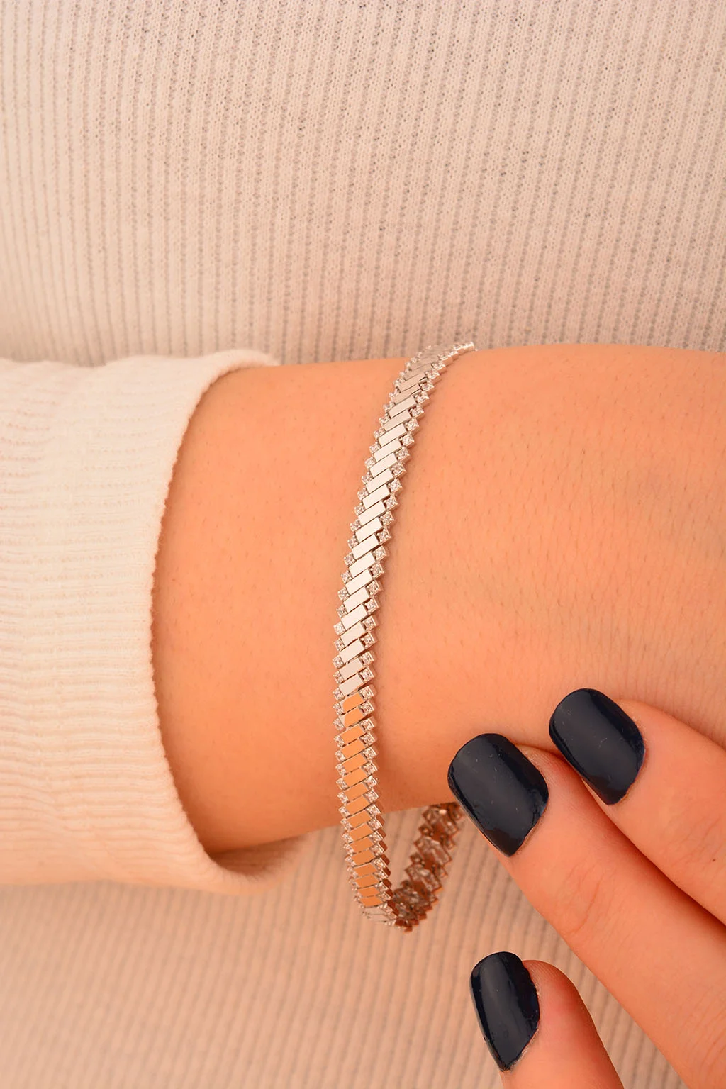 Cebeci 14 Ayar Beyaz Altın Bileklik