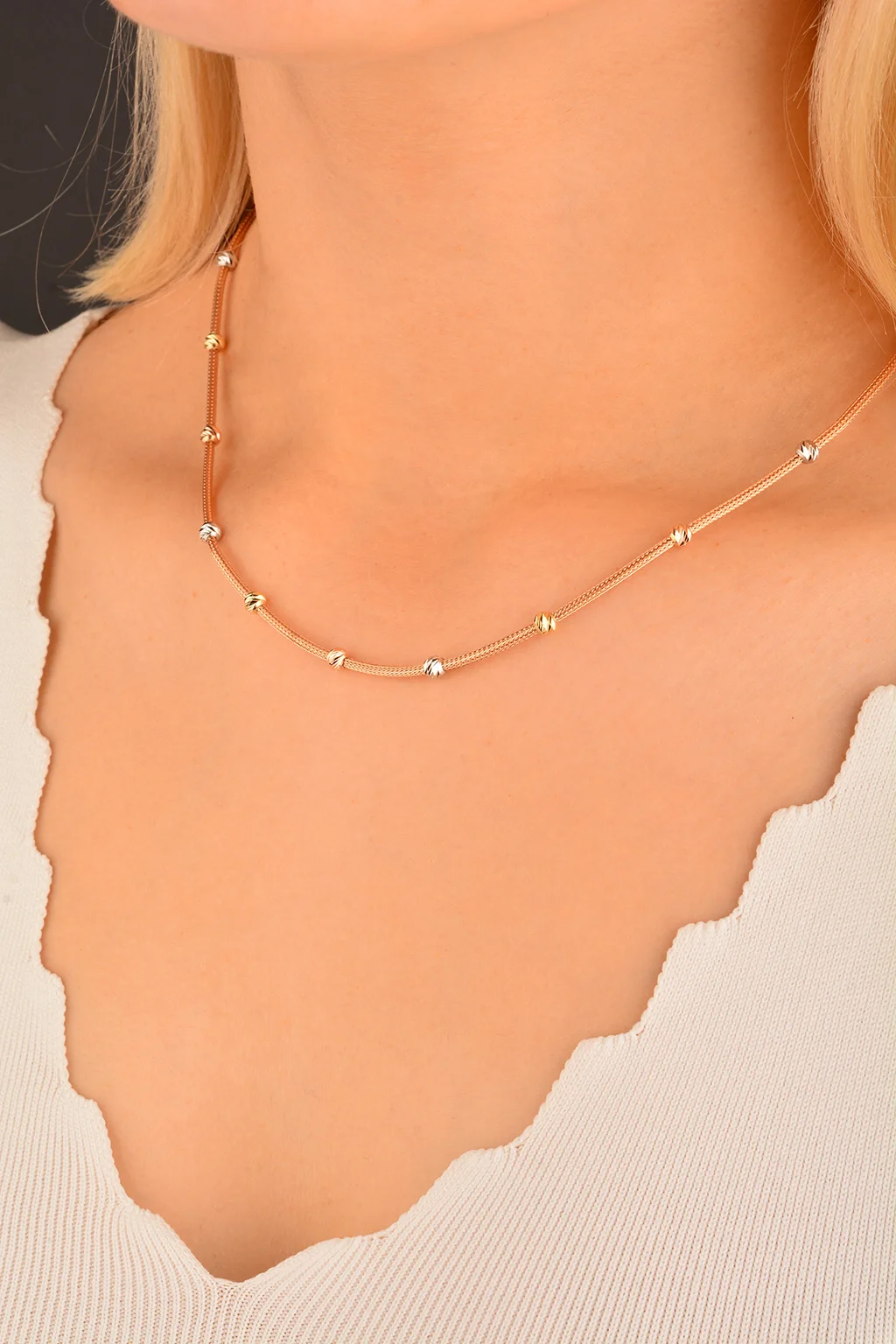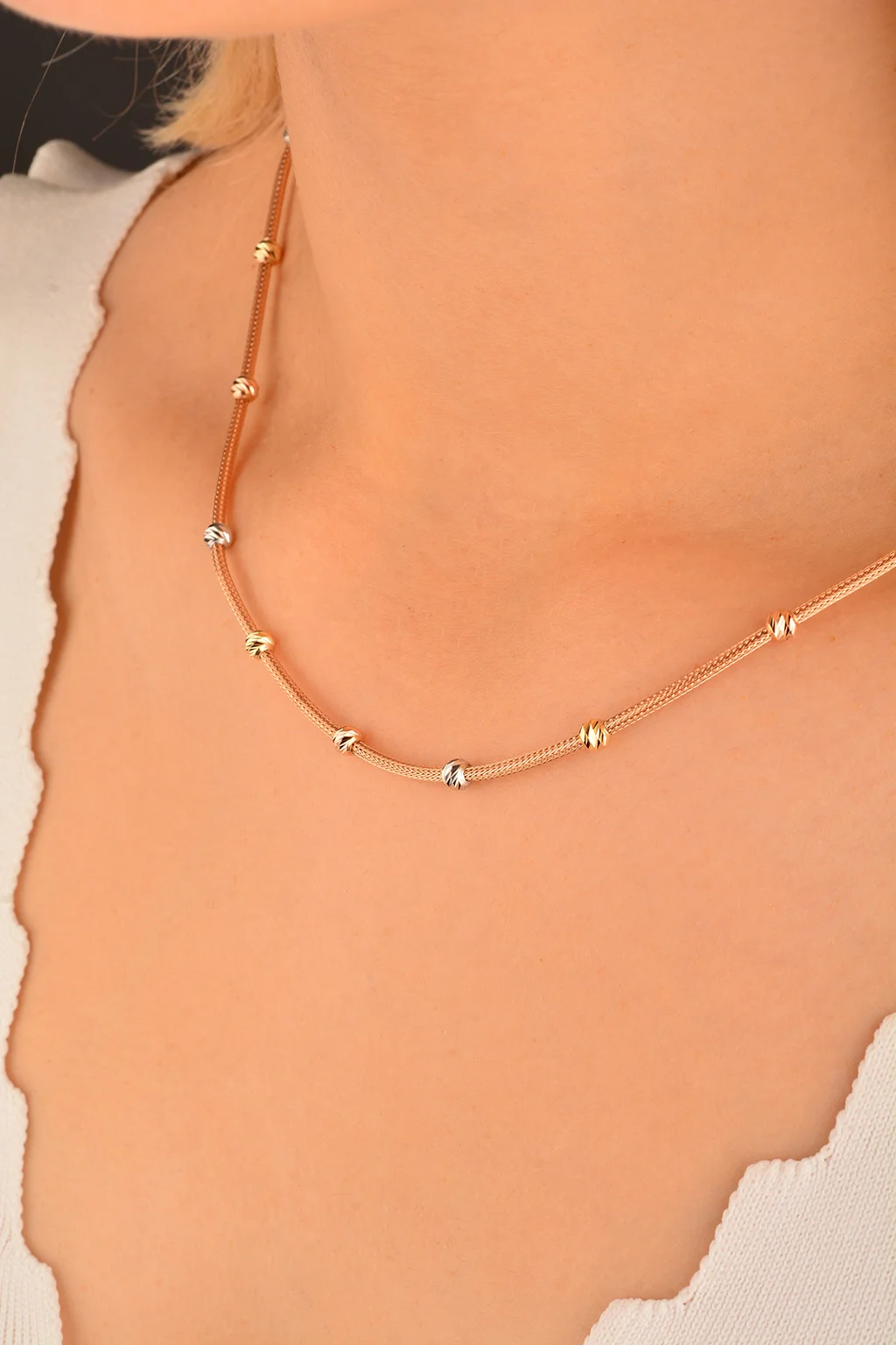 Cebeci 14 Ayar Renkli Dorikalı Rose Altın Kolye
