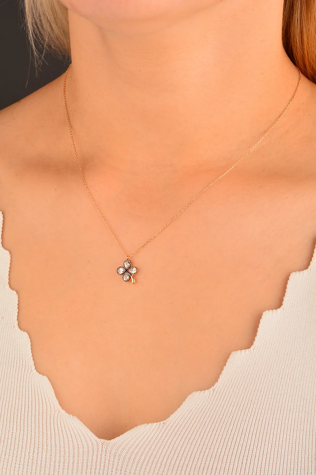 Cebeci 14 Ayar 4 Yapraklı Yonca Rose Altın Kolye