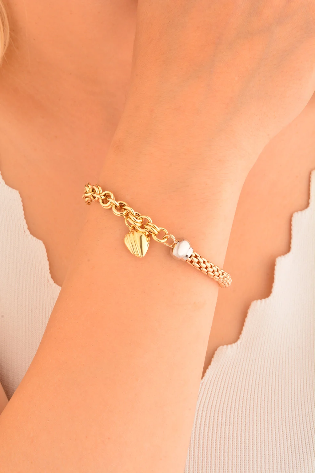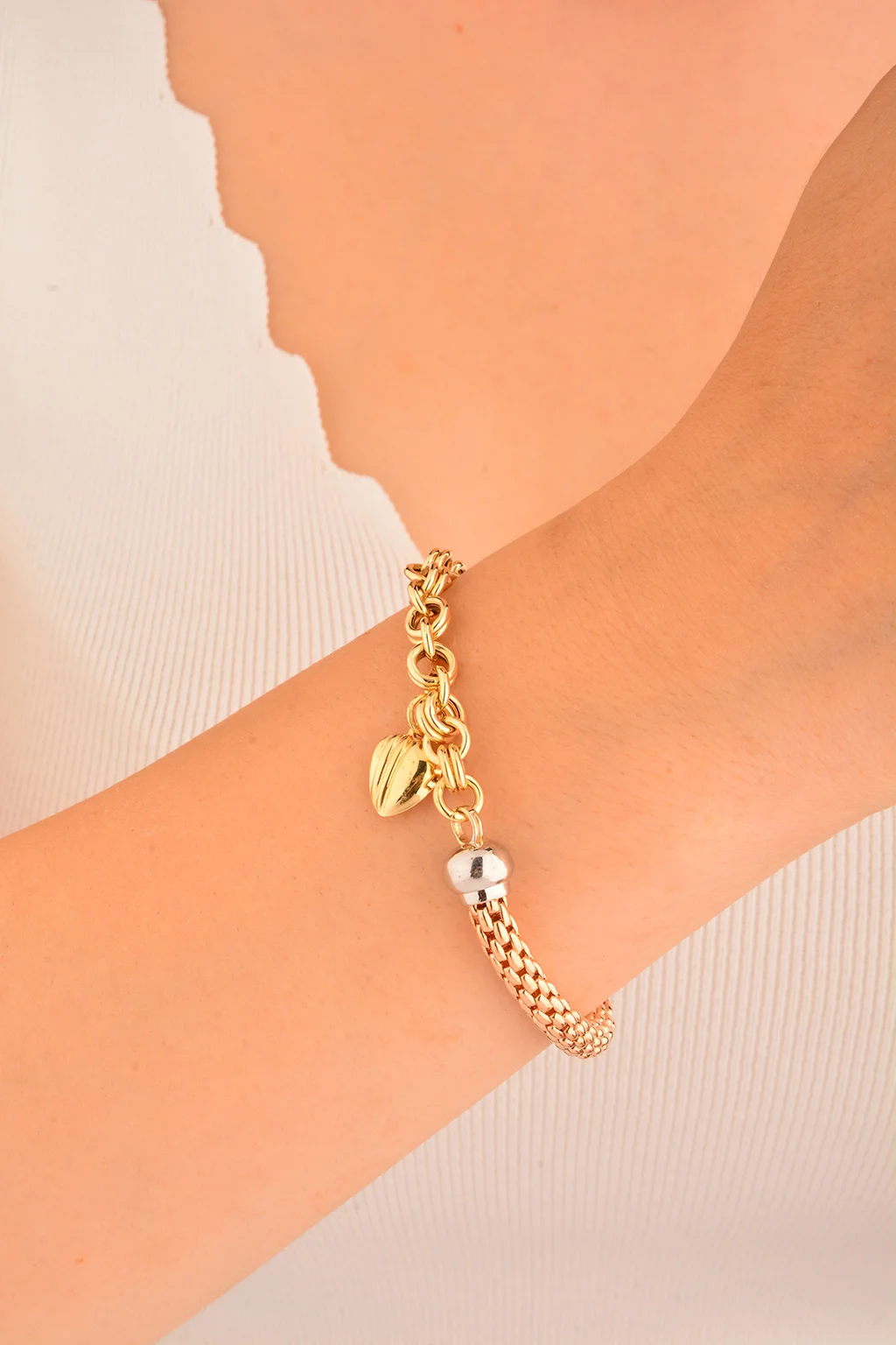 Cebeci 14 Ayar Altın Kalpli Bileklik