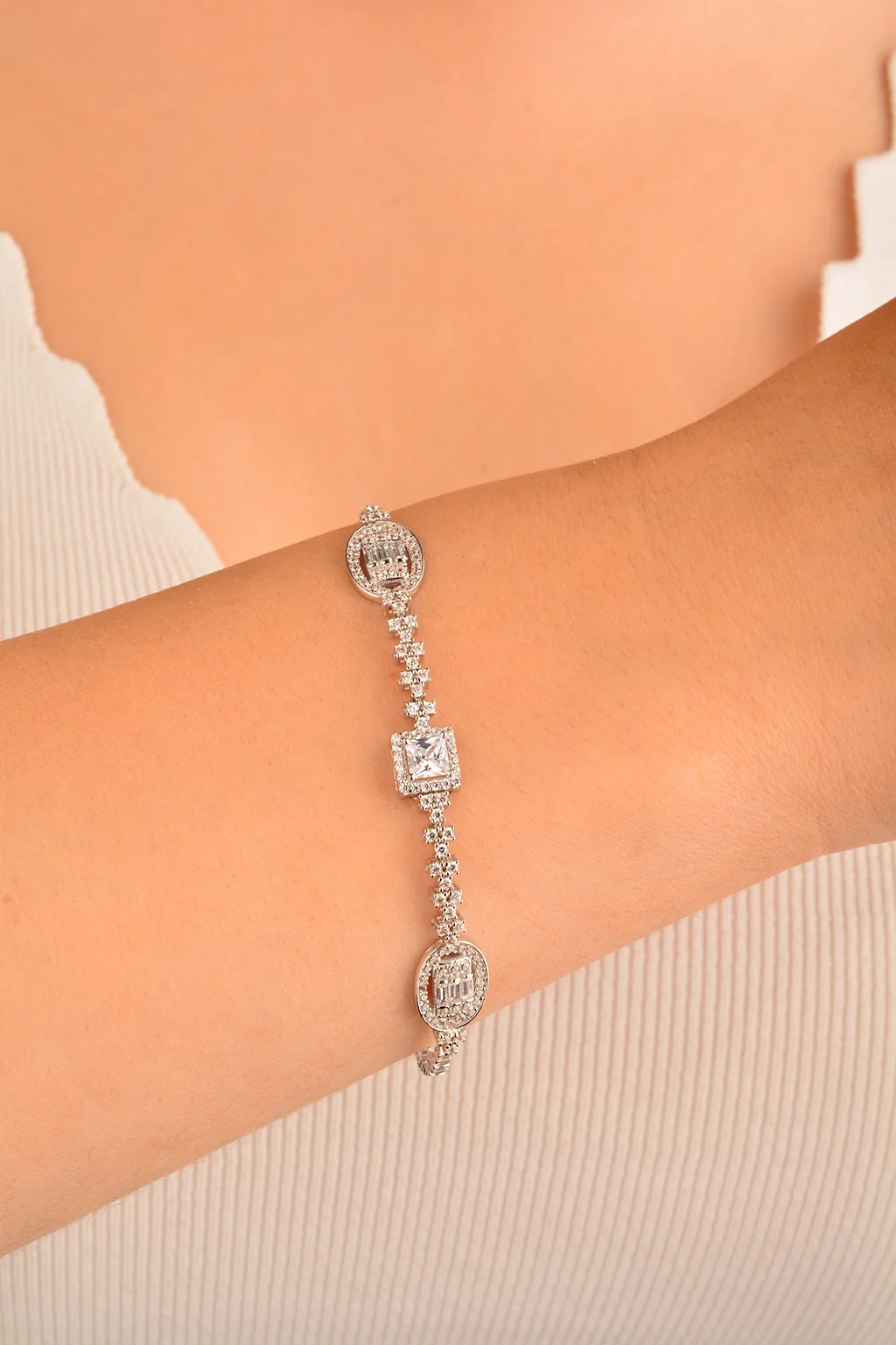 Cebeci 14 Ayar Baget Taşlı Beyaz Altın Bileklik