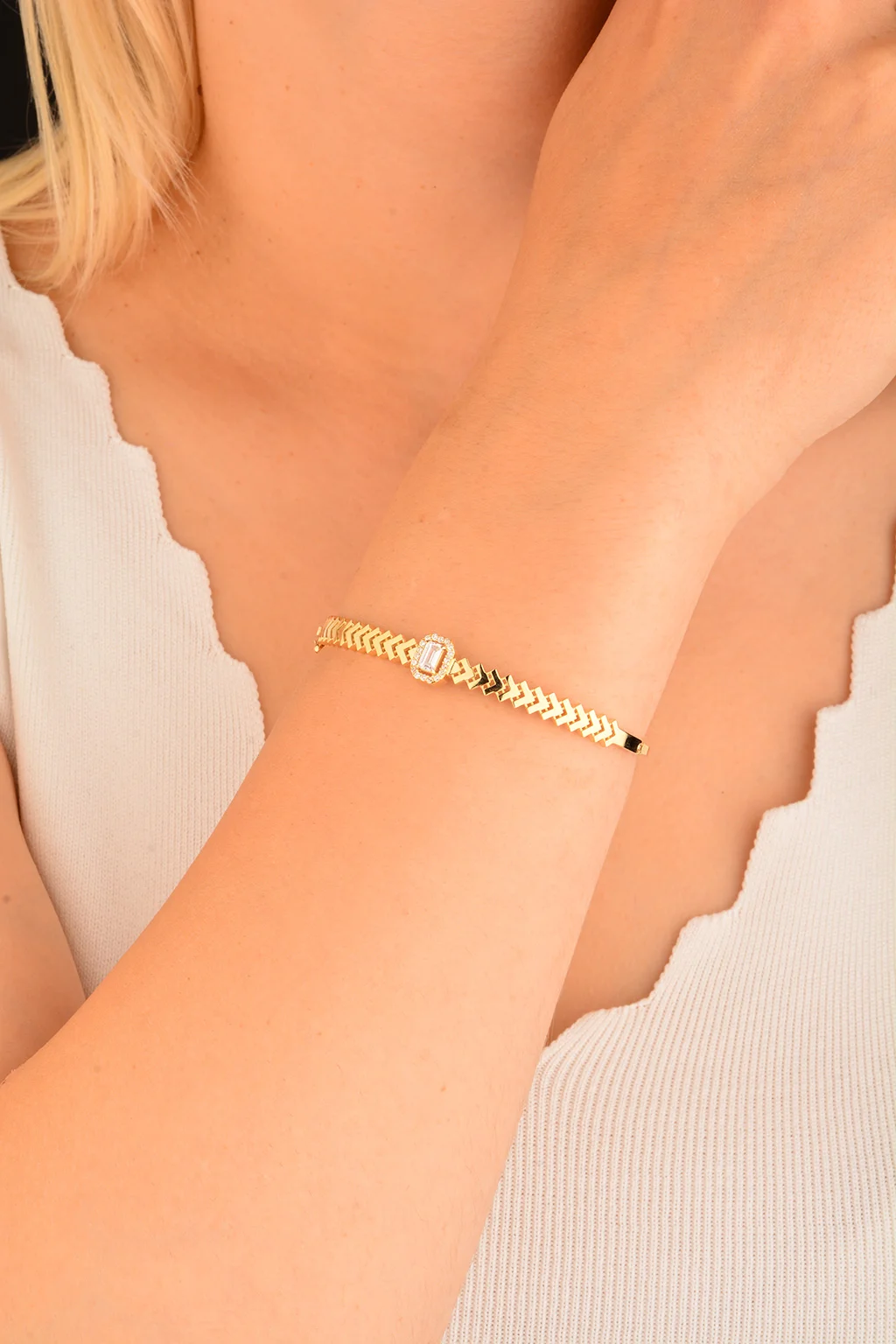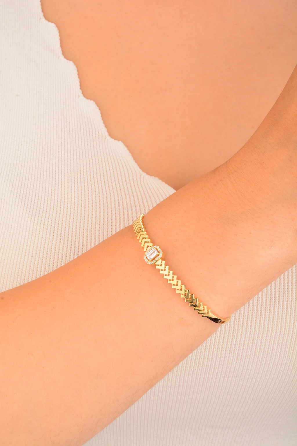 Cebeci 14 Ayar Baget Taşlı Altın Bilezik