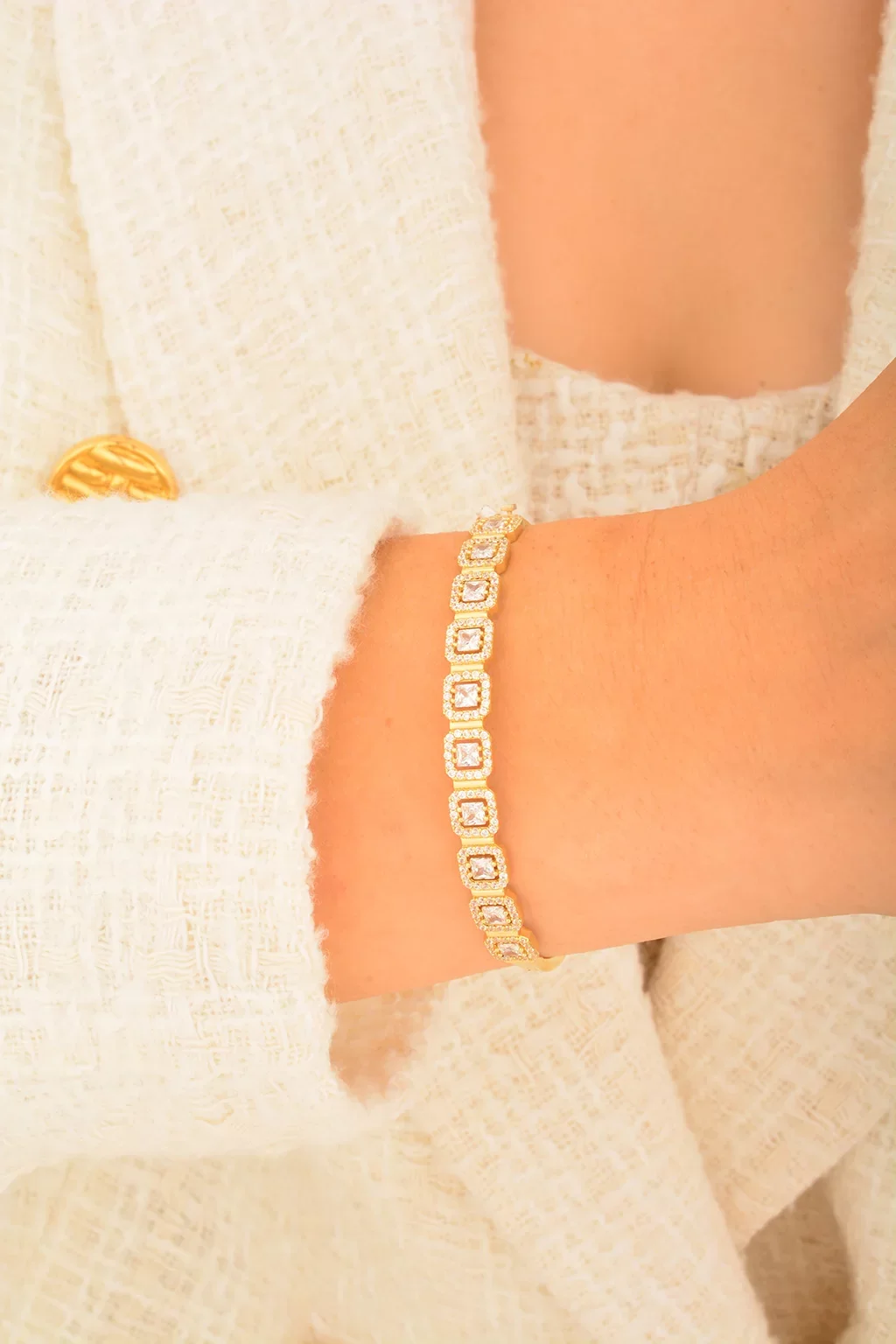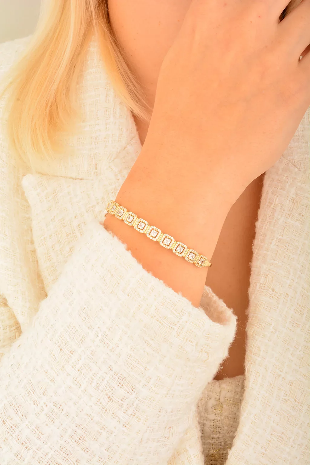 Cebeci 14 Ayar Baget Taşlı Kelepçe Bilezik