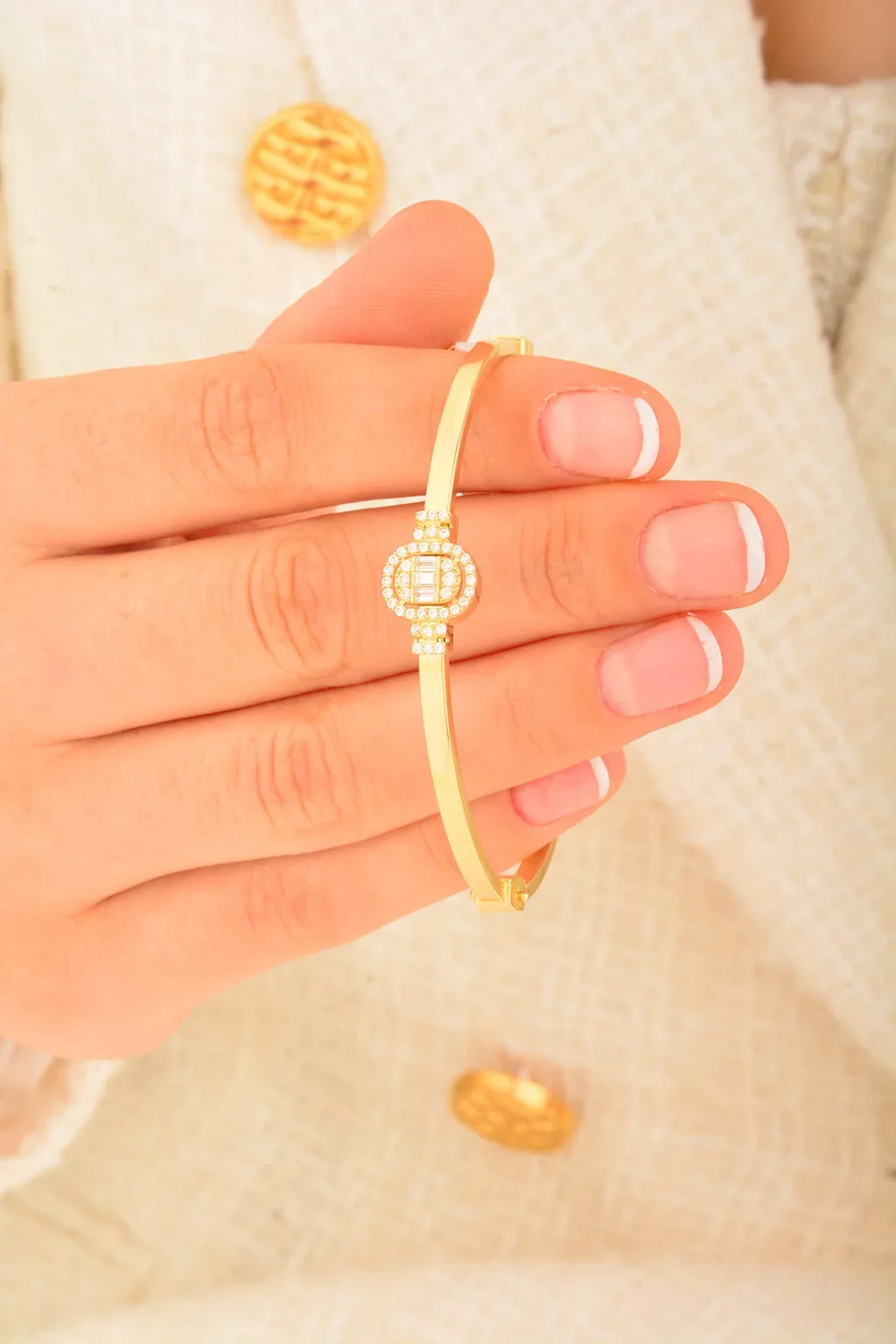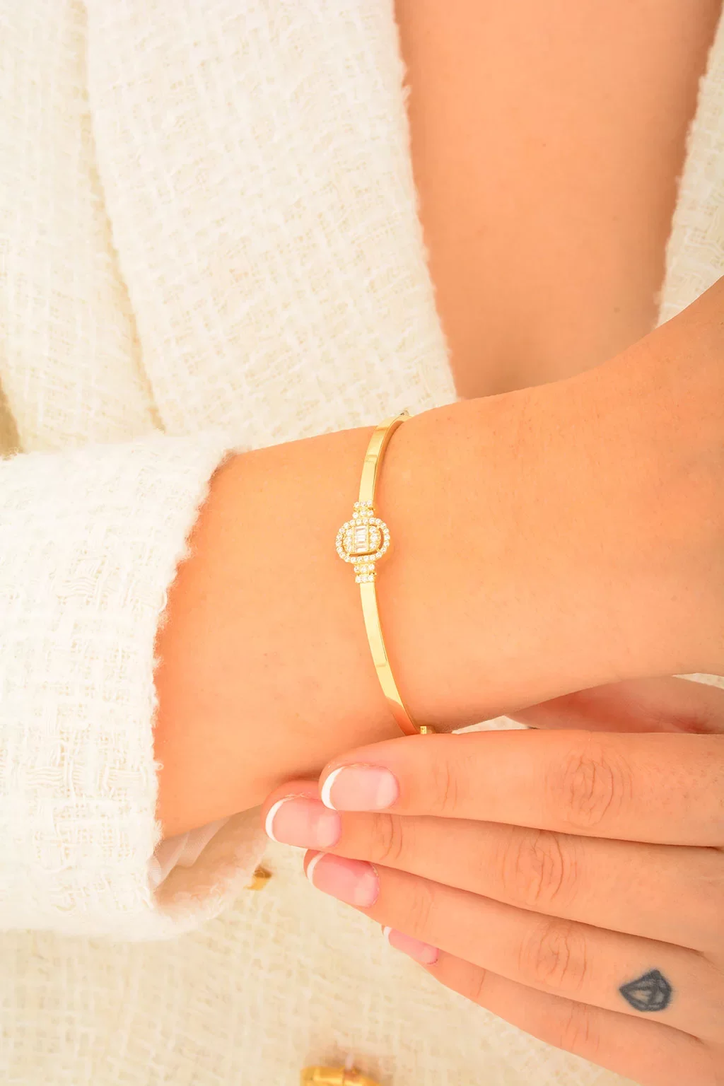 Cebeci 14 Ayar Baget Taşlı Kelepçeli Bilezik