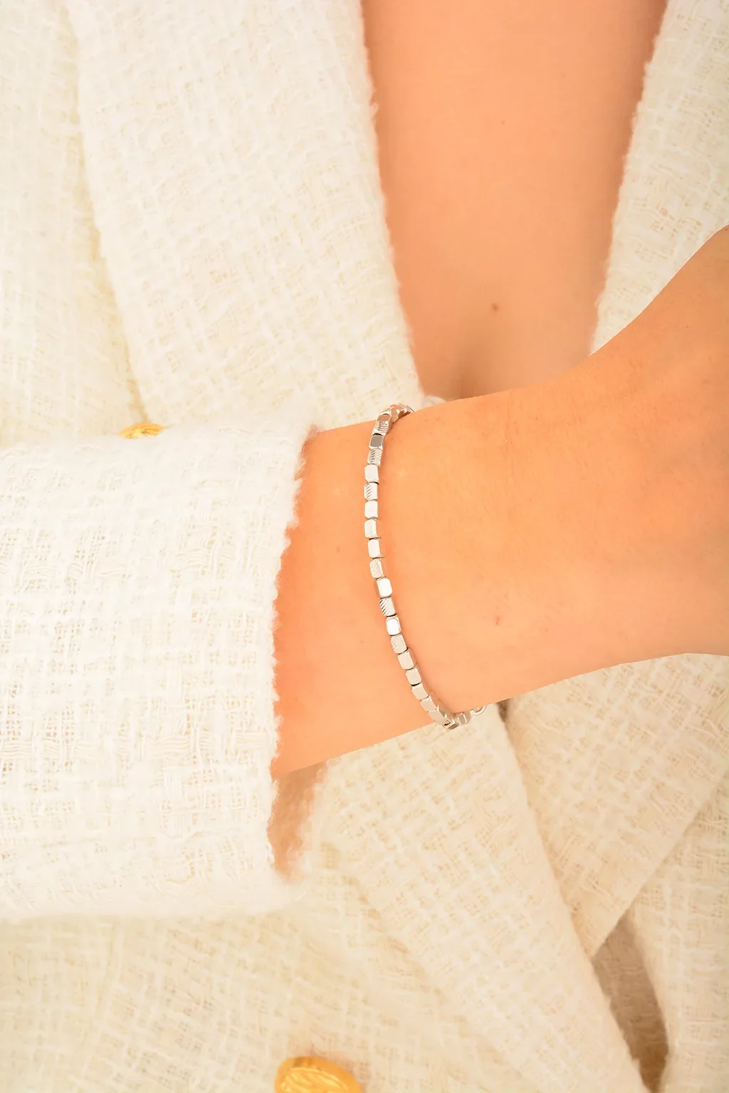 Cebeci 14 Ayar Beyaz Altın Kelepçe Bilezik