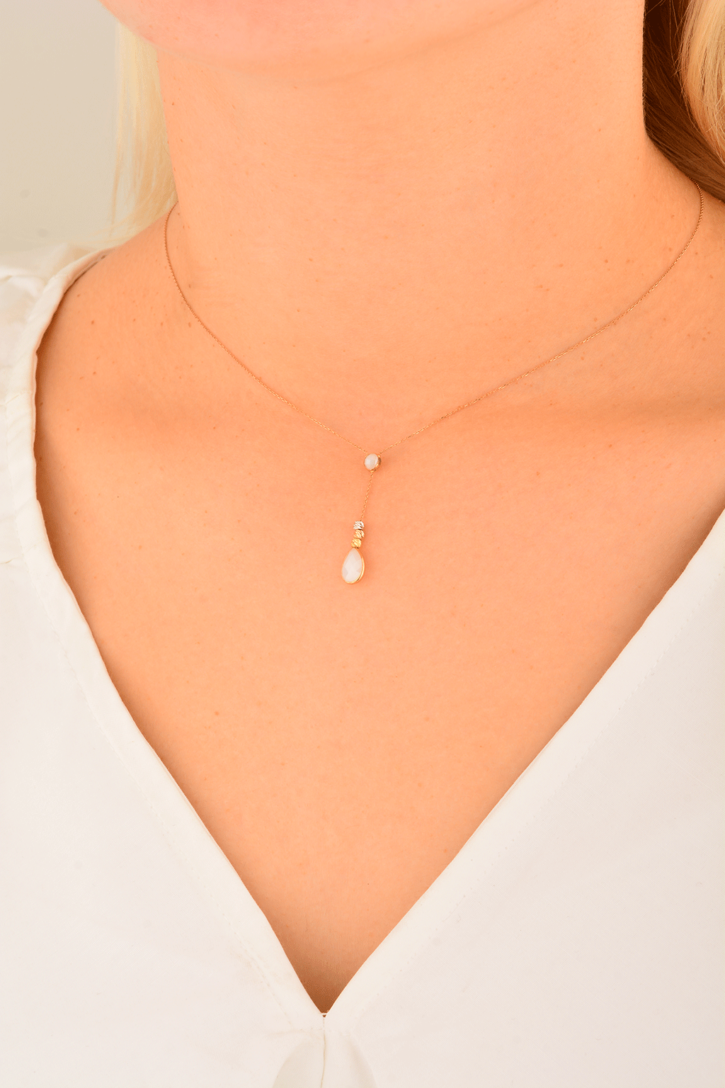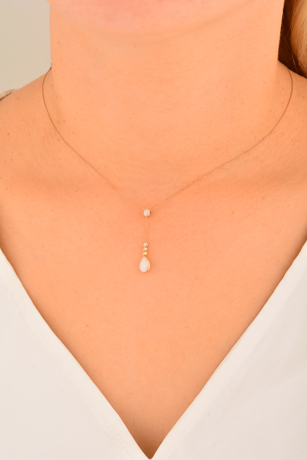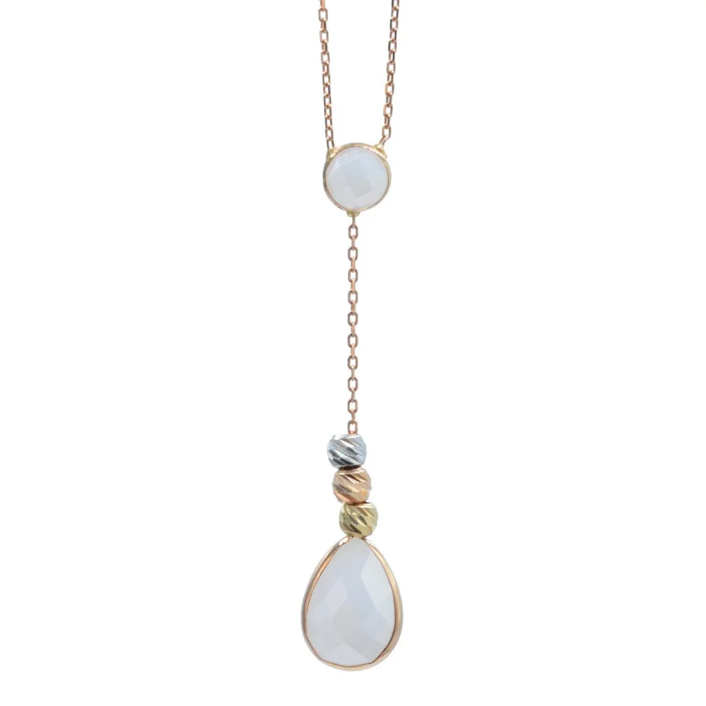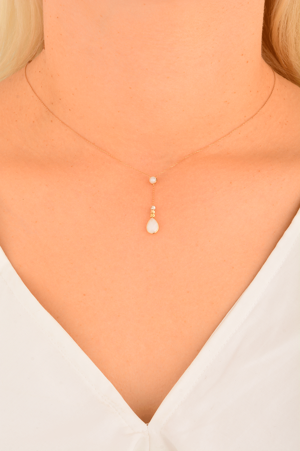 Cebeci 14 Ayar Beyaz Taş Rose Altın Kolye