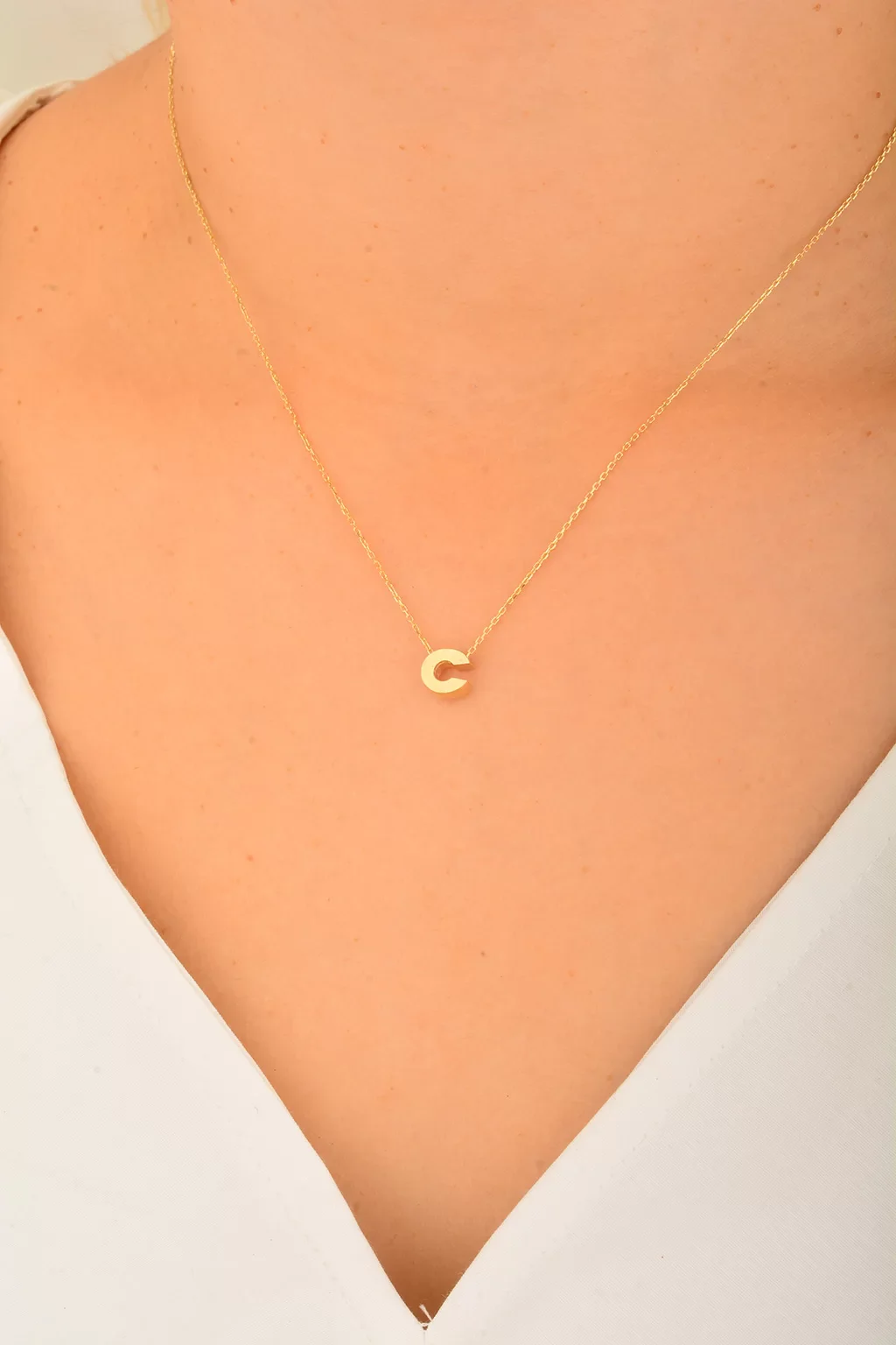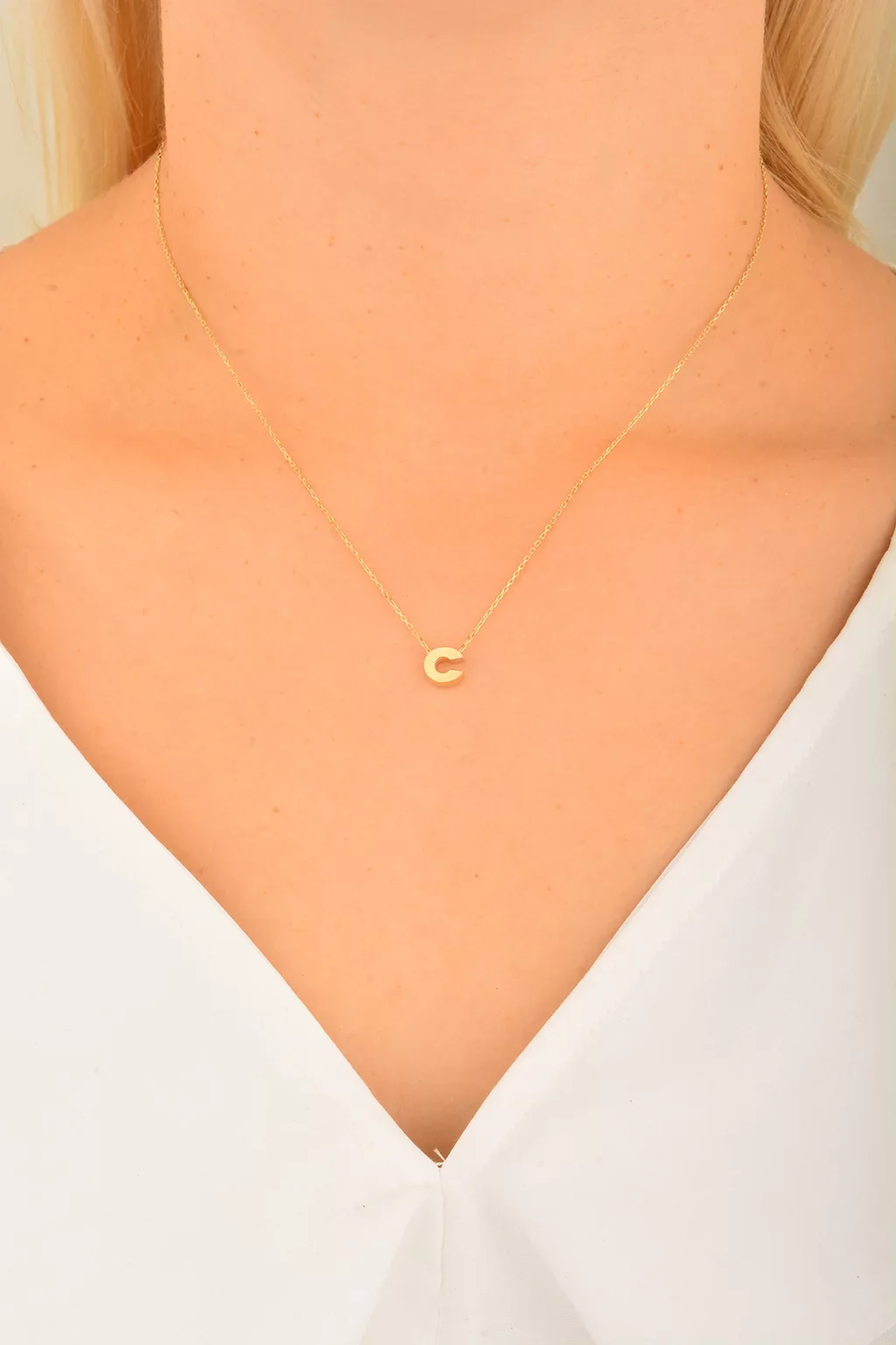 Cebeci 14 Ayar C Harfli Altın Kolye