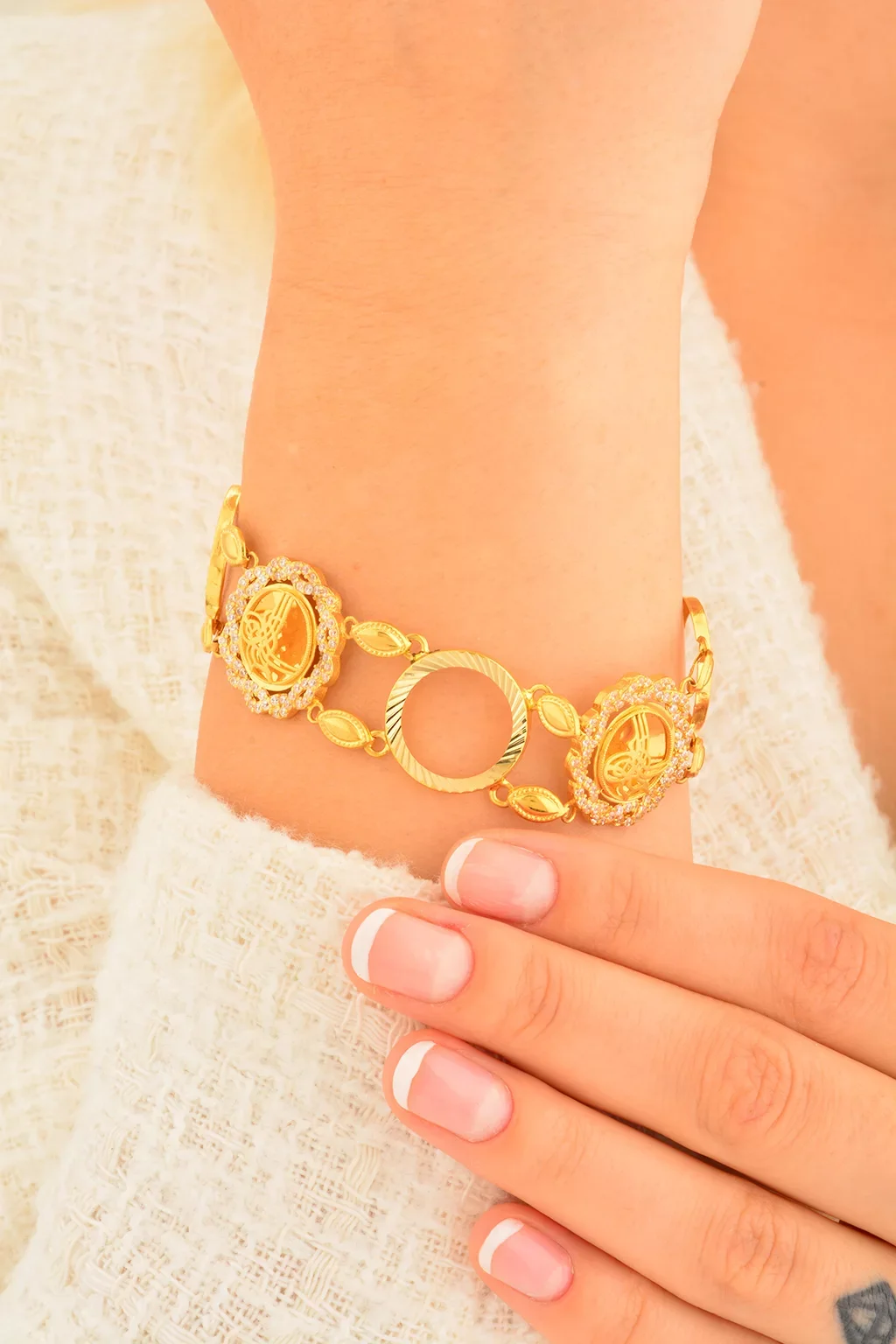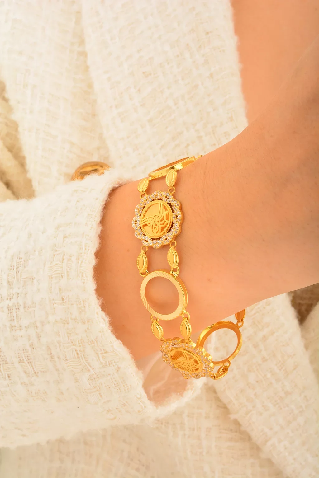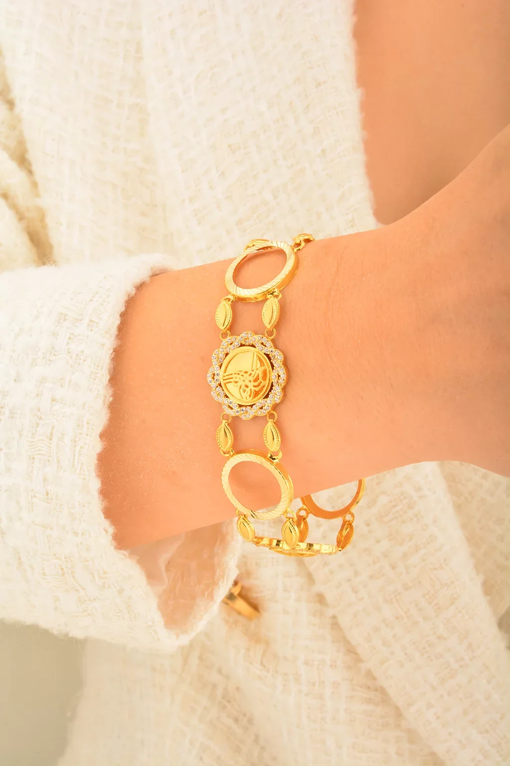 Cebeci 14 Ayar Çerçeveli Tuğra Altın Bileklik