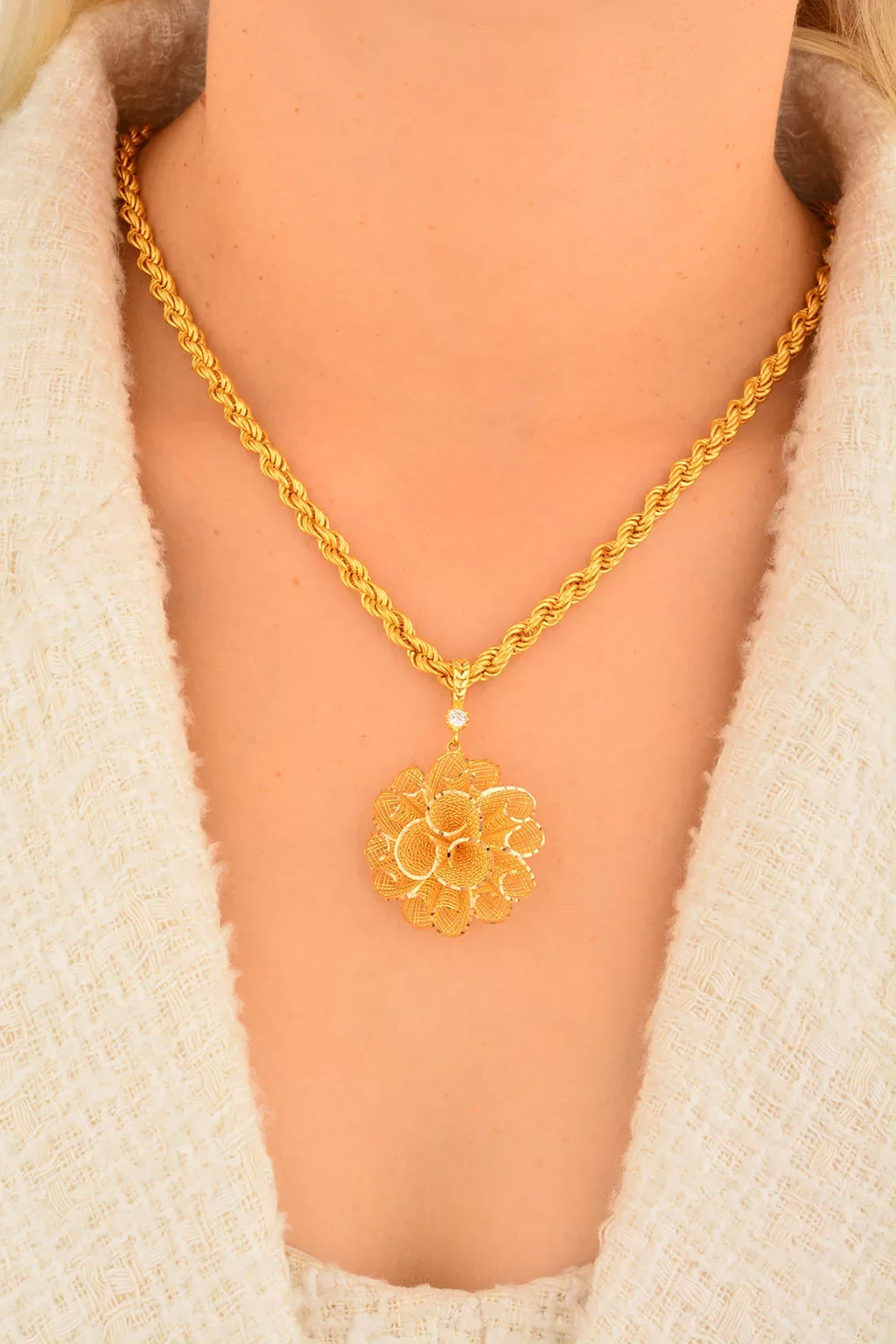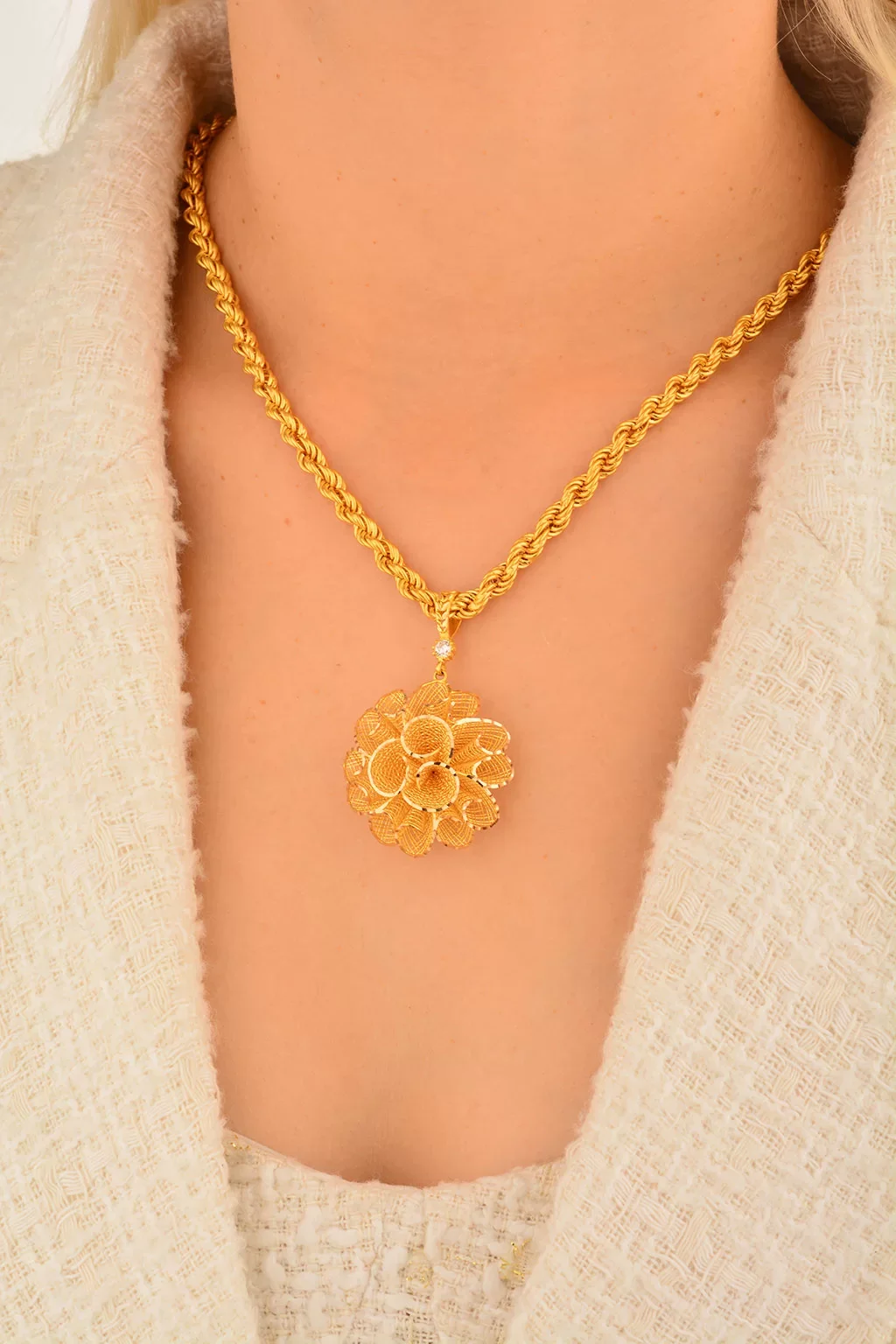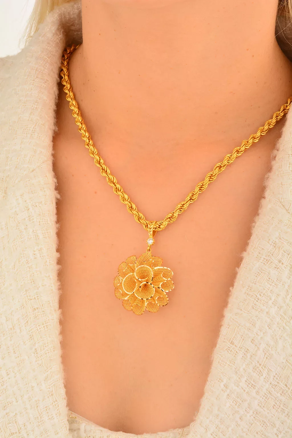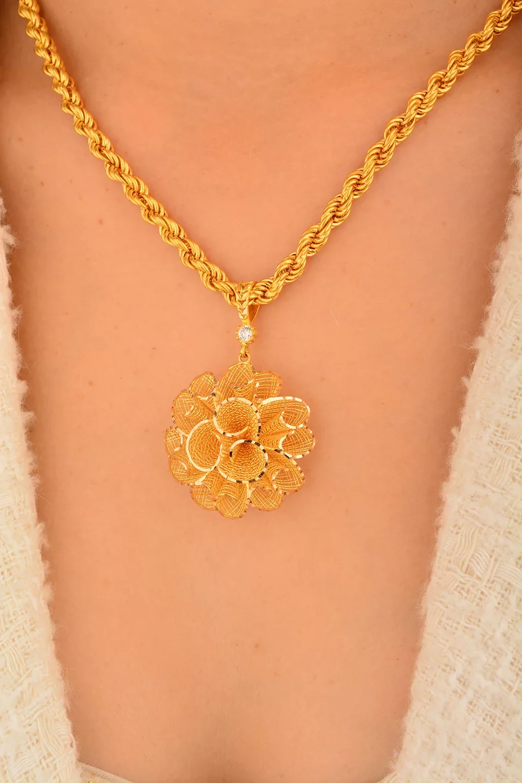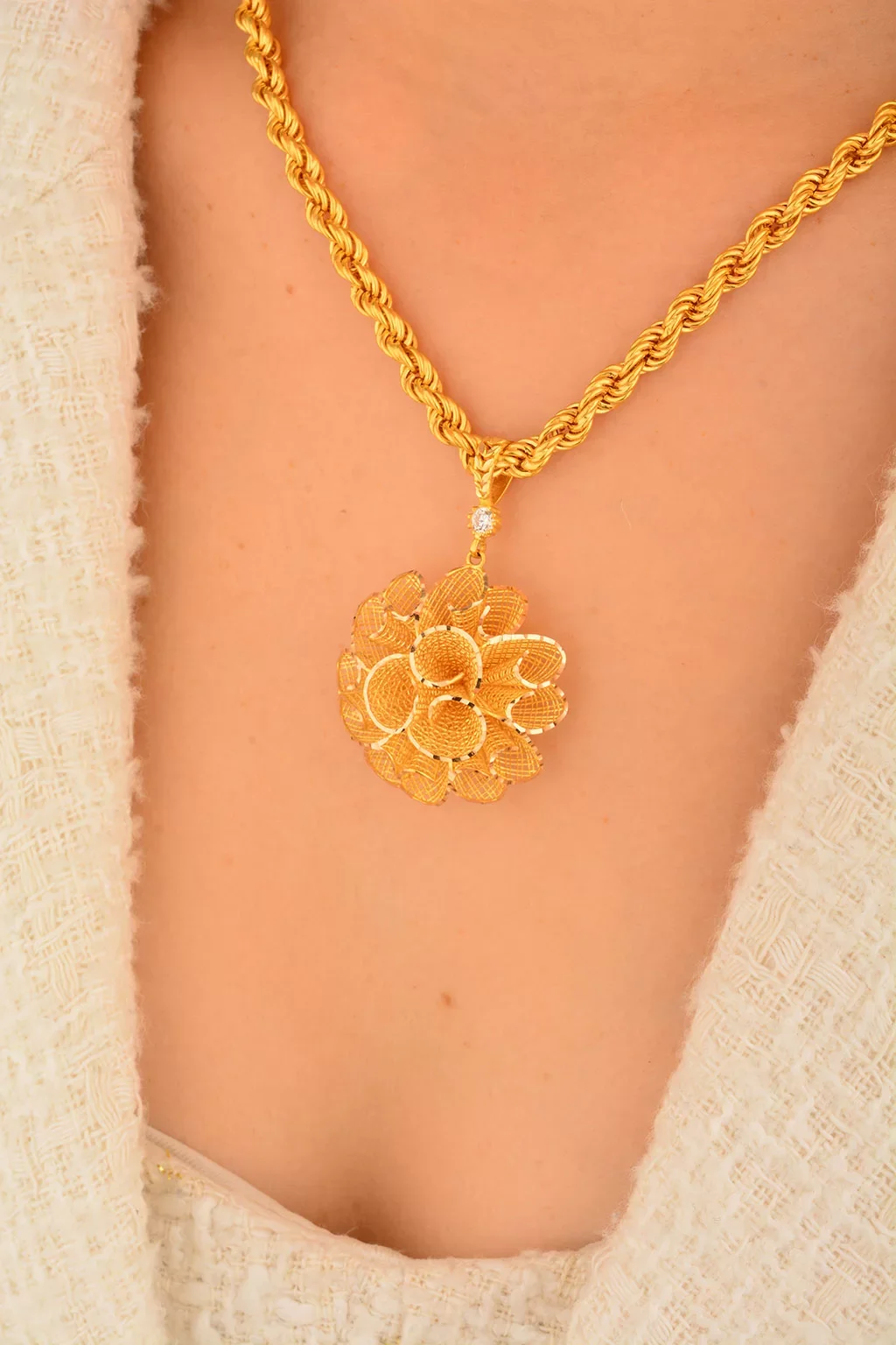 Yaşama anlam katan en özel anları en güzel kadın takılar ile taçlandırıyoruz. Özenle tasarladığımız 14 ayar kadın kolye ucu  hem geçmiş hem de modern zamanların izlerini yansıtıyoruz. Kusursuz işçilikleri özel tasarımlar ile harmanlayarak en yalın günlere ve en görkemli gecelere daha fazla anlam yüklüyoruz.Cebeci Kuyumculuk farkıyla üretilmiş olan özel tasarım kadın kolye ucu ürünlerimiz ile daha zarif ve şık olmanın lüksünü sizler de yaşayın. Kalite tutkunu ve altın kolye ucu takmayı seven kadınlar için en ideal seçenekler bu alımlı dünyada sizleri bekliyor.