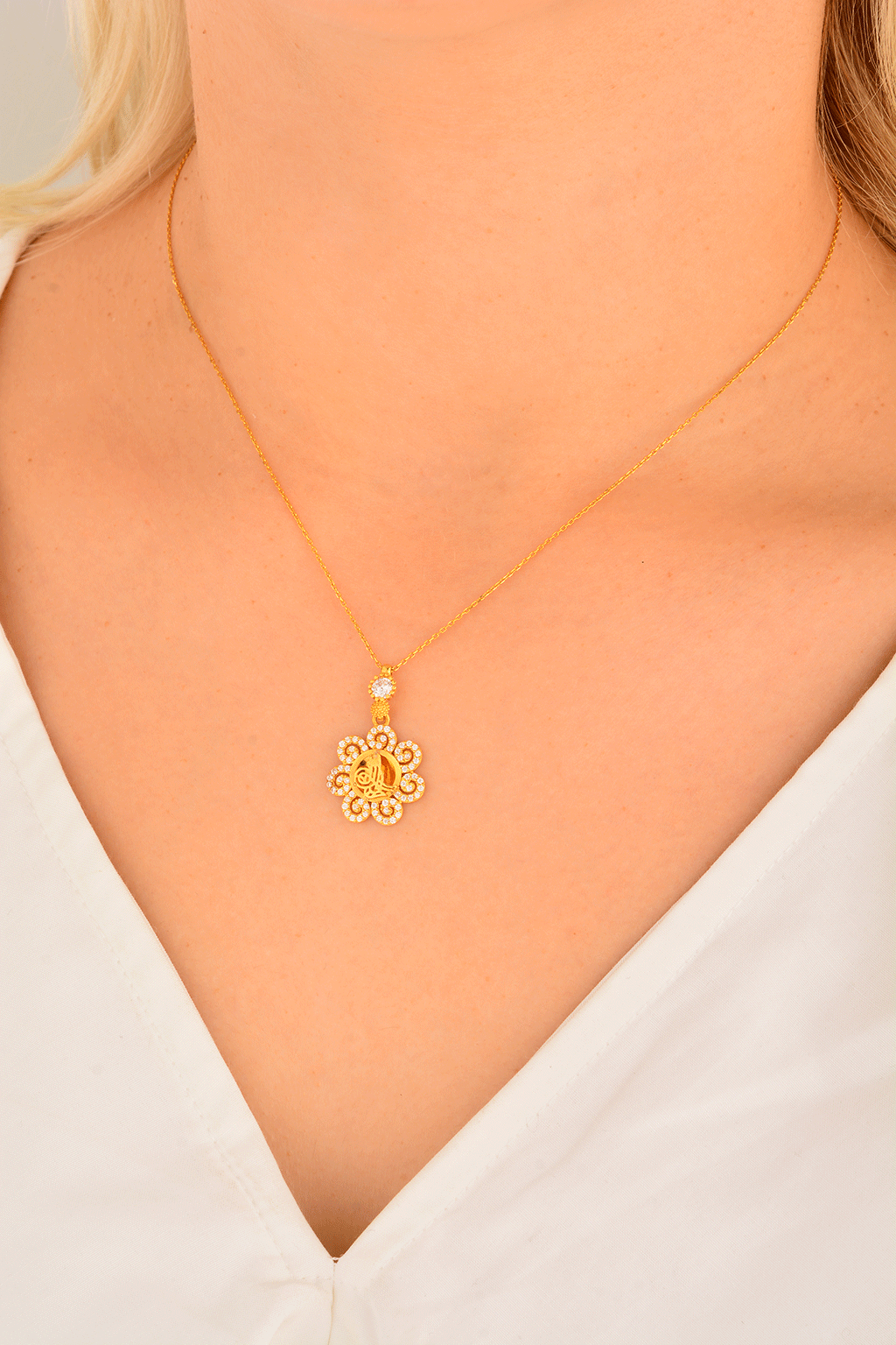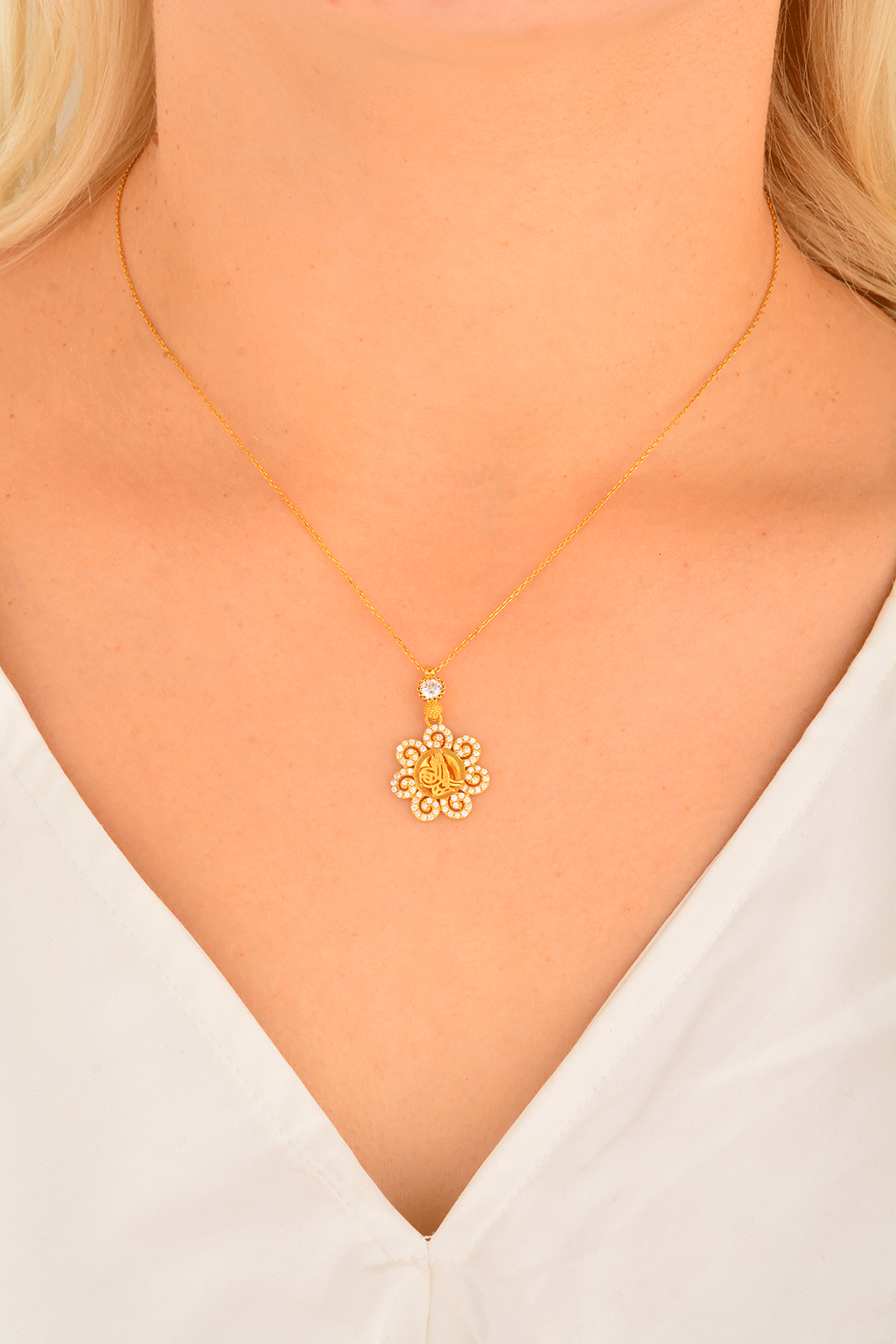 Cebeci 14 Ayar Çiçek Tuğra Altın Kolye