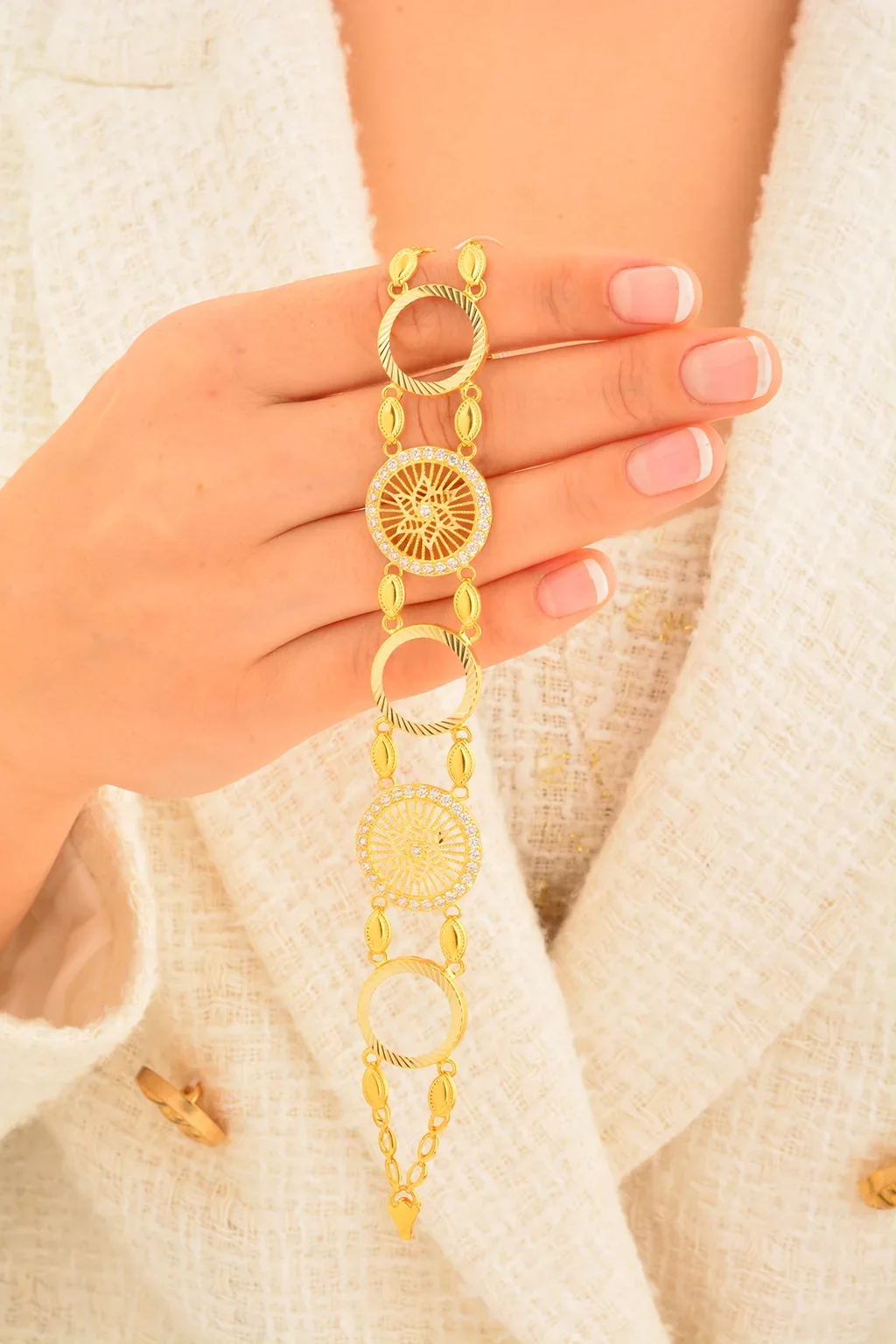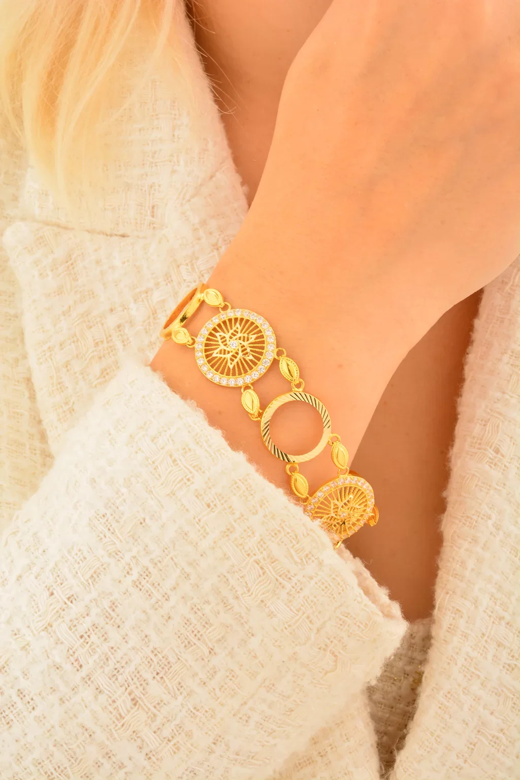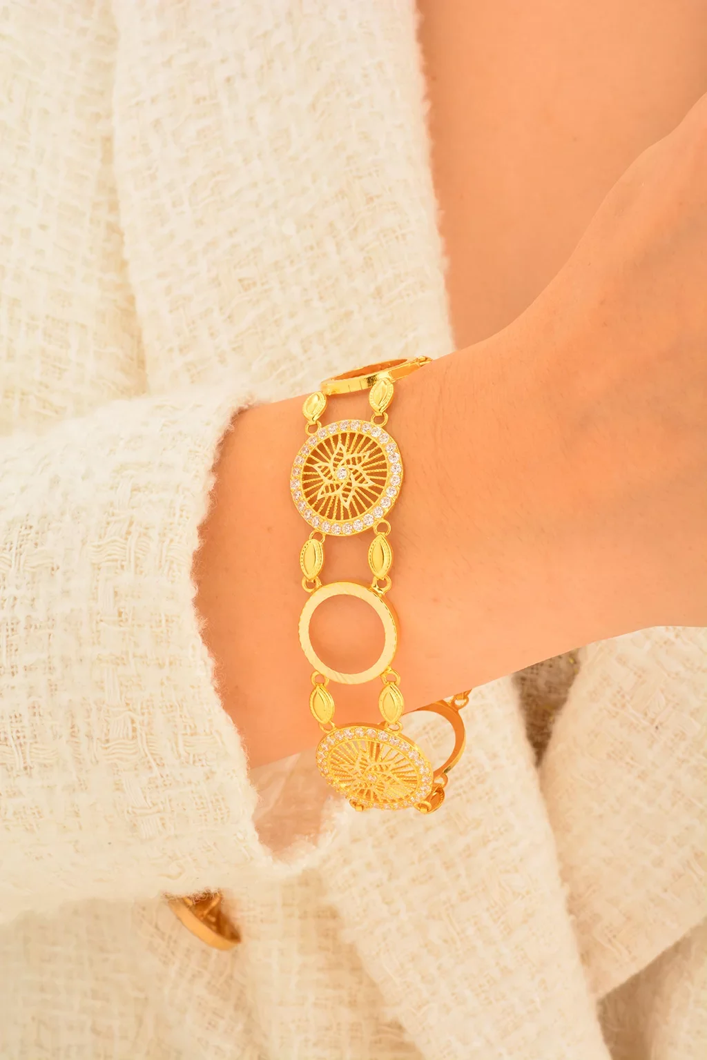 Cebeci 14 Ayar Çiçekli Çerçeve Altın Bileklik