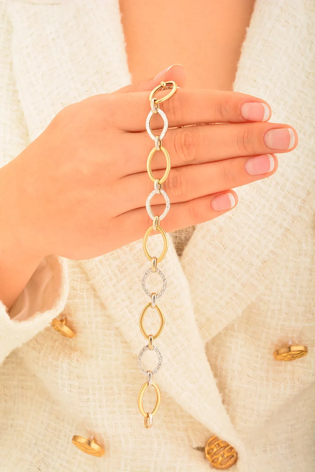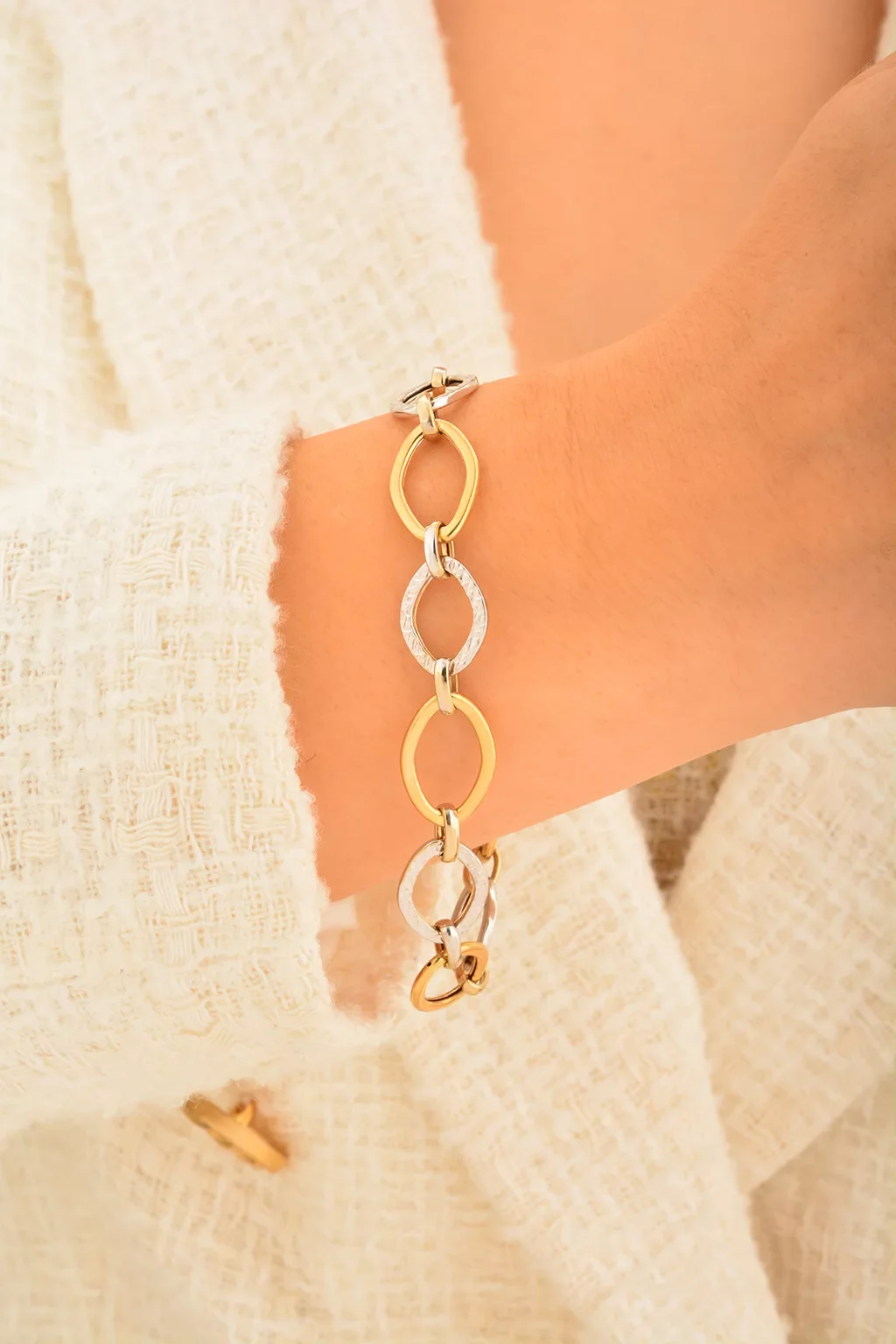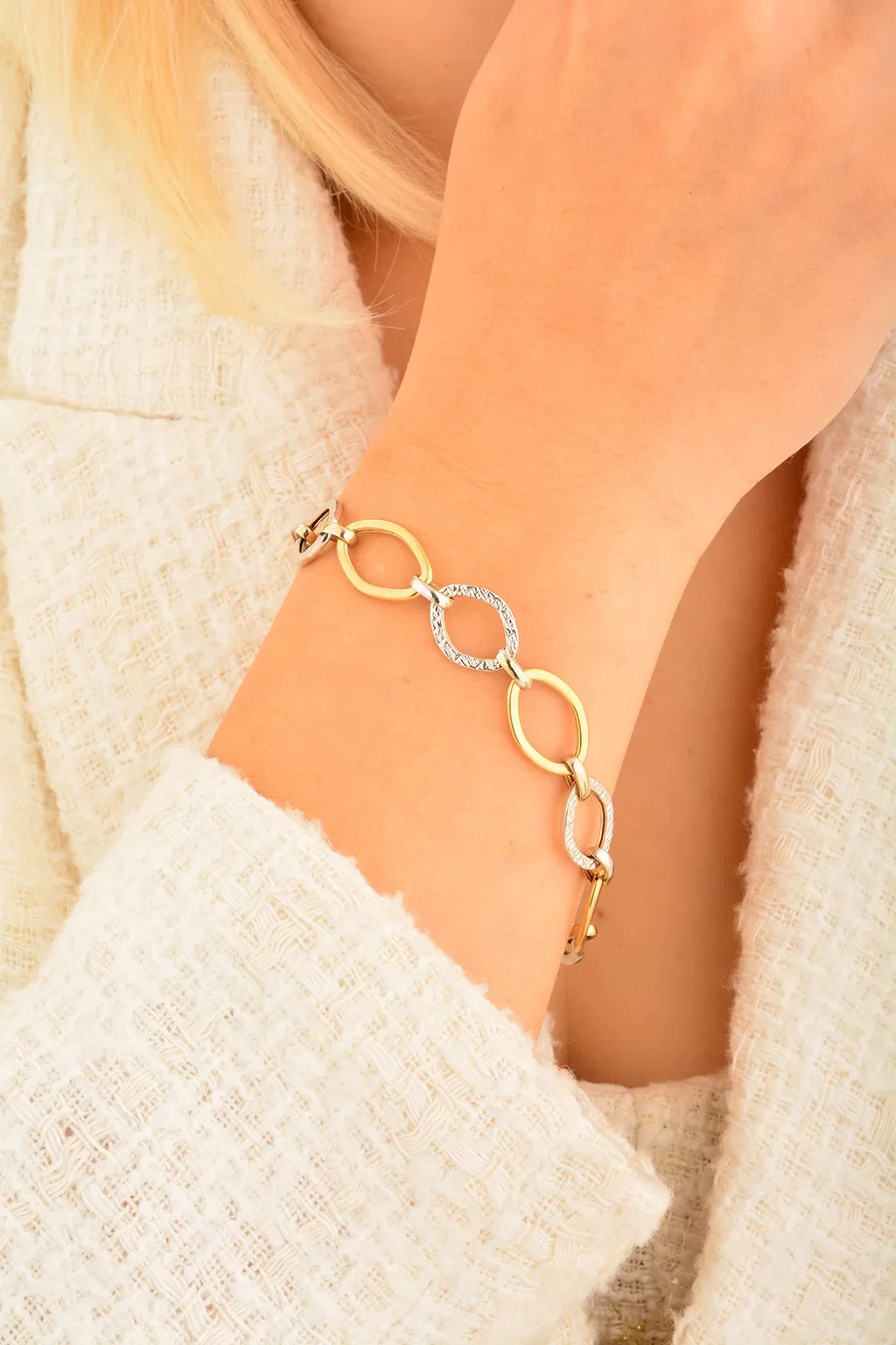 Cebeci 14 Ayar Çift Renk Altın Bileklik