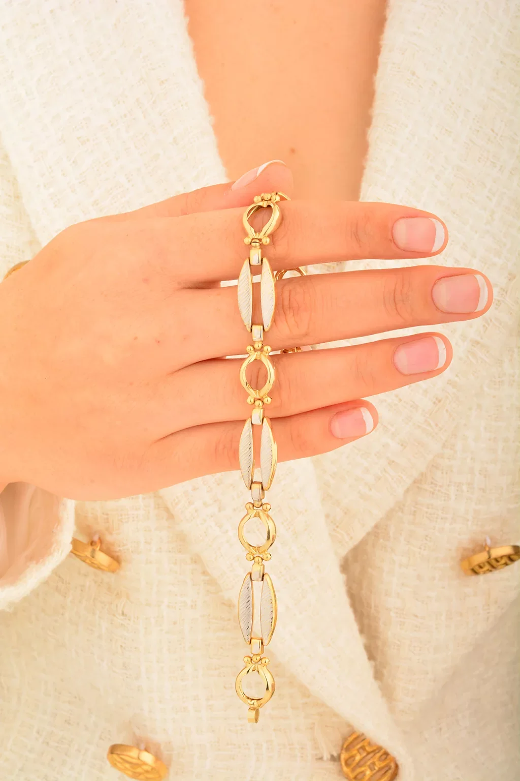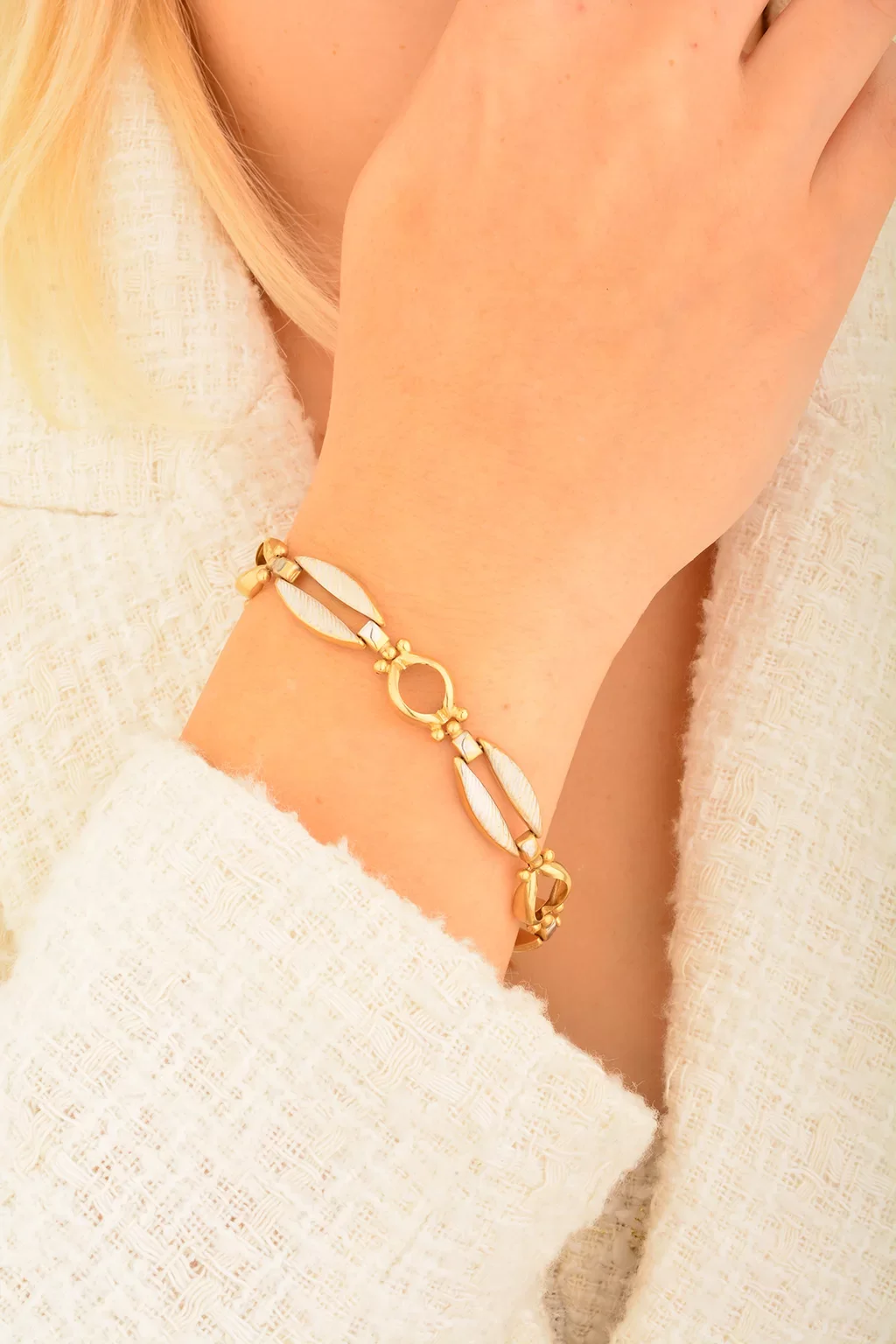 Cebeci 14 Ayar Çift Renk Altın Bileklik