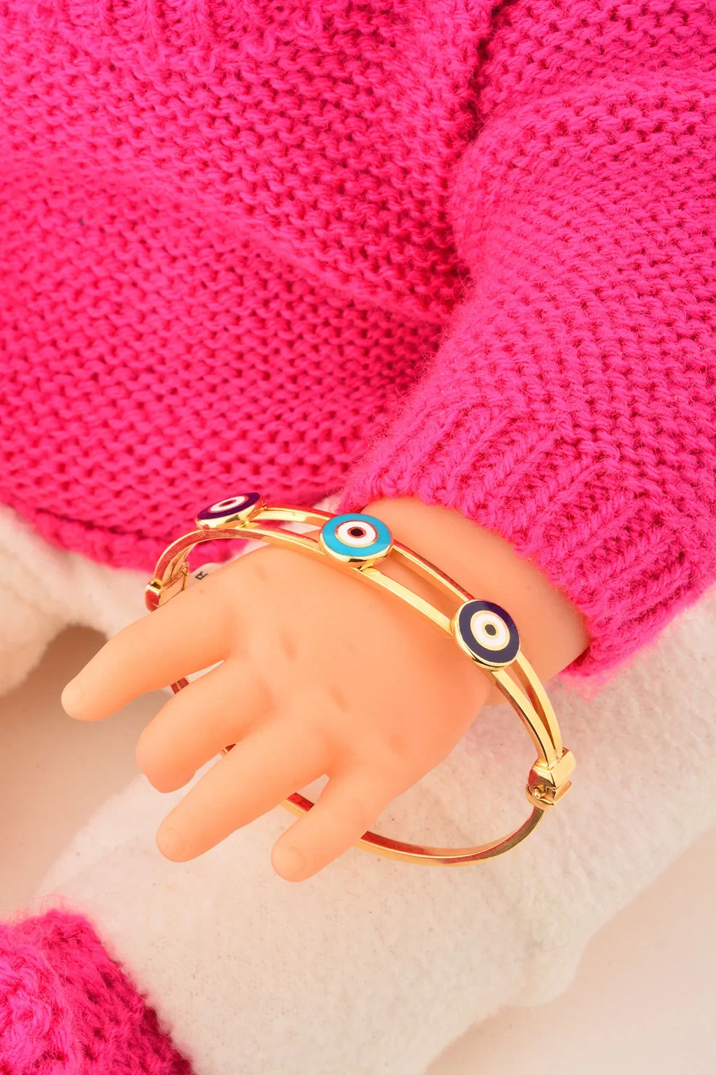 Cebeci 14 Ayar Çocuk Renkli Nazarboncuklu Altın Kelepçe Bilezik