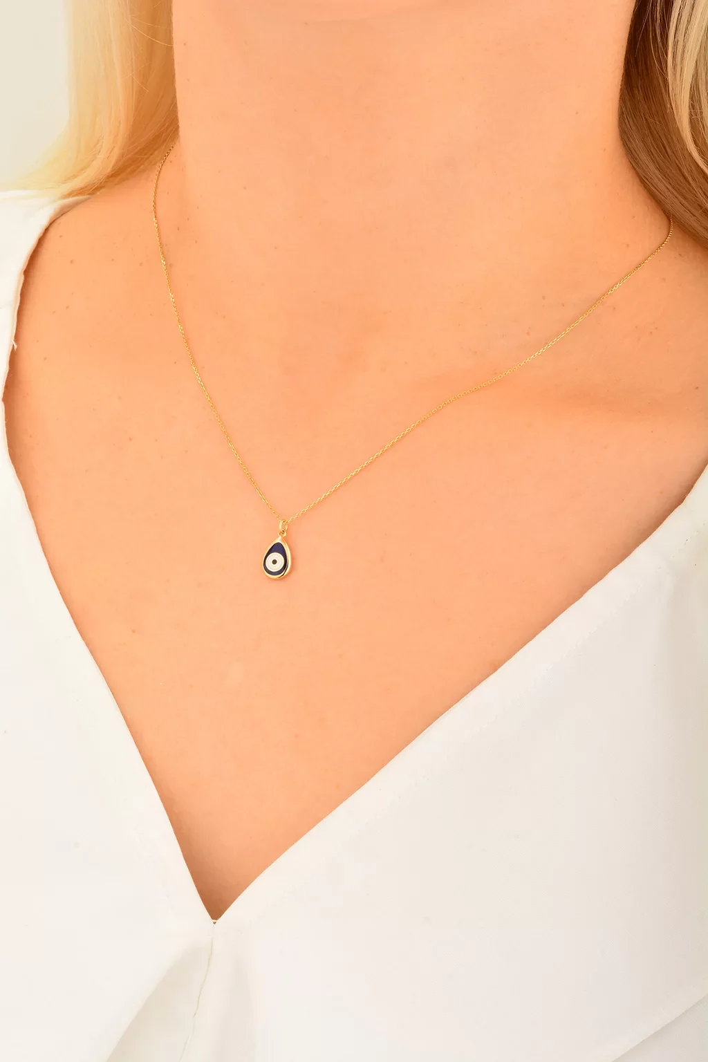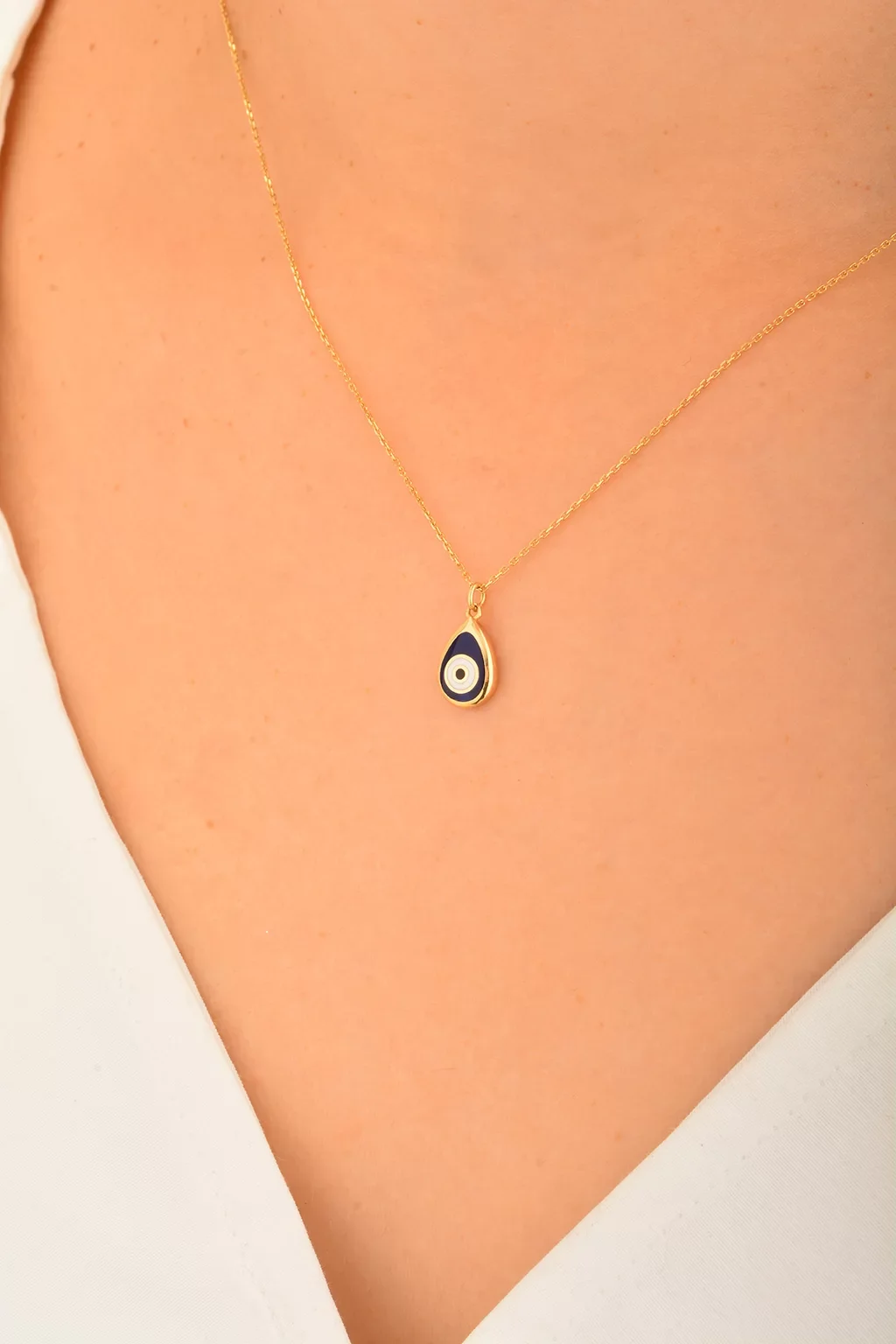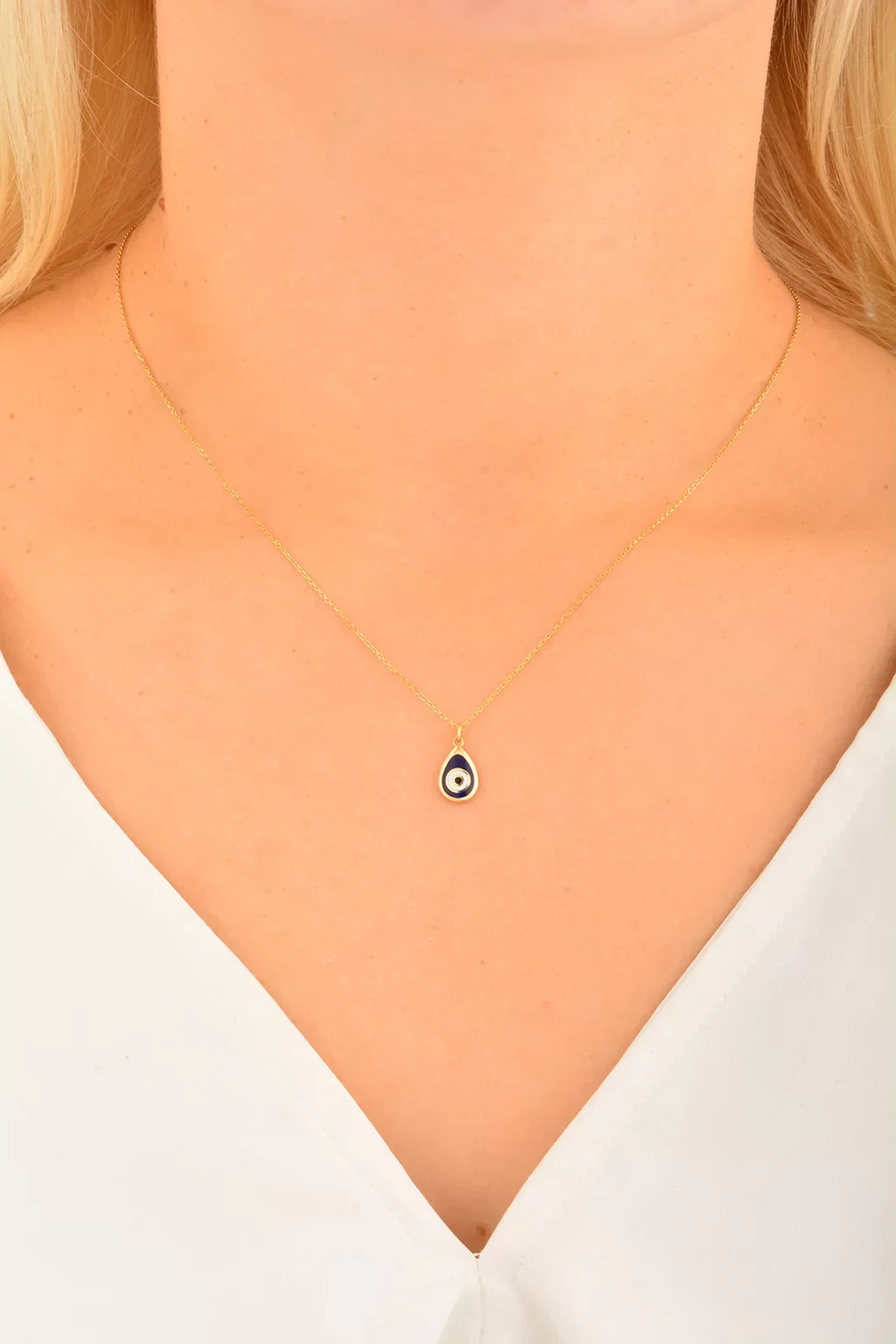 Cebeci 14 Ayar Damla Nazar Boncuğu Altın Kolye