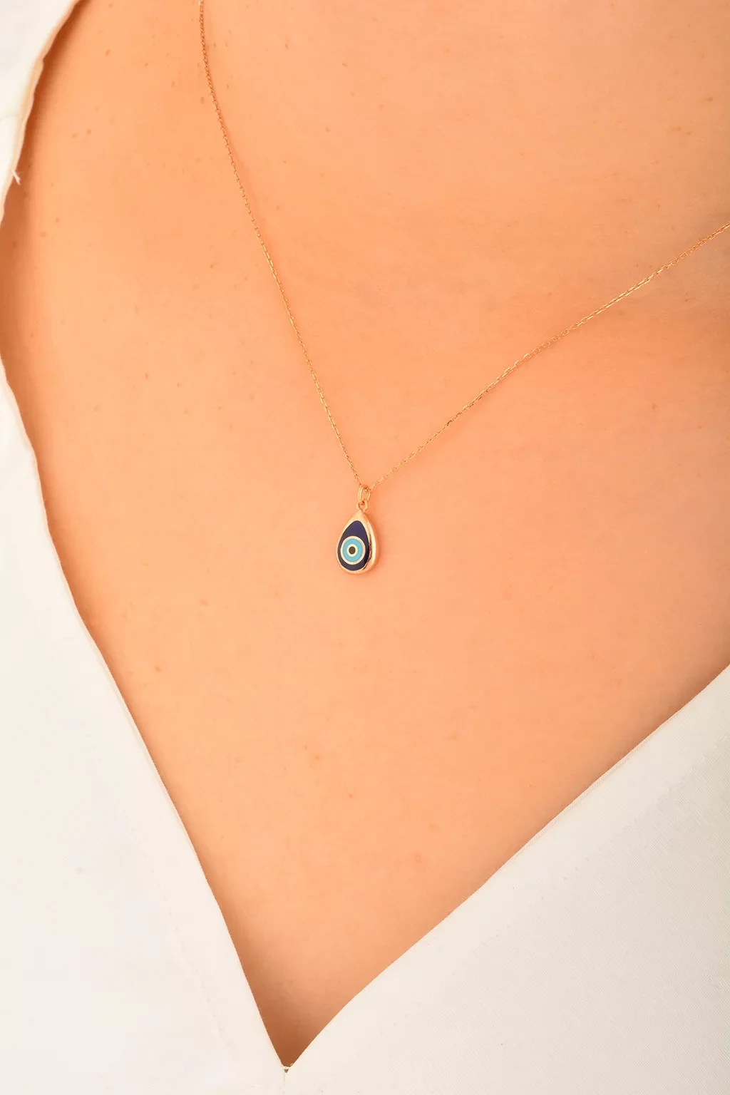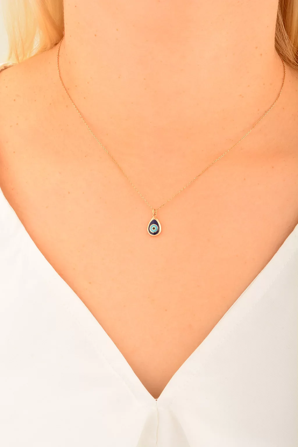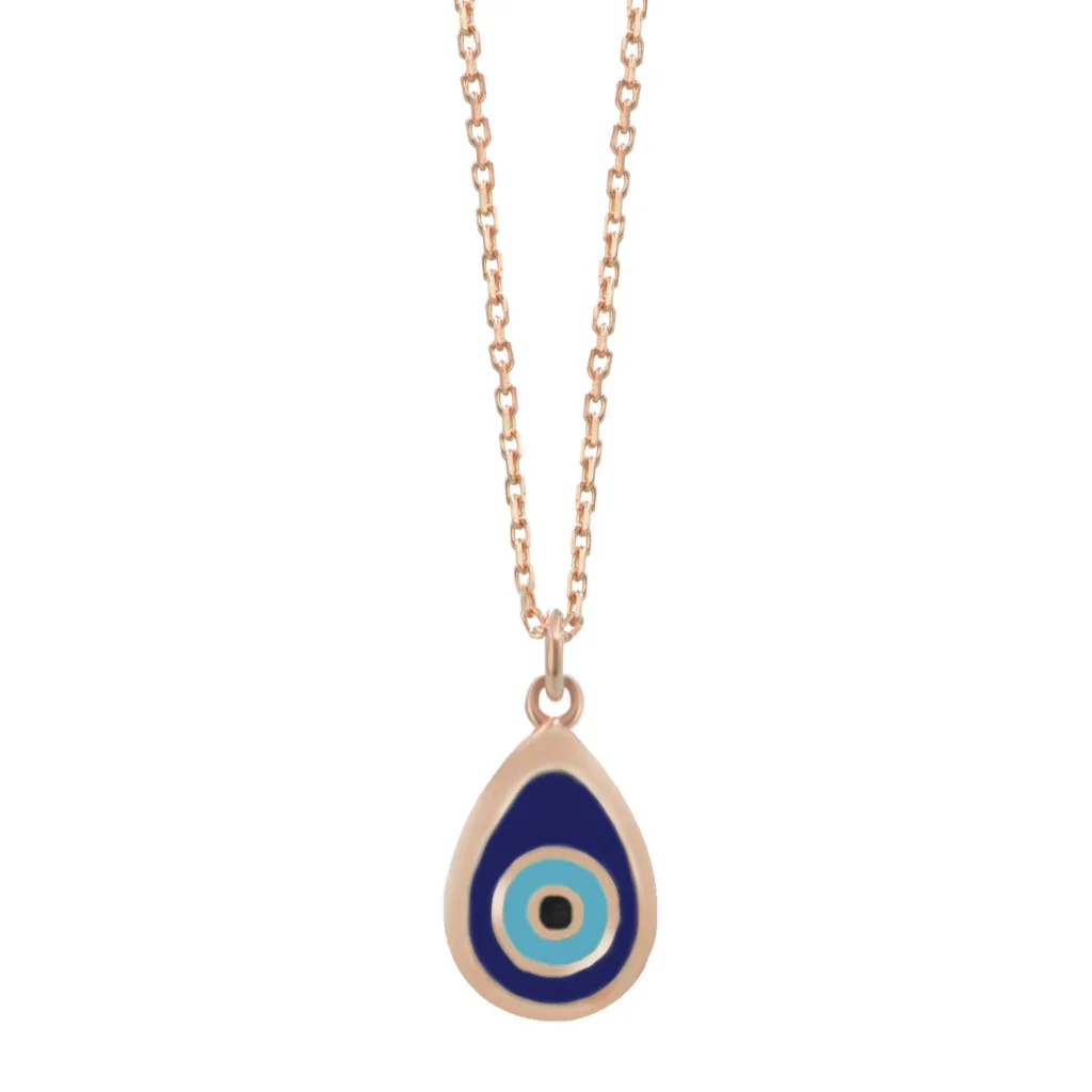 Cebeci 14 Ayar Damla Nazar Boncuklu Rose Altın Kolye
