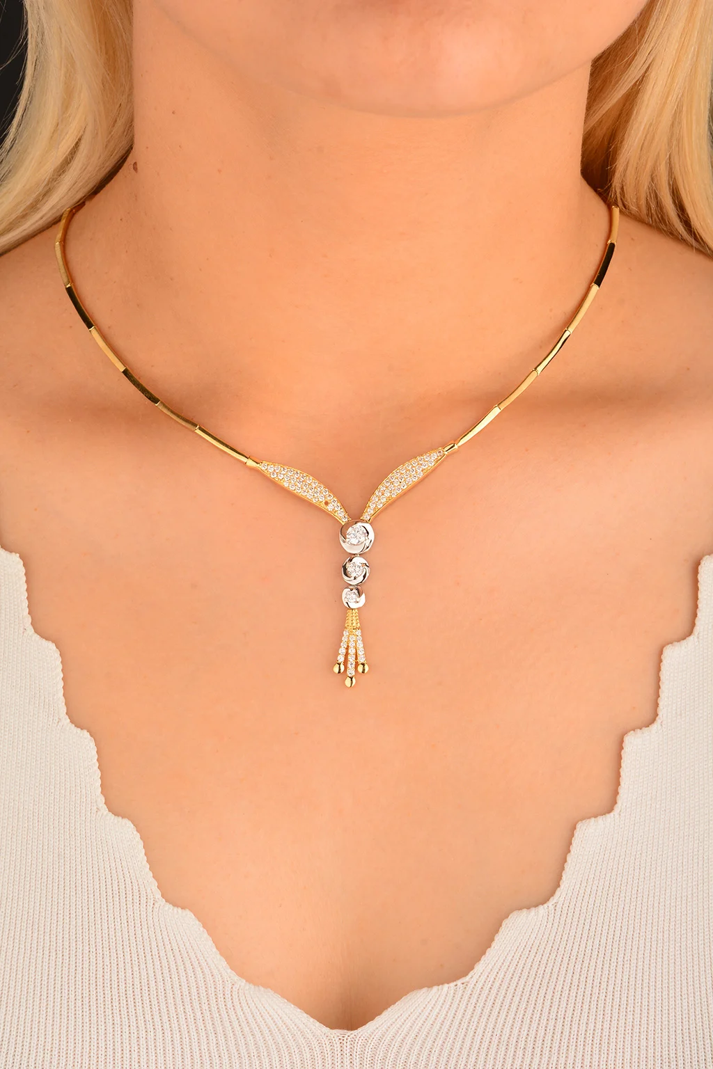 Cebeci 14 Ayar Taşlı Altın Kolye