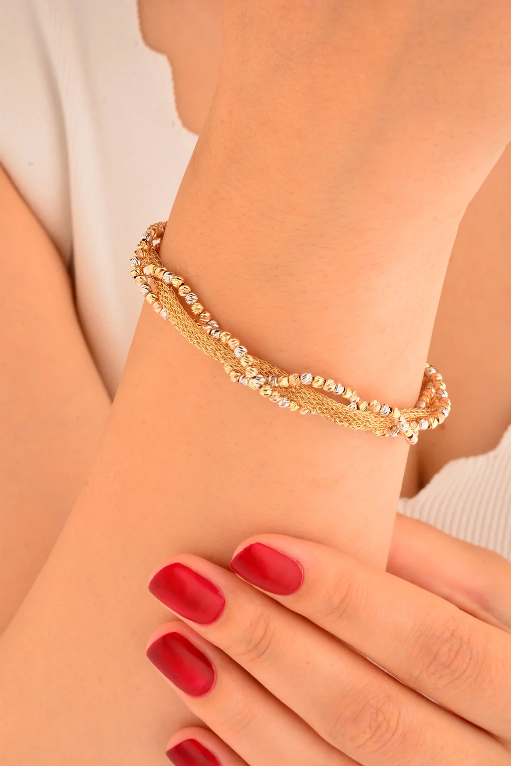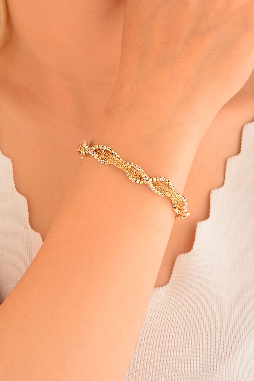 Cebeci 14 Ayar Dorikalı Örgü Hasır Altın Bileklik